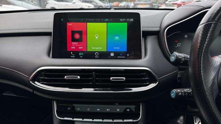 10.1" colour touchscreen, 12.3" Full digital driver information display, Adaptive cruise control, Android Auto, Apple CarPlay, Blind Spot Detection (BAS), Bluetooth connectivity, Driving modes, Emergency call service, Intelligent speed assist, Lane keep assist system (LAS) with Lane departure warning system (LDWS), PAS, Power tailgate, Rear cross traffic alert, Rear parking camera, Rear parking sensors, Satellite navigation system, Tailgate, Traffic jam assist, Trip computer, USB mobile phone charging function, 6 speaker audio system, DAB audio, Auto dimming rear view mirror, Automatic headlights, Body colour electric adjustable heated door mirrors, Electric folding door mirrors, Follow me home headlights, Front and rear aero wiper, Front and rear electric windows with one-touch up/down, Front fog lights, Intelligent high beam, LED Bi-Function headlights, LED centre brake light, LED daytime running lights, LED front and rear sequential indicators, Rain sensing wipers, Rear privacy glass, Rear side wing doors, Silver roof rails, 12V power sockets, 2nd row 60/40 split fold seat, 2nd row seat with 2 stage incline adjustment, 3 rear headrests, 3 seat bench in 2nd row, 4 way electric adjustable passenger seat, 6 way electric adjustable drivers seat + lumbar support, Ambient lighting (adjustable colour), Dual zone automatic air conditioning, Front centre sliding armrest with storage compartment, Front headrests, Heated front seats, Height and reach adjustable steering wheel, ISOFIX restraints on outer rear seats x2, Leather steering wheel, Metal sports pedals, Single passenger seat, Sports Style Front Seats with One-Piece Back, Steering wheel paddle shift, 3x3 point rear seatbelts, ABS/EBD, Active emergency braking with pedestrian/Bicycle detection, Anti rolling protection, Cornering brake control (CBC), Drivers seatbelt reminder, Dual front airbags, Electric parking brake with auto hold function, ESP, Front and rear passenger seat belt reminder, Front passenger airbag deactivation switch, Front seat belt height adjuster, Front seatbelts (3-point + pretensioner + load limiter), Front side airbags, Hill descent control, Hill launch assist, Manual rear child locks, Rear outer seatbelt pretensioner and load limiter, Side curtain airbags, Tyre pressure monitoring system, Alarm system and engine immobiliser, Keyless entry and push button start system, Remote central locking, Speed sensing door locks, 18" Hurricane diamond cut alloy wheels, Tyre repair kit,