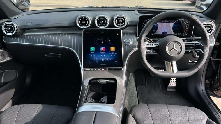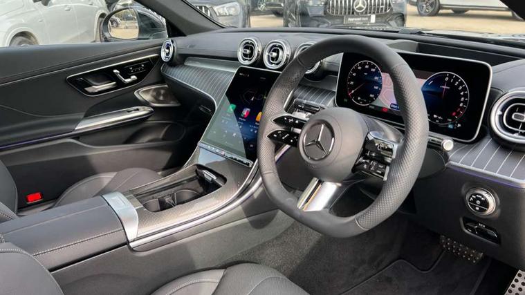 5G Communications module, Acoustic presence indicator, Active lane keeping assist, Bluetooth connection, Car wash mode, DYNAMIC SELECT with a choice of driving modes (ECO, Comfort, Sport, Sport+ and Individual), eCall emergency call system, Fingerprint scanner, Fluorescent jacket for driver, Fully digital 12.3" driver display screen, Hard-disk navigation, Head up Display, Hey Mercedes Voice activation, MBUX navigation premium, PAS, Passive person presence reminder, Portrait format 11.9" touchscreen central display with driver orientation, Smartphone integration with Apple CarPlay and Android auto, Traffic sign assist, Wireless charging system for mobile devices in the front, 50 litre fuel tank, 9G TRONIC plus automatic transmission, AC charging, Charging cable for domestic socket, 5 m, straight, Comfort suspension, Integrated starter generator Gen 2, Mode 3 charging cable for wallbox and public charging stations with 5m upto 11kW, Self levelling suspension, Sporty engine sound system, Burmester 3D surround sound system with sound personalisation, Digital radio, MBUX extended functions, MBUX multimedia system, Ambient lighting with projection of brand logo, AMG bodystyling, AMG Line exterior, Auto headlights, Electric windows, Heat insulating dark tinted glass, LED 3rd brake light, LED Day time running light, LED digital light with adaptive highbeam assist plus, Panoramic sliding sunroof, Rain sensor windscreen wipers, Rear boot, Variable front intermittent wipers, 2 individual rear seats, 2 rear head restraints, Ambient lighting premium, AMG floor mats, AMG line interior, Belt feeder, Black fabric roof liner, Climatised multicontour front seats, Folding rear seat backrests, Front headrests, Heated front seats, Illuminated door sill panels with Mercedes Benz lettering, Instrument panel and beltlines in ARTICO manmade leather in nappa look, Leather upholstery, Multifunction sports steering wheel in nappa leather, Power height and reach adjustable steering column, Single front passenger seat, THERMATIC automatic climate control, Energizing plus package with air balance pack - CLE, Interior light pack - CLE, Keyless-Go comfort package - CLE, Memory seat pack - CLE, Mirror pack - CLE, Parking package with 360 degree camera - CLE, Stowage space package - CLE, USB package plus - CLE, Anti-lock braking system (ABS), Braking system with larger brake discs on the front axle, Centre airbag, Dual front airbags, Electric parking brake, Electronic Stability Programme (ESP), Front and rear seatbelt reminder, Hill start assist, Pedestrian protection, Tyre pressure monitoring system, Anti theft alarm system, Guard 360 degree vehicle protection plus, Increased anti-theft protection, Interior monitoring system, Black open-pore aluminium lines wood trim with mixed fabric look metal finish centre console, 19" AMG multi spoke light alloy wheels painted in black with high sheen finish, Tirefit,