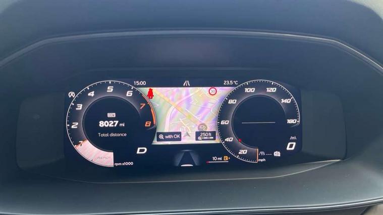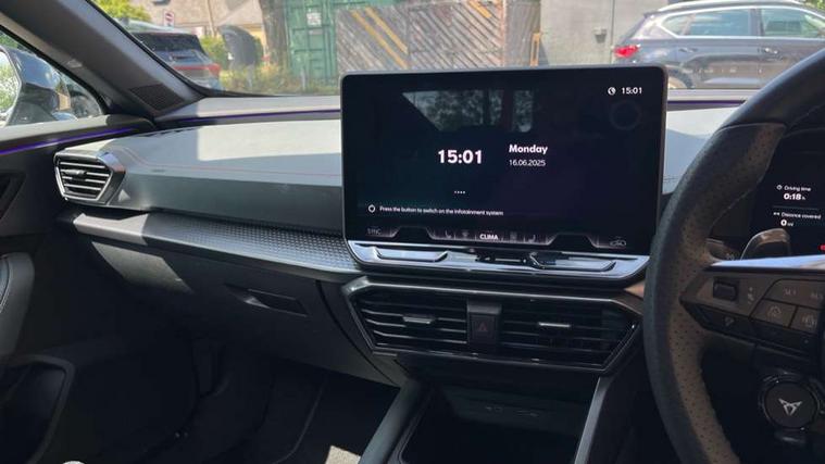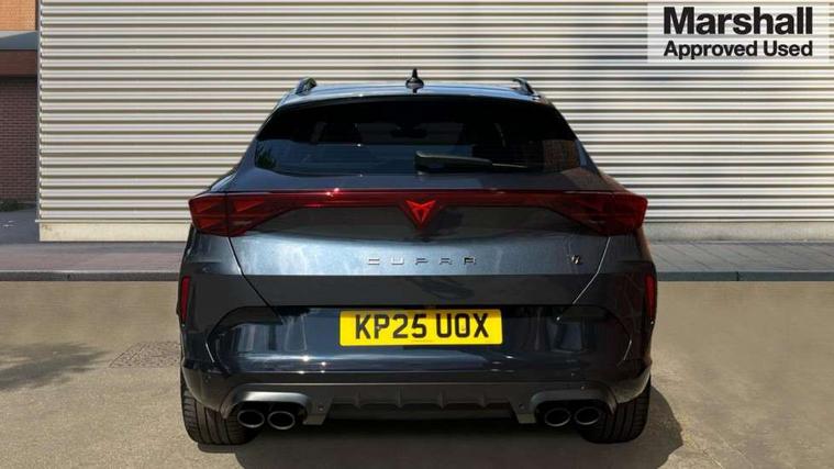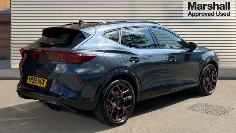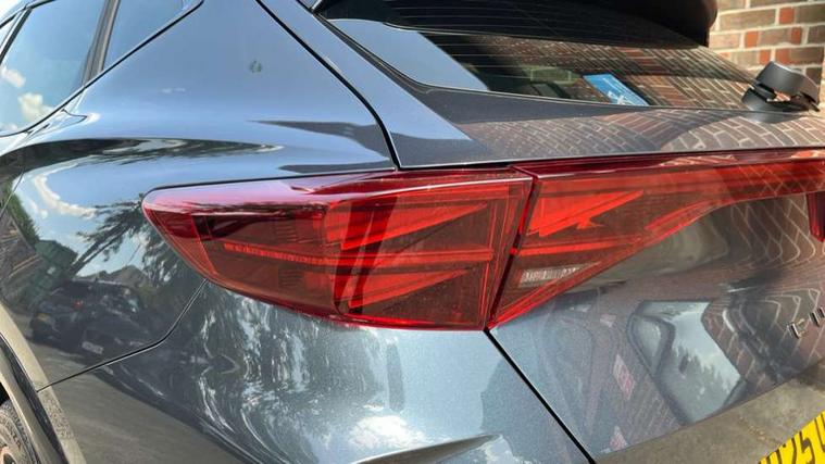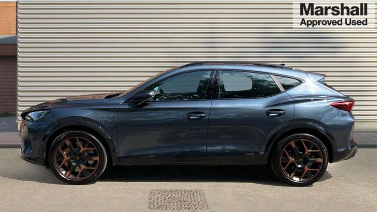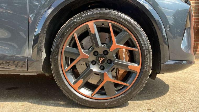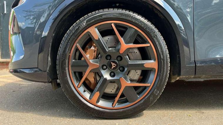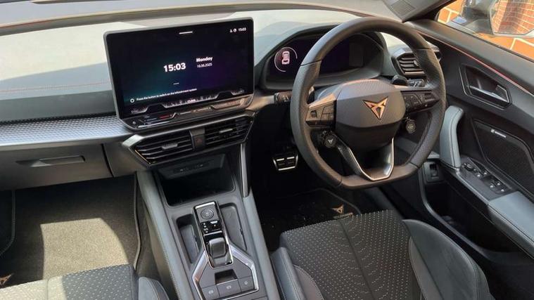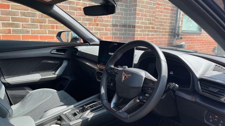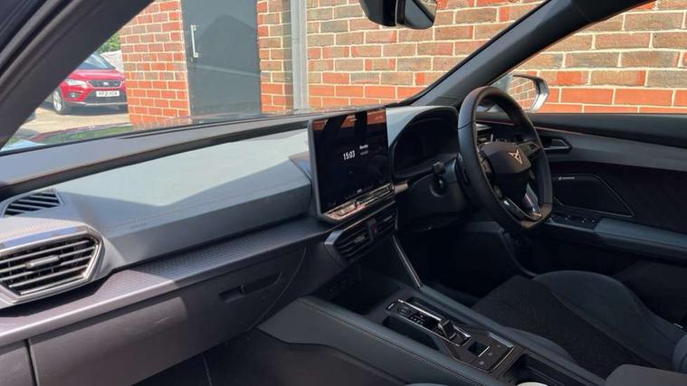10.25" digital cockpit and configurable dashboard, Adaptive cruise control with follow-to-stop and speed limiter, Advanced driver alert system, Advanced lane assist with semi-automatic vehicle control in a medical emergency and traffic jam assist, Dynamic chassis control with driving profile selection (Comfort, Sport, CUPRA, Individual), Dynamic road sign display, Emergency steering support with turn assist, Forward collision warning with automatic braking, Full link phone integration, Intelligent park assist, RPM, trip computer, outside temp gauge, instrument light brightness, low fuel warning light, lights on reminder, gearshift indicator, Service interval indicator, Side and exit assist, Speed sensitive power steering, Start/stop system with regenerative braking, Top view camera, Virtual pedal and electric tailgate, Voice control system, Wired Android Auto, Wireless apple carplay, Wireless phone charger, Adaptive chassis control with continuous operation, CUPRA sport suspension, Electronic locking differential and dynamic traction support, 2 front and 2 rear USB type C sockets, Immersive by Sennheiser TM - 10 speakers, 1 central speaker, 1 subwoofer, Media system with navigation, 12.9" touchscreen display, voice control, DAB, steering wheel mounted controls, Auto dimming rear view mirror, Black roof spoiler, Body colour door handles, Body coloured bumpers, Dark grey wing mirror, Daytime running light with automatic headlight control and coming home feature, Door panel ambient lighting, Dynamic headlight range control, Electric front/rear windows, Electrically adjustable heated and folding door mirrors with memory function, Gloss black roof rails and window surrounds, High beam assist, LED 3rd brake light, LED front fog lamps with cornering function, LED Taillights with dynamic indicator, Matrix LED headlights with multifunction camera, Rain sensing wipers, Rear diffuser with twin exhaust pipe on each side, Rear fog lights, Rear side wing doors, Rear wash/wipe, Side skirts, Tinted rear windows, Welcome lights (within exterior mirror housing), 12V socket, 2 front and 2 rear reading lights, 3 seat bench in 2nd row, 60/40 split rear bench seat with armrest and mechanical seat release, Black headlining, Black interior roof lining, Cupra sports pedals, Dust/pollen filter, Electrically adjustable front seats with lumbar support and memory function, Front and rear head restraints, Front centre armrest, Heated front seats, Heated supersports multifunction leather steering wheel with satellite buttons and gear shift paddles, Height/reach adjust steering wheel, Illuminated aluminium doorsteps, Illuminated interior front door sills, Illuminated sunvisor with mirror, Isofix, Leather dashboard, door insert and side trim panel, LED smart wraparound lighting, PVC/Textile upholstery + cup bucket seats, Satellite steering wheel, Single front passenger seat, Three zone climate control with control panel in rear, Variable luggage/load compartment floor, 3 point seatbelts on all rear seats, ABS, Akebono brakes, Brake control system - ESC and brake booster, Child proof door locks, Driver and front passenger airbags with front passenger airbag de-activation, Driver and front passenger knee airbag, Electronic parking brake, Hill hold control, Performance brakes with front brembo calipers, Pre-crash front and rear seat belt tensioner, window closure and hazard lights, Public e-call, Seat belt reminder for front and rear seats, Side airbag for front and rear with curtain airbags, Tyre pressure monitoring system, Anti theft alarm system, KESSY Advanced - Keyless start, keyless entry with SAFELOCK, Locking wheel bolts, Copper and aluminium interior detailing, 19" Hailstorm forged machined R black and copper alloy wheels, Breakdown and tool kit,