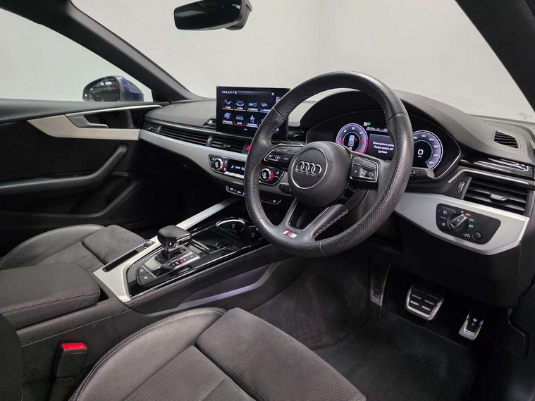 Audi connect safety and service (e-call), Audi connect with Amazon Alexa Integration, Audi drive select (Auto, Comfort, Dynamic, Efficiency and Individual), Audi parking system plus with front and rear sensors, Audi smartphone interface, Audi virtual cockpit - 12.3" full colour digital instrument cluster, vehicle/engine speed, Radio/media information+Driver assistance systems, Automatic start-stop system with coasting functionality and efficiency programme, Bluetooth interface, Electro-mechanical power steering, Email, calendar and text messages displayed via MMI, MMI nav+ with MMI touch - 10.1" high resolution MMI display, touch sensitive, 3D map, route/country info, dynamic route guide, personal route assist, Power operated tailgate, Rear view camera, Service interval indicator, Voice control system, Diesel particulate filter, Sports suspension lowered by 23mm, 8 passive loudspeakers, CD player, DAB digital radio reception, Two additional USB ports for rear passenger in rear centre console, Two SDXC card slots, Auto dimming door mirrors, Auto dimming rear view mirror, Body colour bumpers, Body colour door handles, Body colour front spoiler lip, Body colour side sill trim, Body coloured door mirrors, Electric adjustable heated door mirrors, Electric folding door mirrors, Electric front windows, Front fog lights, Honeycomb structure radiator grille in grained matt black, Kerb-view function for passenger side, LED headlights and rear lights with LED daytime running lights, LED side indicator lights integrated into door mirrors, LED third brake light, Matt aluminium silver tailpipe trim, Privacy glass, Rain and light sensors, Rear side wing doors, Rear wiper, S line badges on front wings, S line front and rear bumpers with side skirts, S Line rear diffuser in matt anthracite black with trim strip in matt aluminium silver, Side air inlets in grained matt black with matt aluminium silver inlay, Variable front intermittent wipers, Windscreen with acoustic glazing, 3 seat bench in 2nd row, 3 spoke high multifunction leather sport steering wheel with paddle shfit and S badging perforated leather grips, 4 way electric lumbar support for driver and front passenger, 40/20/40 split folding 3 seater rear bench seat, Adjustable steering column, Black cloth headlining, Black perforated leather gearknob, Contrast stitching on seats, steering wheel and gear lever gaiter, Deluxe 3 zone electronic climate control, Front centre armrest, Front head restraints, Front/rear floor mats, Heated front seats, Illuminated door sill trim with S logo, ISOFIX child seat mounting and top tether, Luggage compartment mat, Manual seat adjustment, Rear centre armrest, Rear headrests, Single front passenger seat, Stainless steel pedals, Sunvisors with vanity mirrors, LED interior light pack - A5/RS5, 3x3 point rear seatbelts, 6 airbags - Driver, front passenger, curtain and side airbags, Electromechanical parking brake, Electronic Stabilisation Control (ESC) including ABS, ASR and EDL, Front passenger airbag deactivation, Height adjustable front seatbelts, Hill hold assist, Manual child lock in rear doors, Multi collision brake assist, Pop-up bonnet for pedestrian protection, Pre sense city, Seatbelt monitoring, Tyre pressure warning, Variable restraint system, Warning triangle and first aid kit, Anti theft alarm system, Anti theft wheel bolts, Immobiliser, Keyless Go, Remote central locking, Matt brushed aluminium inlays, Tool kit, Tyre repair kit,