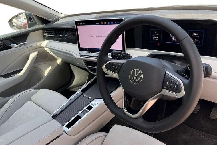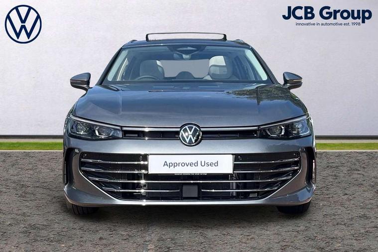 2 x Front USB-C ports, 2 x USB-C charging sockets on the centre console in the rear, charging capacity up to 45W, Adaptive cruise control, Advanced driver attention and drowsiness monitor, Chat GPT function for IDA voice assistant, Digital cockpit pro 10.25" high resolution, Discover media navigation system includes streaming and internet, Dynamic road sign display, E-Sim card for online connectivity, eCall emergency call service, Electronic engine sound, Full electric tailgate operation, Inductive smartphone charging without external antenna connection, Memory feature for park assist, Oncoming vehicle braking when turning including swerve support, Park assist pro with park distance control (Remote park assist), Predictive speed limiter, Preparation for We connect and We connect plus, Wireless app connect, Battery 340 A (58 Ah), Front wheel drive, Petrol Particulate Filter, 8 Speakers, Auto dimming interior rear view mirror, Automatic headlights, Body colour bumpers, Body colour door handles, Electric panoramic sunroof, tilting and sliding panoramic sunroof with rear panoramic sunroof, Heated windscreen washer jets, Laminated safety glass windshield, heat and sound insulating, LED third brake light, Rain sensor, Rear side wing doors, Rear wiper, Welcome light with surround lighting, 3 seat bench in 2nd row, 3 zone air care climatronic with rear air conditioning control panel, 30 colours options interior ambient lighting, Front + rear carpet mats, Front head restraints, Front sports comfort seats, Isofix child seat preparation, easy-fit (for two outer rear seats, and front passenger seat), compatible with I-size, Leather-wrapped, heated and multi-function steering wheel with shift paddles, Luggage compartment cover, power operated, Rear centre armrest, Single front passenger seat, Standard pedal cluster, Sun visors with illuminated vanity mirrors for driver and front passenger, Sunblind for rear side windows, Three rear head restraints, Unsplit rear seat bench, split folding backrest, Acoustics pack - Passat Estate, LED High matrix headlamps pack - Passat, 3x3 point rear seat belts, ABS (Anti locking brake system) includes BAS (Brake assist) and EBD (Electronic brake pressure distribution), Autonomous emergency braking front assist with pedestrian and cyclist monitoring, Disc brakes in front, Driver/Front Passenger airbags, Drivers knee airbag, Electronic parking brake with auto hold, ESC (Electronic stability control) + EDL (Electronic Differential lock) and ASR (Traction control), EDTC (Engine drag torque control), Extended safety system with proactive passenger protection system, Front passenger airbag deactivation switch, Hill hold function, Tyre pressure loss indicator, Warning triangle and first aid kit, Alarm with interior protection, Electronic engine immobiliser, Keyless locking and starting system keyless access with safelock, Aluminium decorative inserts, Tool kit for tyre mobility set, Trims for alloy wheels, Tyre mobility kit including compressor and sealing foam,
