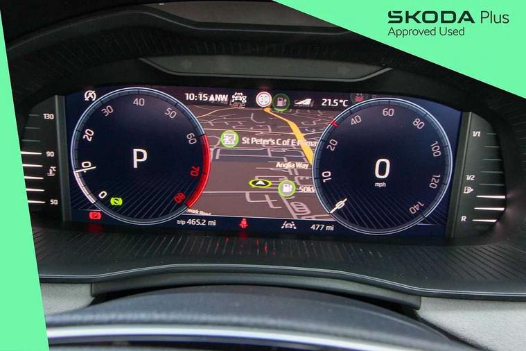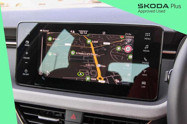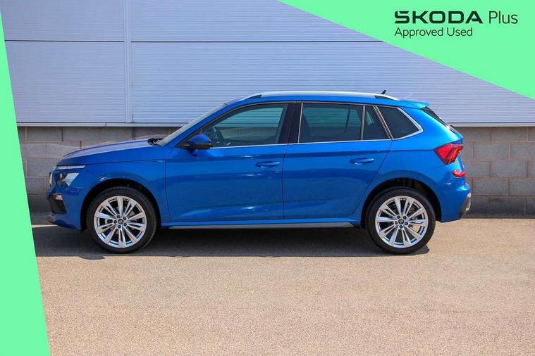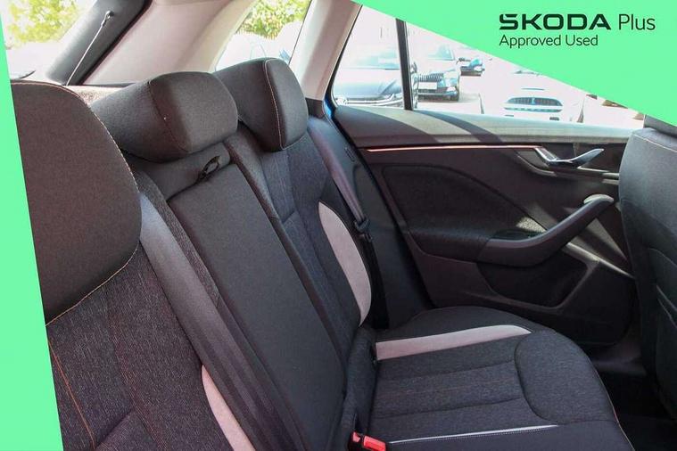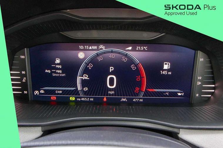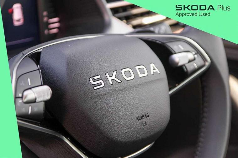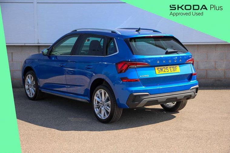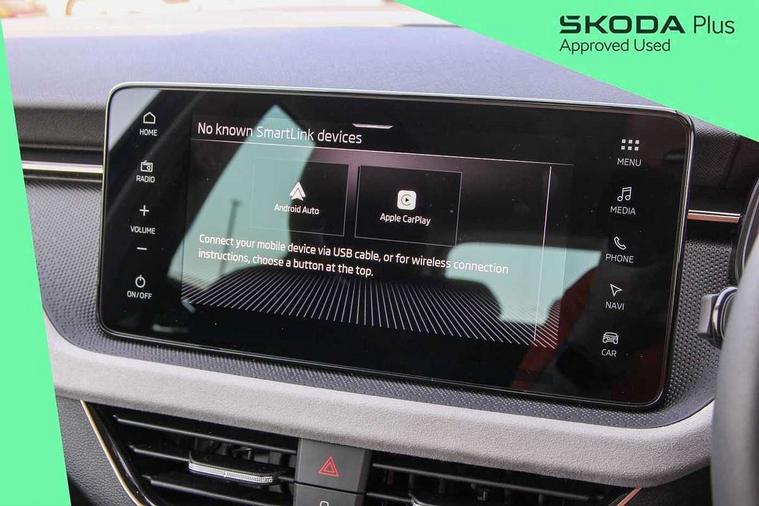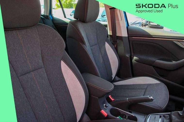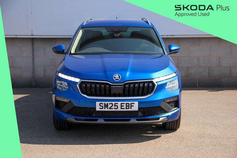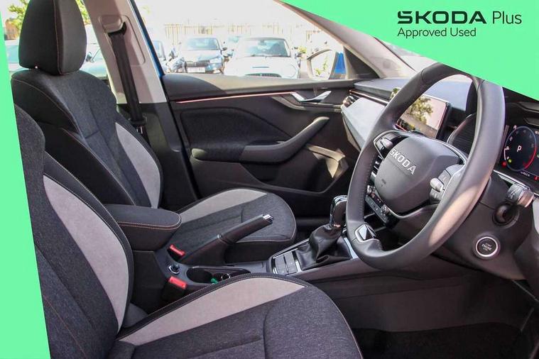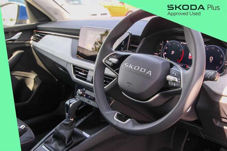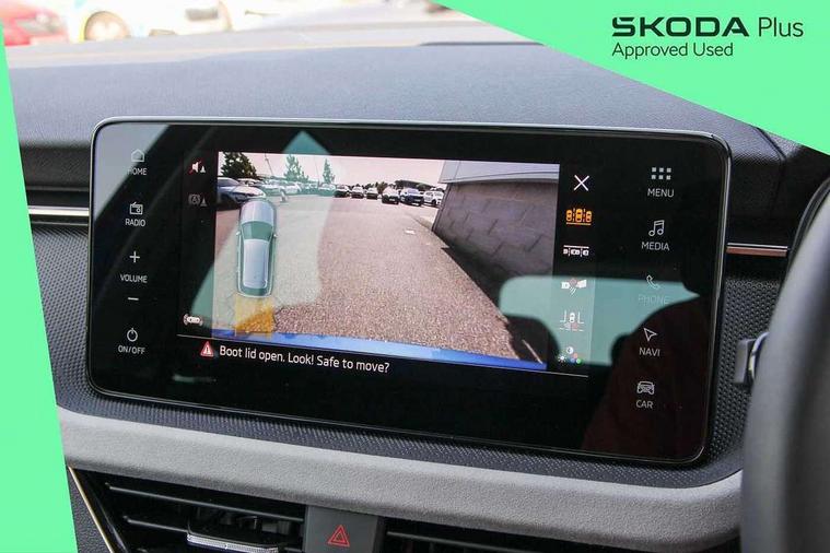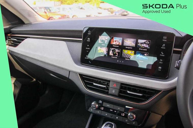Advanced driver attention and drowsiness monitor, Bluetooth system, E-call, Front assist system, PAS, Rear parking sensors, Rear view camera, Service indicator, Speed limiter, Traffic sign recognition, Virtual cockpit with 10.25" display, Voice control system, Wireless smartlink, 4 USB C ports, 8 Speakers, 9.2" Skoda navigation display, DAB Digital radio, Auto dimming rear view mirror, Automatic headlight control with coming home and leaving home feature, Body colour bumpers, Body colour door mirrors and handles, Chrome grille surround, Chrome roof rails with chrome window surround, Front and rear electric windows, Heated rear window, LED daytime running lights, LED high beam, LED low beam, LED third brake light, Light sensors, Privacy glass, Rear side wing doors, Rear wiper, Ticket holder inside windscreen, 12V socket in luggage compartment, 3 seat bench in 2nd row, Accent black door inserts, Ambient lighting in white/red, Cargo elements, Chrome inner door handles, Copper hotstamping, Driver and passenger sun visors with vanity mirror, Dual zone climate control, Front and rear roof lights, Front centre armrest, Front head restraints, Glove compartment with illumination, Height adjustable driver seat, Height adjustable front passenger seat, Ice scraper, Inner circulation control with pollen filter, ISOFIX on front passenger seat, Isofix preparation for back seats, Leather gearknob and handbrake lever, Lodge cloth upholstery, Manual lumbar support for front seats, Net package and top tether hooks in boot space, Net under rear shelf, Overhead glasses storage compartment, Pocket on the back of both front seats include mobile phone pockets, Rake/reach adjustable steering wheel, Reading lights, Rear centre armrests, Single front passenger seat, Suedia grey decor inserts, Textile floor mats, Third rear headrest, Top tether for front passenger seat, Umbrella in driver's door, Convenience pack - Kamiq, 3x3 point rear seatbelts, Airbags - driver and front passenger, Disc brakes, ESP, Extended and predictive pedestrian/cyclist protection, Front passenger airbag deactivation switch, Front side airbags with curtain airbags, Hill hold control, Manual leather parking brake, Manual rear child locks, One tone horn, Seatbelt reminder for driver an co-driver, Traction control, Tyre pressure monitor, Anti-theft alarm system with interior monitoring, backup horn, towing protection and remote central locking with SAFE system, Anti-theft wheel bolts, Electronic engine immobilizer,