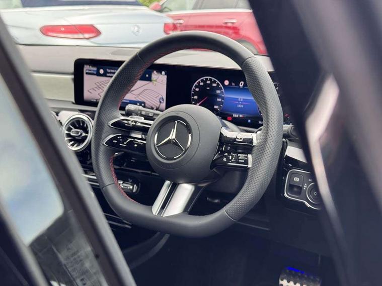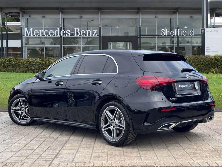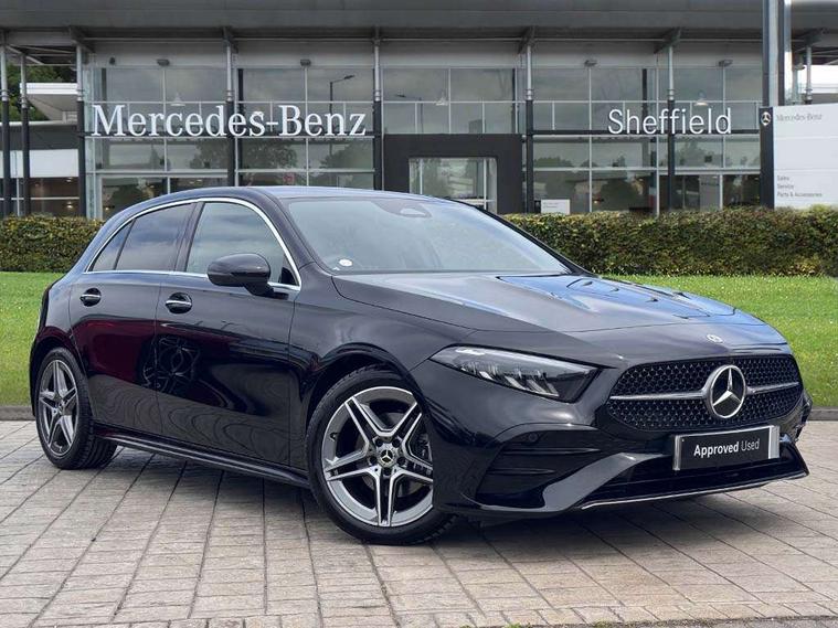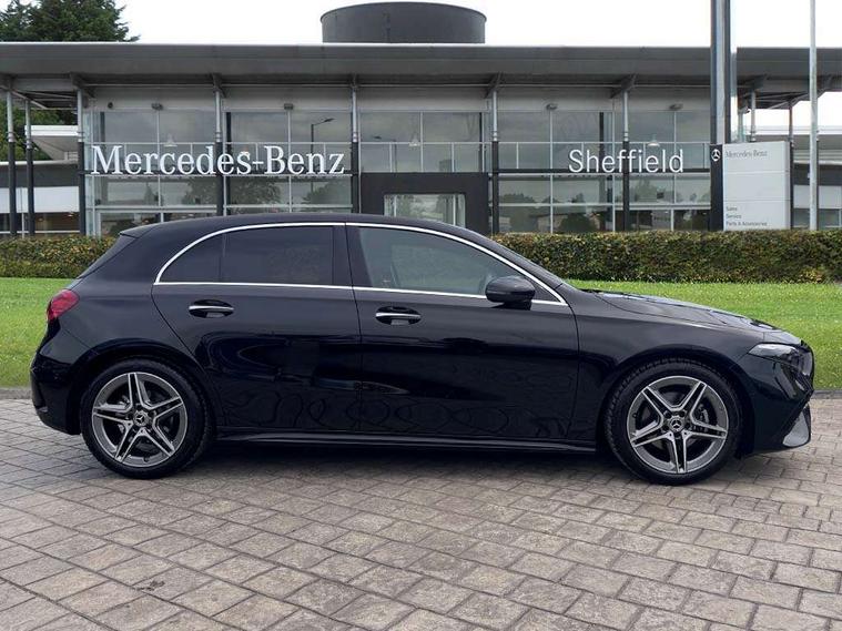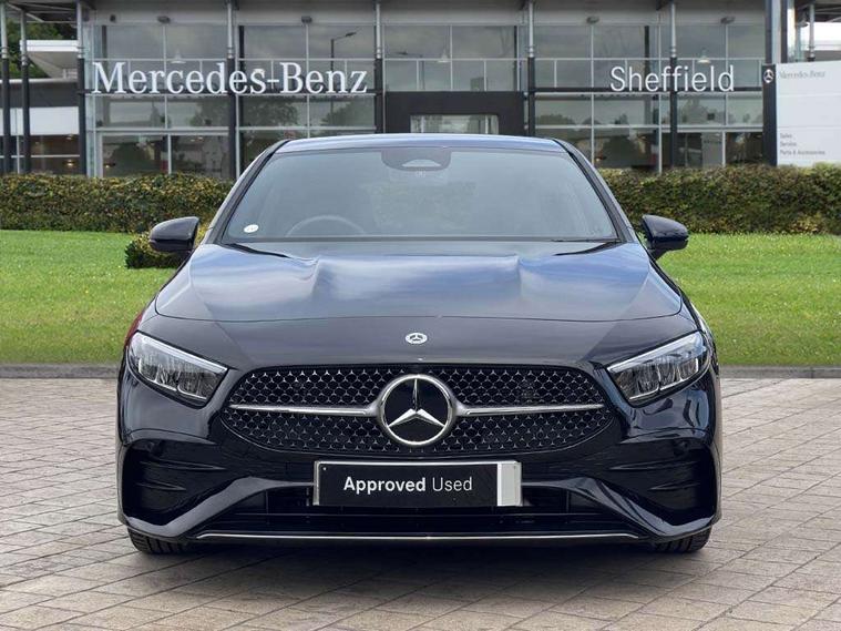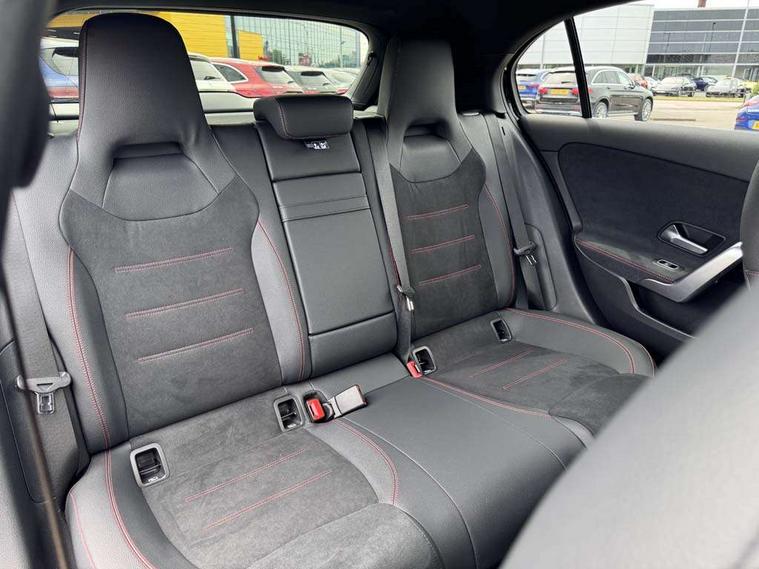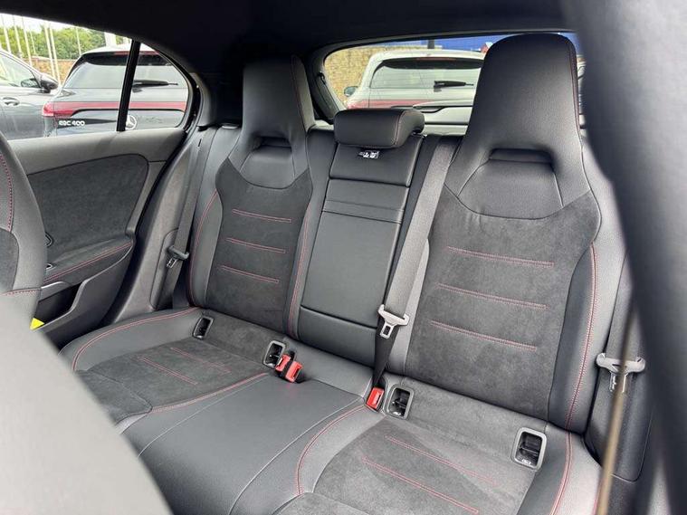 10.25 inch touchscreen central media display, 10.25" Digital instrument cluster display screen, Attention assist, Blind spot assist, Brake pad wear indicator warning light, Car wash mode, Cruise control + speed limiter, Direct steering, Direction indicators with lane change function, Dual bluetooth interfaces, DYNAMIC SELECT with a choice of driving modes (ECO, Comfort, Sport and Individual), Easy pack tailgate hands-free access, ECO start/stop function, Engine start/stop button, Fingerprint scanner, Fluid level warning indicator for fuel, oil, coolant and washer fluid, Fluorescent jacket for driver, Hard-disk navigation, Hey Mercedes Voice activation, Lamp failure indicator, Lane keeping system, Mercedes me connect including emergency call system, accident recovery, breakdown management and maintenance, Mercedes me remote services, Outside temperature gauge, Owners manual in English, Pre-installation of private car share, Preinstallation for Mercedes Benz link, Remote boot closing, Service indicator (ASSYST), Smartphone integration with Apple CarPlay and Android auto, Speed limit assist, Speed sensitive power steering, Tailgate, Trip computer in multifunction display with current consumption indicator, Wireless charging, Lowered comfort suspension, DAB Digital radio, MBUX multimedia system, Mercedes Benz sound system (100 W) with 6 speakers, 4 Electric Front and Rear windows, Adaptive brake lights, AMG body styling - AMG front apron with front splitter and AMG rear apron and visible exhaust tailpipe trim elements, Body colour bumpers, Body colour door handles with chrome inserts, Body colour side skirt, Body coloured door mirrors, Chrome beltline strips, Diamond radiator grille with pins in fine star pattern, Electric adjustable and heated door mirrors with integrated LED side indicators, Exhaust system with 2 visible tailpipe trim elements and rear apron, Headlamp assist automatic headlamp activation, Heat insulating dark tinted rear and rear side windows, Heated glass rear windscreen + timer control, LED High level third brake light, LED High Performance headlamps including integral LED daytime running lamps and adaptive highbeam assist, LED tail lamp, Privacy glass, Radio aerial, Rain sensing windscreen wipers with two sensitivity settings, Rear fog lights, Rear side wing doors, Rear windscreen wiper, Window line trim strip in chrome, 3 seat bench in 2nd row, 3 Spoke flat bottom leather multi function steering wheel with perforated leather in grip area, 4 way lumbar support, 40:20:40 split folding rear seats, Air conditioning - One zone thermatic automatic climate control with automatically controlled air distribution, AMG floor mats, Automatic child seat recognition sensor, Black air vents with surround in silver chrome, Black roof lining, Brushed stainless steel sports pedals with rubber studs, Front centre armrest with stowage, Front door sills with Mercedes Benz lettering, Front seat backs luggage nets, Galvanished gear shift paddles on steering wheel, Heated front seats, Height/reach adjustable steering column, Interior lighting - 64 colour Ambient lighting, Interior mirror with reading lamps in black and frameless, ISOFIX and top tether child seat fixing points in two outer rear seats, Rear armrest with 2 cupholders, Seat occupancy sensor for front passenger seat, Single front passenger seat, Sports seats with integrated headrests, Stowage compartment in centre console with retractable cover, Sunvisors with illuminated vanity mirrors, Twin front cupholders, Light and sight package - A Class, Mirror package - A Class, Parking pack with 180 degree view - A Class, Seat comfort pack - A Class, USB pack plus - A Class, 3 rear 3 point seatbelts, ABS with Brake Assist, Active bonnet, Active brake assist includes forward collision warning system with autonomous braking, Adaptive brake assist with hold function and hill start assist, Black seatbelts, Bonnet with power domes, Childproof locks manually operated for rear doors and electrically operated for rear power windows, Crash responsive emergency lighting, Driver and passenger head and side airbags, Drivers knee airbag, Dual stage driver/passenger airbags, Electronic parking brake, ESP curve dynamic assist, ESP with ASR, Front and rear seatbelt reminder, Tyre pressure monitoring system, Warning triangle and first aid kit, Window airbags, Alarm system/interior protection/immobiliser, Guard 360 degree vehicle protection, Keyless entry lock/unlock, Keyless Go, Remote central locking and crash sensor with emergency opening function, Light longitudinal grain aluminium trim, 18" AMG 5 twin spoke light alloy wheels, aerodynamically optimised, painted in black with high sheen finish, Summer tyres, Tirefit sealant kit,
