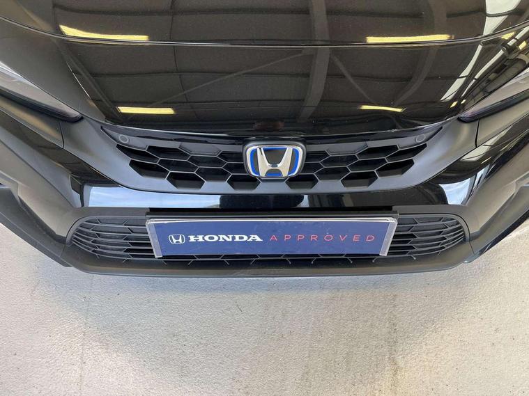 7" Multi information display screen, Adaptive cruise control, Adaptive motion for electric power steering, Adjustable speed limiter, Agile handling assist, BLIS (Blind Spot Information System) with Cross Traffic Monitor, Bluetooth hands free telephone connection, Driving modes, Economy mode, Electric power steering wheel with variable gear ratio steering, Emergency call service, Emergency stop signalling system, Forward collision warning, Front and rear parking sensors, Honda CONNECT with Navigation 9" touchscreen, AM/FM/DAB, Apple Carplay and Android Auto, live traffic info, Honda sensing, Idle stop, Intelligent speed limiter, Lane departure warning system, Lane keep assist, Low speed following, Power meter, Rear parking camera, Road departure mitigation, Smartphone wireless charging plate, Tailgate, Traffic jam assist, Traffic sign recognition, Wireless apple carplay, Vehicle stability assist, 'Shark fin' mobile antenna, 2x USB Front socket (1 data & 1 charge), 8 Speakers, Digital Audio Broadcast (DAB) Tuner, Front tweeters, Steering wheel mounted audio controls, Aspherical driver door mirrors, Auto dimming rear view mirror, Auto headlight adjuster, Auto headlights, Automatic coming/leaving home lighting function, Automatic rain sensing wipers, Black window frames, Body colour door handles, Electric adjustable heated door mirrors, Electric front and rear windows, Electrically folding door mirrors, Headlight extension black, High beam assist, High level LED brake light, LED daytime running lights, LED front fog lights, LED front turn type, LED Headlights, LED rear lights, Low gloss black window garnish, Material finish grille, Pop up hood, Privacy glass, Rear side wing doors, Rear wiper, Single hidden exhaust pipe, Variable front intermittent wipers, 3 seat bench in 2nd row, 60/40 split folding rear seat, Cargo accessory power socket, Cargo net hooks, Driver and front passenger seat armrests, Driver's electric lumbar adjustment, Driver's seat height adjustment, Dual climate control air conditioning system, Fabric/synthetic leather upholstery, Front accessory power socket, Front map lights, Front/rear courtesy lights, Glovebox light, Heated front seats, Hybrid emblem, Isofix points/i size, Leather steering wheel, Meter Illumination white, Passenger seat back pocket, Platinum chrome interior door handles, Rear air vents, Rear head restraints, Rear reading lights, Rear seat centre armrest, Single front passenger seat, Stainless steel sports pedals, Sunvisors with illuminated vanity mirrors, Tilt/telescopic adjustable steering wheel, Tonneau cover, Trunk light, USB Rear number 2 x charge, White ambient roof light, 3x3 point rear seatbelts, ABS+EBD+Brake assist, Airbags - driver and front passenger, Airbags - Knee (AS), Airbags - Knee (DR), Anti-whiplash front headrests, Brake hold function, Collision mitigation braking system, Collision mitigation throttle control, Deflation detection system, Driver SRS airbag (single stage inflation), Electronic parking brake with auto hold, Front and rear curtain airbags, Front and rear seat belts with emergency locking retractor (ELR), Front centre airbag, Front side airbags, Hill start assist, Low speed brake system, Manual child lock in rear doors, Passenger airbag deactivate switch, Rear airbags, Regenerative braking/deceleration paddle control, Immobiliser, Mirrors and windows key fob, Remote central locking with 2 jack knife keys, Security alarm, Selectable door unlock, Smart entry + Smart start, Superlocking, Tilt sensors, Ultrasonic security sensor, Tyre repair kit,