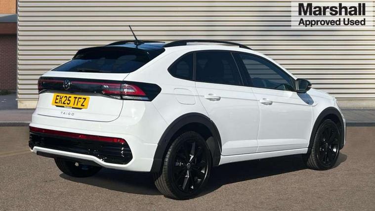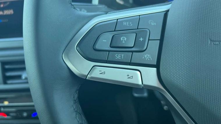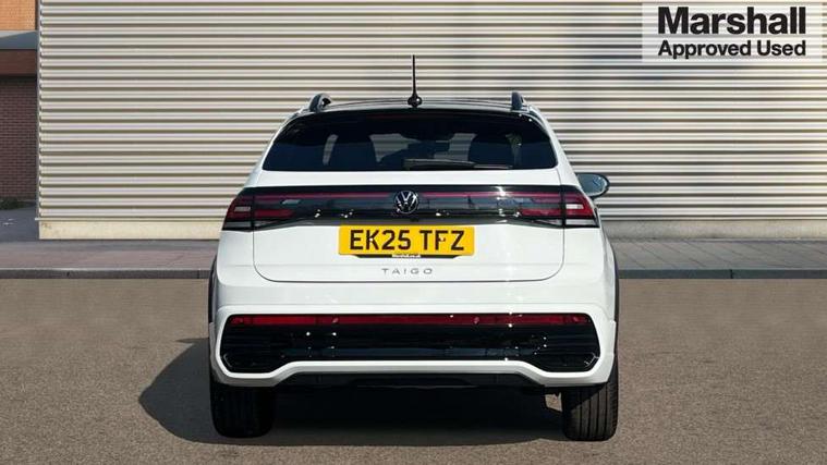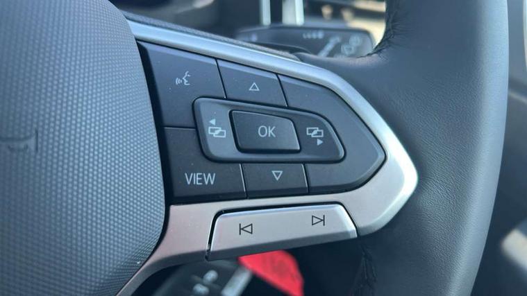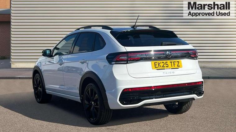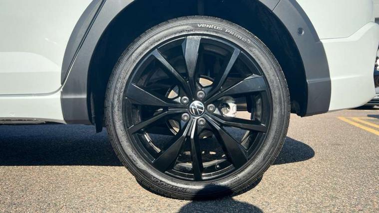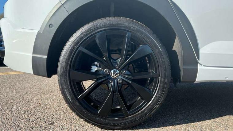 Adaptive cruise control, Advanced driver attention and drowsiness monitor, App-Connect including App-Connect Wireless, Digital cockpit pro - 10.25" high resolution TFT dash display screen with customizable menus and information, Driving profile selection, Dynamic road sign display, e-Call (emergency call), Power Steering, Travel assist including emergency assist, Washer fluid level indicator, Wireless Charging including Bluetooth, Start-stop system with battery regeneration (recuperation - energy recovery during braking), XDS electronic differential lock for improved traction and handling, Digital radio reception (DAB+), Diversity antenna for FM reception, WeConnect plus, Ambient lighting with logo projection, Aspherical driver's exterior mirror, Auto headlights, Body coloured bumpers, Bumpers in R-Line style, Electric windows, External USB type C socket and charging sockets, Front scuff plates with R-Line logo, LED rear combination lamp, LED third brake light, Left convex exterior mirror, Power folding adjustable/heated exterior mirrors and front passenger exterior mirror lowering function, Rear fog light on one side, reversing light on both sides, Rear side wing doors, Rear wash/wipe with intermittent wipe setting, 12V socket in centre console, 2 front reading lights, 3 rear head restraints, 3 seat bench in 2nd row, Air care climatronic air conditoning system with active combination filter and 2-zone temperature control, Black carpets, Black roof lining, Child seat anchor for child seat system i-Size, 2x top tether and child seat anchor in front on front passenger side, Chrome bezel for instrument cluster, vents, door handles + gear shift, Driver and front passenger seat height adjustment, Front + rear carpet mats, Front centre armrest, Front footwell illumination, Front sports comfort seats, Height and reach adjustable steering wheel, Interior ambient lighting and surround lighting, Karoso artvelours cloth upholstery, Leather trimmed gear knob, Leather wrapped multifunction steering wheel, Luggage compartment floor, Luggage compartment light, Lumbar support for driver's and front passengers seat, Seat covers in grey + titanium black, Single front passenger seat, Split folding backrest with centre armrest and unsplit rear seat bench, Stainless steel pedals, Storage compartment under front seats, Sun visors with illuminated vanity mirrors, Chrome Package - Taigo, Drivers assistance pack - Taigo, Light and Sight pack including High beam assist - Taigo, 2 x 3-point seatbelts/outer rear seats with ECE label, 3-point seat belts in front with pretensioner and height adjustment, 3-point seatbelt for centre rear seat, Adaptive driver and front passenger airbags with passenger airbag deactivation function, Driver and front passenger safety-optimised head restraints, Electronic stability control, Extended and predictive pedestrian/ cyclist protection, Front and rear disc brakes, Front curtain and side airbags with center airbag, Hill start assist, Manual rear child locks, Single tone horn, Tyre pressure loss indicator, Anti-theft alarm system with interior monitoring, backup horn, and towing protection, Grey anodised matte decorative inserts in dash and front door panels, Low rolling resistance tyres,