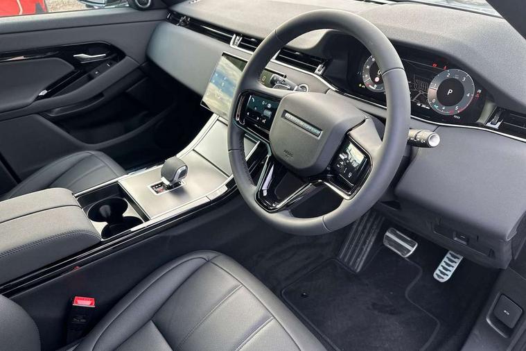 11.4" touch screen, 3D 360 degree surround camera with wade sensing, Adaptive cruise control, Android Auto, Apple car play, Blind spot assist, Bluetooth connectivity, Brake pad wear indicator warning light, Driver condition monitor, eCall emergency system, Eco mode, Electronic power assisted steering (EPAS), Front and rear parking aid, InControl remote, Interactive driver display, Land Rover InControl apps, Lane keep assist, Pivi pro connected includes diamond pivi variant, smart settings, connected navigation pro, nuance speech licence, Powered tailgate/boot lid, Rear collision monitor, Rear traffic monitor, Tailgate, Traffic sign recognition with adaptive speed limiter, Voice control system, Wireless device charging, All terrain progress control, Diesel exhaust fluid (DEF) large tank, Efficient Driveline, Large fuel tank, Terrain Response 2, Digital Audio Broadcast radio-DAB, Steering wheel mounted controls, Acoustic laminated windscreen, Auto headlights, Auto high beam assist, Automatic headlight levelling, Electric windows with one touch open/close and anti trap, Flush deployable exterior door handles, Front and rear recovery eyes, Heated rear window with timer, Heated washer jets, Heated windscreen, LED headlights with signature DRL and LED tail Lights, Power fold, auto-dimming, heated door mirrors with approach lights and auto dimming driver side, Rain sensing windscreen wipers, Rear animated directional indicators, Rear fog lights, Rear side wing doors, Rear wiper, Side repeater indicators in mirror, Tailgate spoiler, Third brake light, Winter wiper park position, 12 way driver memory and 10 way passenger electric front seats with 2 way manual headrest + 4 way lumbar support, 40:20:40 split folding rear seats with centre headrest and armrest, Ambient interior lighting, Bright metal pedals, Carpet mats, Chrome tread plates with range rover branding Includes stainless steel loadspace scuff plate with etched graphic, Customer configurable single point entry, Front and rear cupholders, Heated front seats, Heated steering wheel, Isofix system on outer rear seats, Manually adjustable steering column, Overhead lighting console, Overhead stowage for sunglasses, Passive front head restraints, Rear air vents, Rear head restraints, Satin chrome gearshift paddles, SE Grained leather upholstery, Single passenger seat, Standard steering wheel with Moonlight Bezel, Sunvisors with illuminated vanity mirrors, Twin sliding front centre armrest, Power socket pack 2 - Evoque, 3 rear 3 point seatbelts, Anti-lock braking system (ABS), Brake hold function, Customer configurable autolock, DSC - Dynamic Stability Control, Electronic brake force distribution, Electronic parking brake, Electronic traction control, Emergency braking, Front and rear seatbelt reminder, Hill descent control, Hill launch assist, Low traction launch, Occupant protection assist, Passenger seat occupant detector, Power operated child locks, Roll stability control, Six airbags - Driver and passenger airbags/driver knee airbag/front side airbag and curtain airbags, Torque vectoring brake, Tyre pressure monitoring system, Alarm, Immobiliser, Intrusion sensor, Keyless entry, Locking wheel nuts, All season tyres,