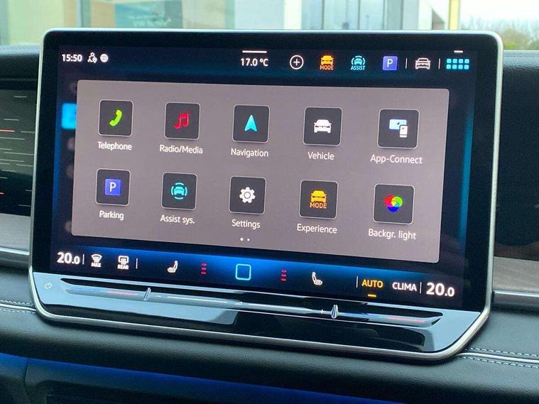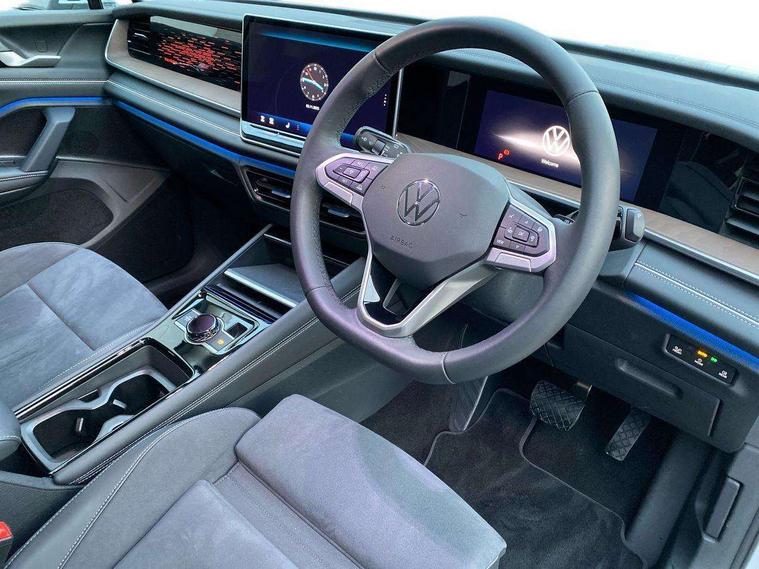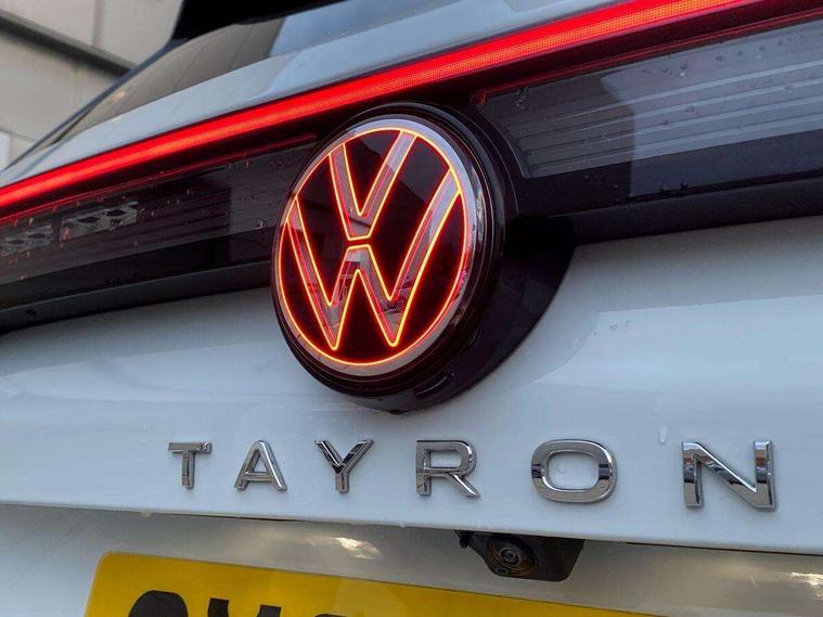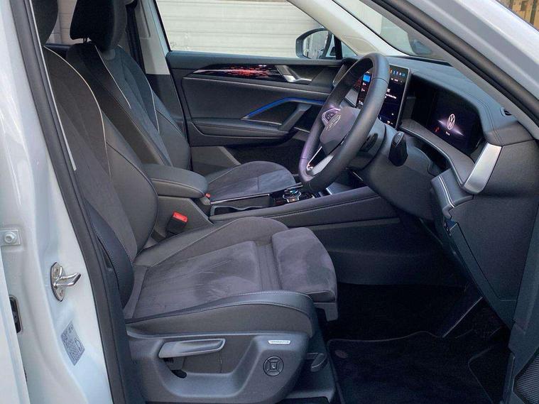 Adaptive cruise control (ACC), Digital Cockpit Pro - 10.25" high resolution dash display screen with customisable menus and information, Driver alert system, Driver attention monitoring system, Dynamic road sign display, E-Sim card for online connectivity, eCall emergency call system, Lane change system, Side assist, Rear traffic alert and Exit warning system, Multifunction front facing camera, Oncoming vehicle braking when turning including swerve support, Start/stop system with regenerative braking, Voice activation spoken voice commands for telephone and navigation system, Warning signal and warning light for front and rear seatbelts not fastened, Wireless App-Connect, Front wheel drive, Digital radio reception (DAB), Diversity antenna for FM reception, Auto dimming interior rear view mirror, Automatic headlight control system, Body colour door handles, Body coloured bumpers and air intake with chrome trim, Body-coloured exterior mirror housings, Chrome moldings on the side windows, Coming/leaving home lighting function, Dynamic headlight range control with dynamic cornering light, Exterior mirrors convex on the left and aspherical on the right, Heat insulating glass in side and rear windows, Illuminated Volkswagen logo rear with animation, Laminated safety glass from B-pillar backwards 90% tinted, Laminated safety glass winshield, heat insulating, LED 3rd brake light, LED separate signature day time running light, Puddle lights, Rain sensor windscreen wipers, Rear fog light on one side, reversing light on both sides, Rear side wing doors, Rear wiper, Reverse activated passenger's door mirror, Silver roof rails, Surround lighting with welcome light, Volkswagen logo in front, illuminated lighting animation with wake up/goodbye scenario and illuminated door handles, 12V socket in centre console, 3 rear headrests, 3 rear seat bench in 2nd row, backrest split folding with centre armrest and 2 seats in 3rd row of seats, Carpet mats, front and rear, Centre console with illuminated storage compartment with sliding cover and two drinks holders, Chrome elements on the mirror switch and power window switches and door pulls, Door and side trim panel featuring foam film with leatherette insert, Flat luggage compartment floor, Front centre armrest, Front scuff plates in alumium, Interior ambient lighting with 30 colour options, ISOFIX anchors for child seats on outer rear seats and front passenger seat. Compatible with i-Size, Mechanical rear seat release, Power adjustable lumbar support in front, Single front passenger seat, Sports comfort seats in front, Sun visors with illuminated vanity mirrors, Comfort package with park assist pro - Tayron, Driver assistance package - Tayron, 3 Point seat belts in front with pretensioners, 3 point seatbelts in outer rear with ECE label, Autonomous emergency braking front assist with pedestrian and cyclist monitoring, Driver and front passenger airbag with front passenger airbag deactivation, Electronic parking brake with auto hold, First aid kit with warning triangle and safety vest, Front and rear curtain airbags, Front and rear side airbags, Front centre airbag, Front disc brakes, Hill start assist, Rear disc brakes, Two tone horn, Decorative material set Elegance with inserts in ornamental wood ash in the dashboard, Interior door handle in matte chrome,