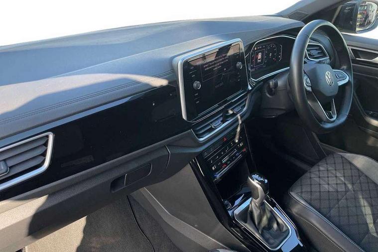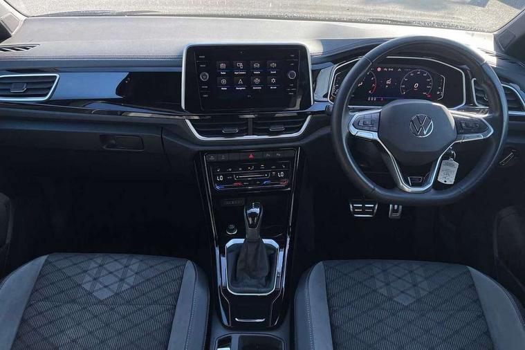10.25" Digital cockpit pro, Advanced driver attention and drowsiness monitor, Bluetooth mobile phone interface, Emergency call service, Lane keeping system Lane Assist, Modified key software - reduce switch off time for key status change to Long no motion, Online services, Park assist including front and rear parking sensors, Service interval indicator, Tailgate/trunk lid release from outside, Think blue trainer driver tips and journey analysis, Warning sound and light for front seatbelts unfastened, Wireless app connect, Battery regeneration during braking, Start/stop function with battery regeneration, Diversity antenna for FM reception, Music playback - MP3, WMA and AAC files, Premium USB cable in choice of either Apple or Android smartphone compatibility, SD card slot, Simultaneous pairing of 2 compatible mobile devices, Title and cover art display, We Connect and We Connect Plus functionality, 3rd brake light, Auto dimming interior rear view mirror, Automatic hazard lights activation under emergency braking, Automatic headlight control with LED separate daytime running lights with coming/leaving home function, Electrically adjustable and heated door mirrors, Extended roof spoiler, Exterior mirrors aspherical on driver side, convex on front passenger side, External USB type C socket and charging sockets, Front windscreen wiper with intermittent wipe and 4 position delay, Heated rear window, LED rear combination lamps, LED rear number plate lights, Power windows with comfort operation and circuit breaker, R-Line design body coloured bumpers, Rain sensor, Rear exhaust tailpipe, Rear fog light on one side and reversing lights on both sides, Rear side wing doors, Rear wash/wipe with intermittent wipe setting, Remote electrically foldable door mirrors, puddle lights and reverse activated passenger's door mirror, 12V power socket in centre console, 3 rear head restraints, 3 seat bench in 2nd row, 4 load lashing points in luggage compartment, Air care climatronic air conditoning system with active combination filter and 2-zone temperature control, Black roof lining, Chrome plated radiator grille inserts, air vent surrounds and light switch surrounds, Door and side trim panel with leatherette insert, Front + rear carpet mats, Front centre armrest, Front cupholders x 2, Front footwell illumination, Front reading light, Front scuff plates with R Line logo, Front seat back storage pockets, Glove compartment door with light, Instrument lighting, white adjustable panel illumination, Interior ambient lighting and surround lighting, Interior light delay, Isofix child seat preparation, Leather gearshift handle, Load-through provision with cup holder when folded down ('Unsplit rear seat bench, split folding backrest, with centre armrest), Luggage compartment lighting, Single front passenger seat, Stainless steel pedals, Storage compartment in left and right luggage area, Storage compartment in rear doors, Storage compartments in driver and front passenger doors, Sunvisors with illuminated vanity mirrors, Variable boot floor, height adjustable and removable, Driver assistance pack without proactive passenger protection - T-Roc, 3 point height adj front seatbelts + pretensioners, 3 point seatbelts in outer rear with ECE label, ABS, Child locks on rear doors, City emergency braking and pedestrian monitoring, Driver and front passenger airbag with front passenger airbag deactivation, Driver and front passenger safety-optimised head restraints, Drivers seatbelt reminder, Electronic parking brake, Electronic Stability Control (ESC) inc EDL (Electronic Differential Lock) and ASR (Traction Control), Front and rear passengers curtain airbag system including front side airbags, Hill start assist, Predictive pedestrian protection, Rear disc brakes, Two tone horn, Tyre pressure loss indicator, Volkswagen roadside assistance, Anti-theft alarm system with interior monitoring, backup horn, and towing protection, Remote central locking with SAFELOCK, radio remote control with 2 remote control folding keys, Trims for alloy wheels,