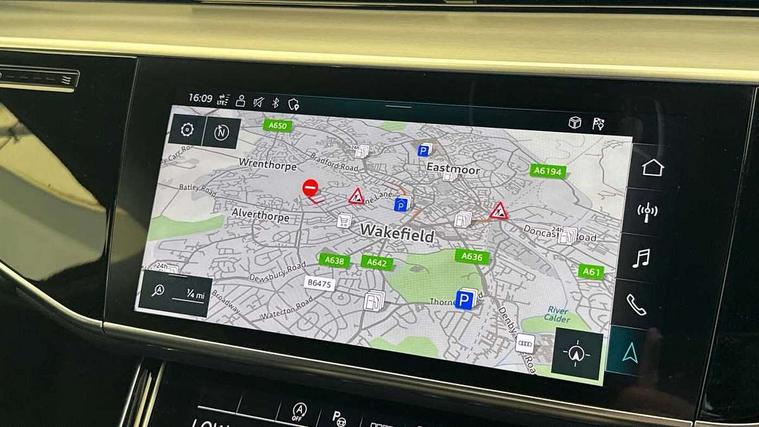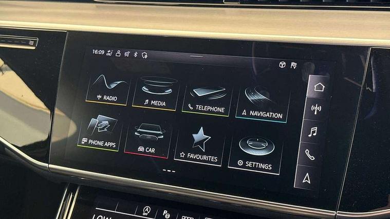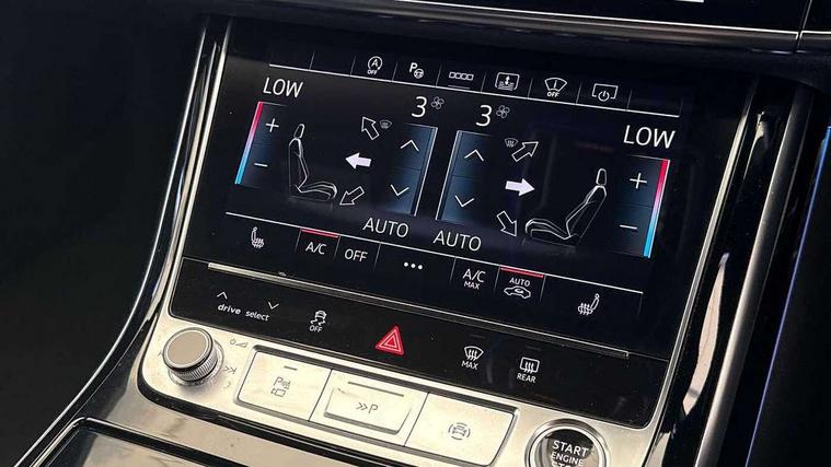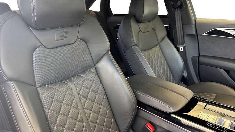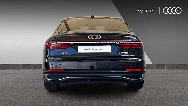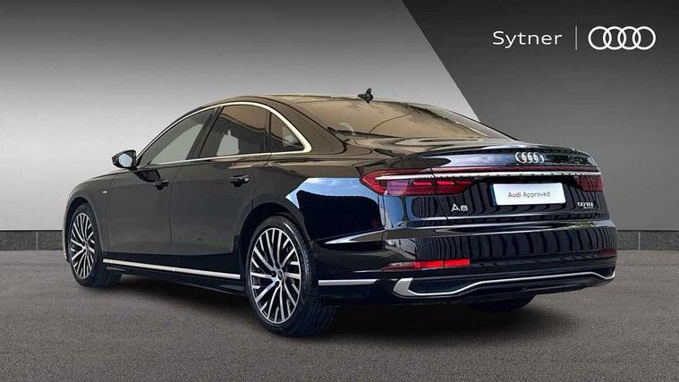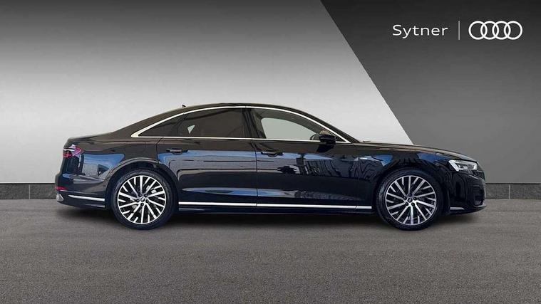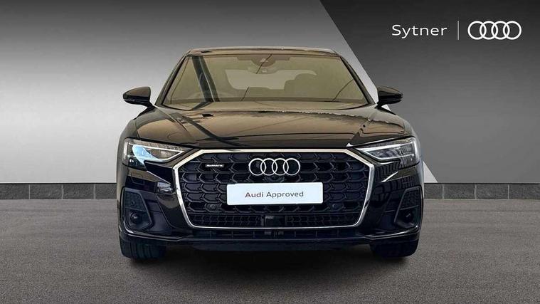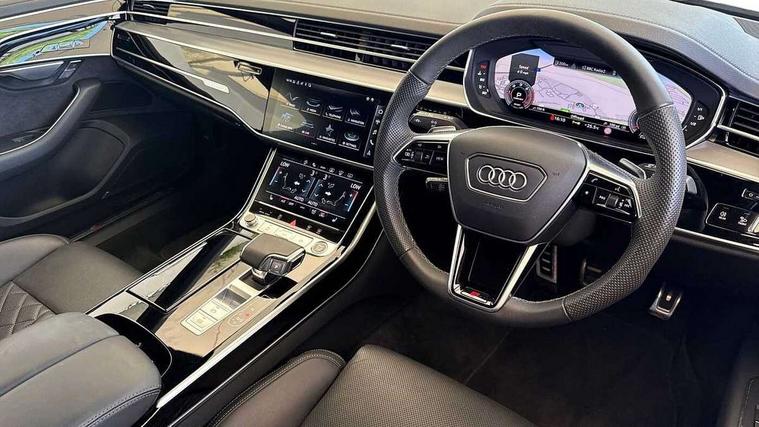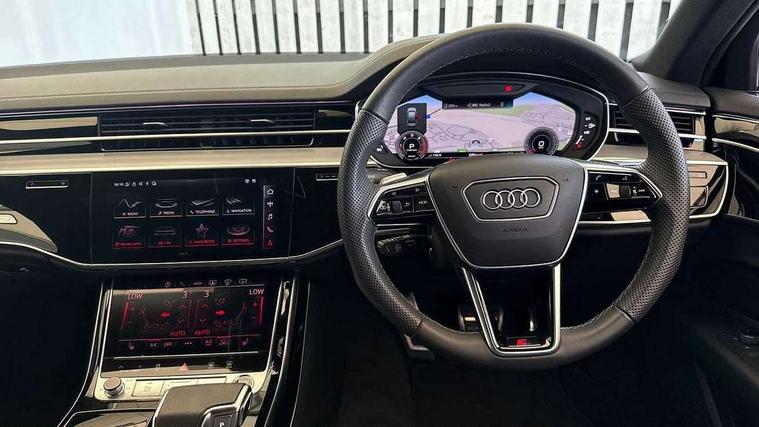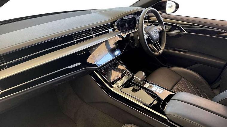 'Lights On' Reminder warning buzzer, Adaptive cruise control with cruise assist, emergency assist, efficiency assist, swerve assist, turn assist and speed limiter, Audi connect safety and service (e-call), Audi drive select, Audi parking system plus with front and rear sensors, Audi smartphone interface with app store includes wireless Apple carplay, Android auto and Amazon alexa integration, Audi virtual cockpit, Bluetooth interface, Camera based traffic sign recognition, Convenience key, Electro - mechanical power assisted steering, Head up Display, MMI navigation plus with MMI touch + Twin touch screens with haptic feedback, Operating buttons in black, glass look with haptic feedback including extended aluminium look, Power door closure, Power operated tailgate, Rear central control unit, Rear view camera, Remote fuel filler release, Service interval indicator, 24 litre AdBlue tank, 48V Mild hybrid technology, 8 speed transmission with hill hold assist, 82 litre fuel tank, Adaptive air suspension, Diesel particulate filter, Quattro all wheel drive with self locking centre differential, Audi music interface, Audi sound system, DAB digital radio module, DVD System, MMI radio plus, USB connection, USB ports with charging function in the rear, Acoustic double glazing, All-weather, manoeuvring, position, static cornering, turning and motorway lights with automatic dynamic headlight range control, Audi space frame, Auto dimming rear view mirror, Body colour bumpers, Body colour exterior mirror housings, Body colour side protection with aluminium trim strips, Electric front windows, Electric rear windows with isolation switch, Electric sunblinds for rear window and rear door windows, Electrically adjustable heated folding + automatically dimming exterior mirrors with memory function and integrated LED indicators, Front wash/wipe with interval delay, HD matrix LED headlights with dynamic light presentation and dynamic indicators, Headlight cleaning system, Heat insulating darkened glass in side and rear windows, Heat insulating glass windscreen, Heated rear window, Heated windscreen washer jets, High beam assist, LED brake lights, LED daytime running lights, LED third brake light, OLED rear lights with changeable rear light signature, Privacy glass, Rear boot, Rear side wing doors, Side skirts, Welcome/leaving lighting, 4 zone control automatic air conditioning, Audi phone box light, Black cloth headlining, Centre console with cupholders, Comfort centre armrest, Comfort rear headrests, Door pockets with bottle holder, Driver and front passenger side sunvisors with illuminated vanity mirrors, Dust/pollen filters, Electric front seats with memory function, Front floor mats, Glove compartment cooling, Heated front seats, Heated rear seats, Height/reach electric steering column with easy exit function, Illuminated door sill trims with aluminium inlays and S diamond emblem, Interior S Line Badging, Isofix child seat mounting points on outer rear seats, Leather gearknob, Passenger footwell storage net, Roof mounted sunglasses holder, Single front passenger seat, Stainless steel pedals and footrest, Valcona leather upholstery with front sports seats in diamond quilted with S embossed logo, Chrome exterior pack - A8, Extended LED Interior multi coloured light pack - A8, High gloss styling pack - A8, S line exterior styling pack - A8, 3 point seatbelts on all rear seats, ABS/EBD, Active front headrest system, ASR traction control, Audi pre sense basic, Audi pre sense front, Black brake calipers, Driver/Front Passenger airbags, EDL traction control, Electromechanical parking brake, ESP, Extended pedestrian protection measures, Front and rear disc brakes, Front and rear side airbags with head airbag system, Front passenger airbag deactivation, Rear child proof door locks, Seatbelt reminder + electric contact in buckle + advanced safety equipment, Tyre pressure loss indicator, Warning triangle and first aid kit, Anti theft alarm tow away protection, Anti-theft wheel bolts and wheel loosening detection, Remote central locking, Dark matt brushed aluminium lower inlays, Piano black finish upper inlays,