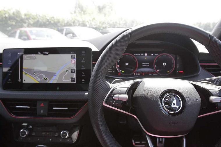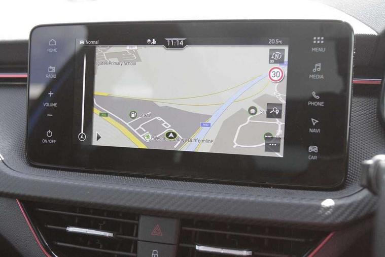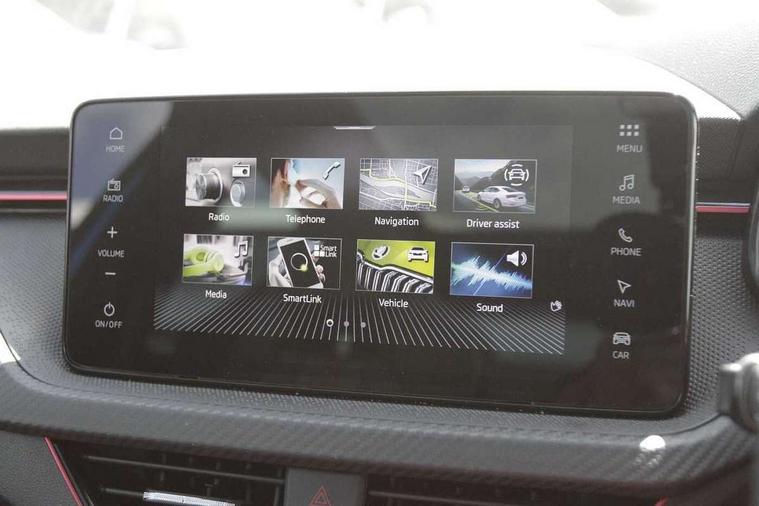 Advanced driver attention and drowsiness monitor, Bluetooth system, E-call, Front assist system, PAS, Rear parking sensors, Service indicator, Speed limiter, Traffic sign recognition, Virtual cockpit with 10.25" display, Voice control system, Wireless smartlink, 4 USB C ports, 8 Speakers, 9.2" Skoda navigation display, DAB Digital radio, Auto dimming rear view mirror, Automatic headlight control with coming home and leaving home feature, Black door mirrors, Black radiator grille, Black rear diffuser, Black roof spoiler, Body colour bumpers, Body colour door handles, Boot lettering in black, Extended tailgate glass, Front and rear electric windows, Heated rear window, LED daytime running lights, LED high beam, LED low beam, LED third brake light, Light sensors, Monte carlo plaque, Panoramic sunroof with black roof rails, Privacy glass, Rear side wing doors, Rear wiper, Ticket holder inside windscreen, 12V socket in luggage compartment, 3 seat bench in 2nd row, Aluminium pedals, Ambient lighting in white/red, Art leather carbon decor inserts, Art leather carbon door inserts, Black roof lining, Cargo elements, Chrome inner door handles, Driver and passenger sun visors with vanity mirror, Dual zone climate control, Front and rear roof lights, Front centre armrest, Front head restraints, Glove compartment with illumination, Height adjustable driver seat, Height adjustable front passenger seat, Ice scraper, Inner circulation control with pollen filter, ISOFIX on front passenger seat, Isofix preparation for back seats, Leather gearknob and handbrake lever, Manual lumbar support for front seats, Monte Carlo cloth upholstery, Net package and top tether hooks in boot space, Net under rear shelf, Pocket on the back of both front seats include mobile phone pockets, Rake/reach adjustable steering wheel, Reading lights, Rear centre armrests, Red hotstamping, Single front passenger seat, Sports seats, Textile floor mats, Third rear headrest, Top tether for front passenger seat, Umbrella in driver's door, Light and view plus package - Kamiq, 3x3 point rear seatbelts, Airbags - driver and front passenger, Disc brakes, ESP, Extended and predictive pedestrian/cyclist protection, Front passenger airbag deactivation switch, Front side airbags with curtain airbags, Hill hold control, Manual leather parking brake, Manual rear child locks, One tone horn, Seatbelt reminder for driver an co-driver, Traction control, Tyre pressure monitor, Anti-theft alarm system with interior monitoring, backup horn, towing protection and remote central locking with SAFE system, Anti-theft wheel bolts, Electronic engine immobilizer, 18" Ursa black diamond cut alloy wheels,