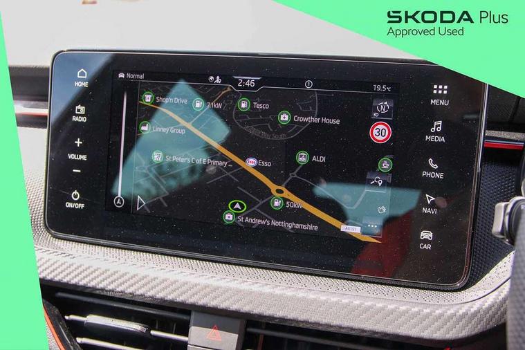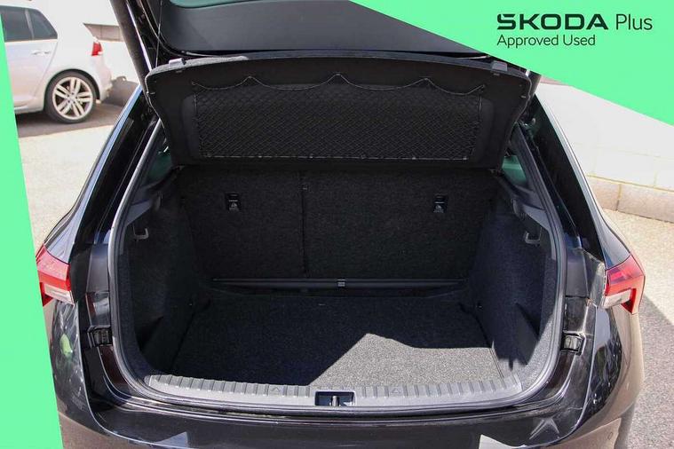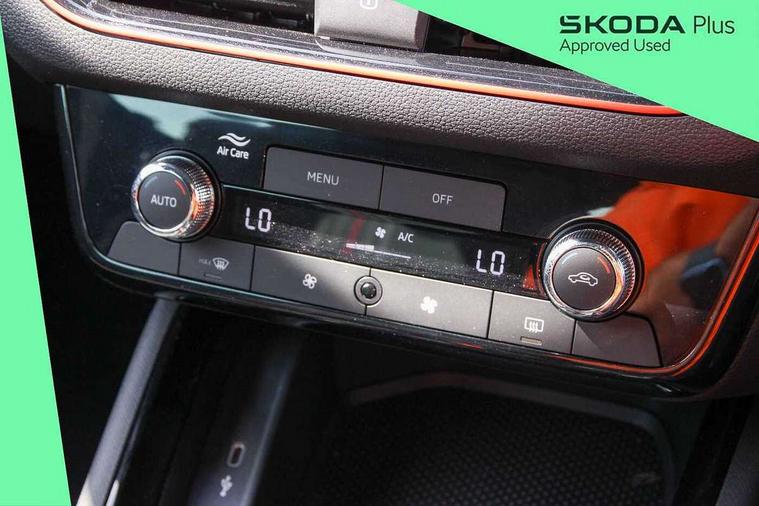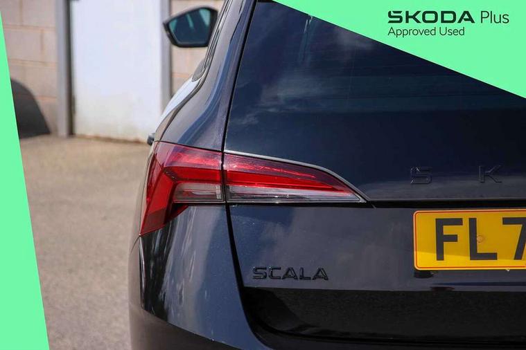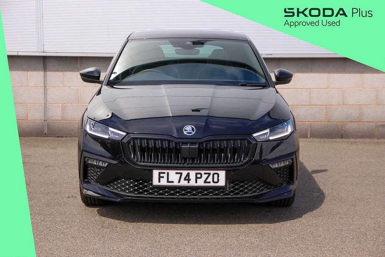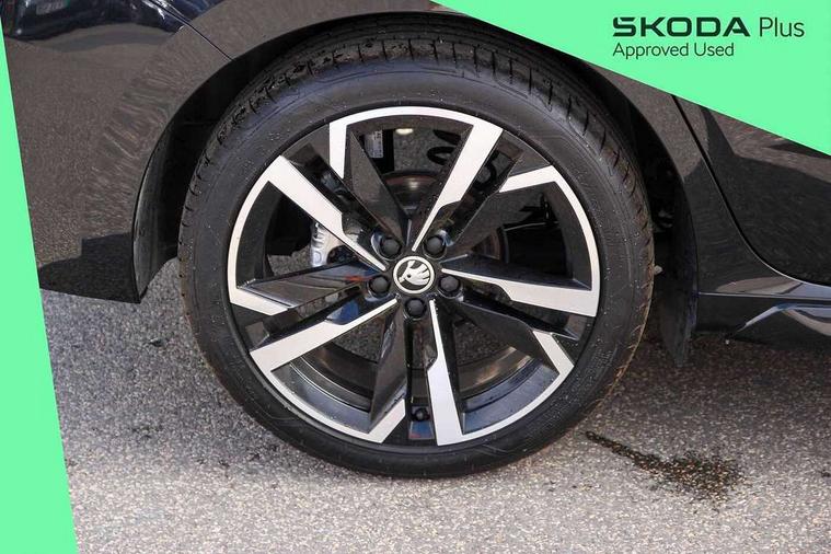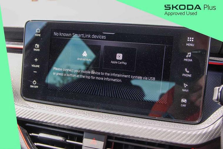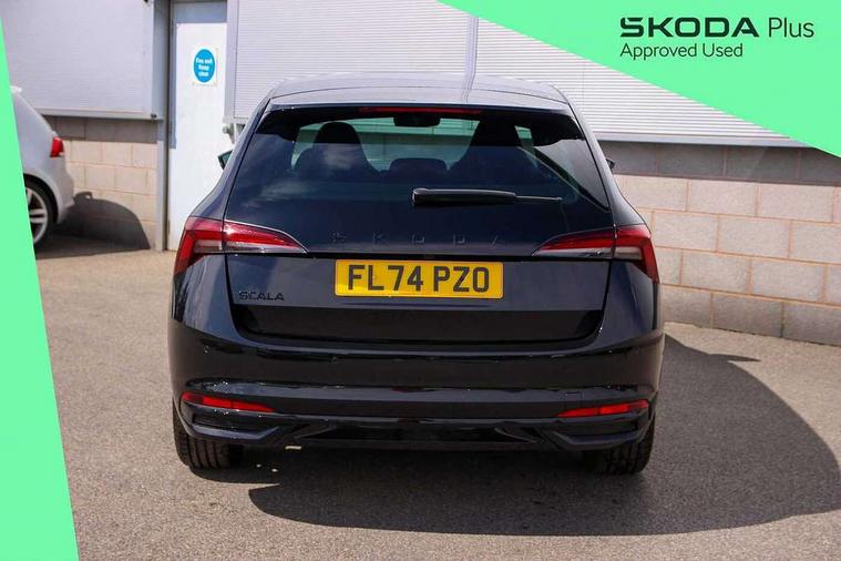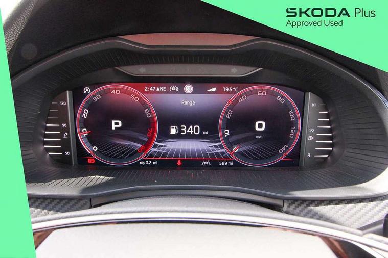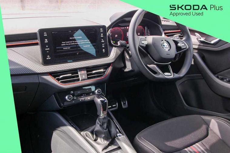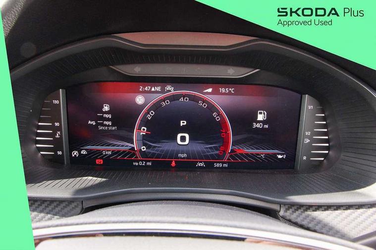 Advanced driver attention and drowsiness monitor, Bluetooth, e-Call (emergency call), Front assist system, PAS, Rear parking sensors, Speed limiter, Tailgate, Traffic sign recognition, Virtual Cockpit - 10.25" digital display, Voice control system, Wireless smartlink, 4 USB C ports, 8 Speakers, 9.2" Skoda navigation display, DAB radio, Auto dimming rear view mirror, Automatic headlamp activation with Coming home and Leaving home feature, Automatic high/low beam, Automatic intermittent wipers, Black door mirrors, Black lettering on boot lid, Black radiator grille, Black rear diffuser, Black roof spoiler, Body colour bumpers, Body colour door handles, Chrome moulding around grille, Extended tailgate glass, Front and rear electric windows, Heated rear window, LED 3rd brake light, LED brake lights, LED daytime running lights, LED high beam, LED low beam, Light sensors, Monte carlo plaque, Panoramic glass roof, Privacy glass, Rear LED fog light, Rear side wing doors, Rear wiper, Tinted windows, 12V socket in luggage compartment, 3 seat bench in 2nd row, Aluminium pedals, Ambient lighting in white/red, Black / White armrest stitching, Black ceiling, Black roof headlining, Cargo elements, Chrome inner door handles, Door inserts in art.leather carbon, Driver and passenger sun visors with vanity mirror, Dual zone climate control, Front and rear roof lights, Front centre armrest, Front head restraints, Height adjustable driver seat, Height adjustable passenger seat, Ice scraper, Illuminated glove compartment, Inner circulation control with pollen filter, ISOFIX for front passenger seat, Isofix preparation for back seats, Leather gearknob and handbrake lever, Luggage net under rear parcel shelf, Manual lumbar support for front seats, Monte carlo cloth upholstery, Net package and top tether hooks in boot space, Pocket on the back of both front seats, incl. mobile phone pockets, Rear centre armrest, Red hotstamping, Single front passenger seat, Sport seats, Textile floor mats, Third rear headrest, Ticket holder, Top tether for front passenger seat, Umbrella in driver's door, Light and view plus pack - Scala, 3x3 point rear seatbelts, ABS, Child locks, Curtain airbags and front side airbags, Disc brakes, Driver and front passenger airbags, ESP, Hill hold control, Manual leather parking brake, One tone horn, Passenger airbag switch off function, Seatbelt reminder for driver and front passenger, Tyre pressure monitoring system, Anti theft alarm system with interior monitoring, backup horn and towing protection, Anti-theft wheel bolts, Remote central locking with 2 remote folding keys, SAFE function for remote central locking, Carbon effect decorative inserts, 18" Ursa black diamond cut alloy wheels,