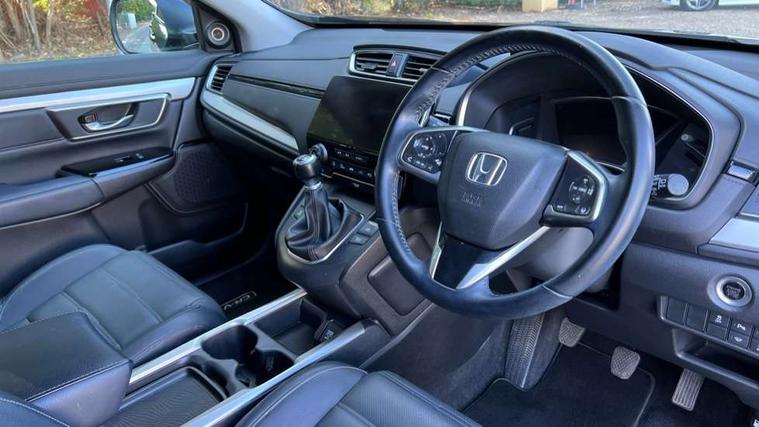 Adaptive cruise control, Agile handling assist, BLIS (Blind Spot Information System) with dual power heated blind spot mirrors, Bluetooth hands free telephone connection, Economy mode, Electric power steering, Emergency stop signalling system, Forward collision warning, Front and rear parking sensors, Honda CONNECT with GARMIN Navigation + 7" touchscreen, DAB radio, Apple CarPlay, Android Auto, Aha app integration and internet browsing, Idle stop, Intelligent multi info display, Lane departure warning system, Lane keep assist system, Rear view camera, Road departure mitigation, Speed limiter, Traffic sign recognition, Vehicle stability assist, 2 USB sockets in rear, 2x USB sockets in front, 8 Speakers, DAB Digital radio, Steering wheel mounted controls, Subwoofer, Aspheric door mirrors, Auto dimming rear view mirror, Automatic headlights with dusk sensor, Body colour bumpers, Body colour door handles, Cornering light, Door mirrors tilt when reversing, Electric front windows/one touch facility, Electric rear windows + one touch facility, Electrically adjustable and heated door mirrors, Electrically retractable door mirrors, Front windscreen de-icer, LED daytime running lights, LED front fog lights, LED Headlights, LED rear lights, Rain sensor, Rear privacy glass, Rear wiper, Roof rails, Shark fin roof aerial, Trailer stability assist, Welcome home function, 60/40 split folding rear seat, Accessory sockets, Ambient interior lighting, AWD emblem rear, Cargo hooks, Courtesy lights, Driver's electric adjustable lumbar support, Driver/passenger front seatback pockets, Driver/passenger sunvisors with illuminated vanity mirrors, Dual zone automatic climate control, Electric lumbar adjustment on passenger's seat, Footwell ambient lighting, Front centre armrest, Front map lights, Front passenger seat height adjust, Gear shift indicator, Heated front seats, Height adjustable driver's seat, Illuminated glovebox, Instrument panel with garnish wood film, Isofix child seat preparation, Leather gearknob, Leather steering wheel, Leather upholstery, Rear air vents, Rear centre armrest, Rear headrests, Rear reading lights, Rear seat conversation mirror, Silver interior door handles, Sunglasses holder with mirror, Tilt/telescopic adjustable steering wheel, Tonneau cover, Trunk light, 5 x 3 point seatbelts, ABS/EBD, Anti-whiplash front headrests, Brake assist function, Collision mitigation braking system, Deflation detection system, Driver airbag, Electronic parking brake with auto hold, Front and rear curtain airbags, Front side airbags, Hill start assist, Passenger airbag deactivate switch, Honda super locks, Immobiliser, Remote keyless entry, Security alarm, Ultrasonic sensor and tilt sensor, Temporary spare wheel,