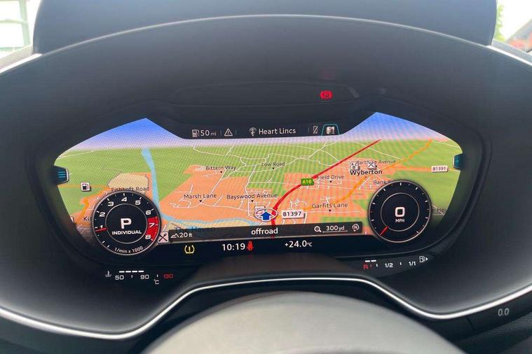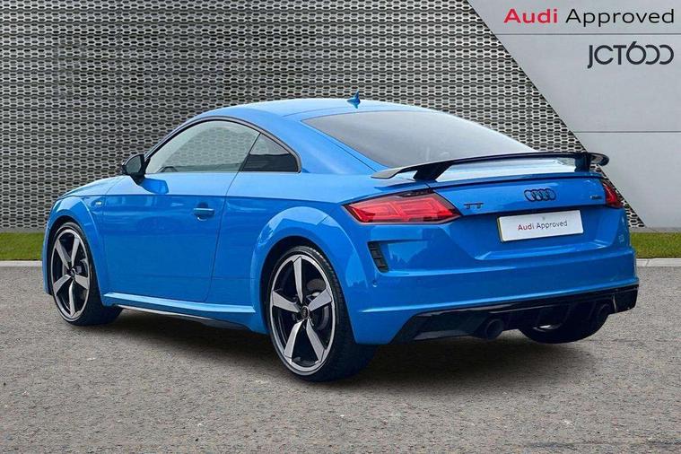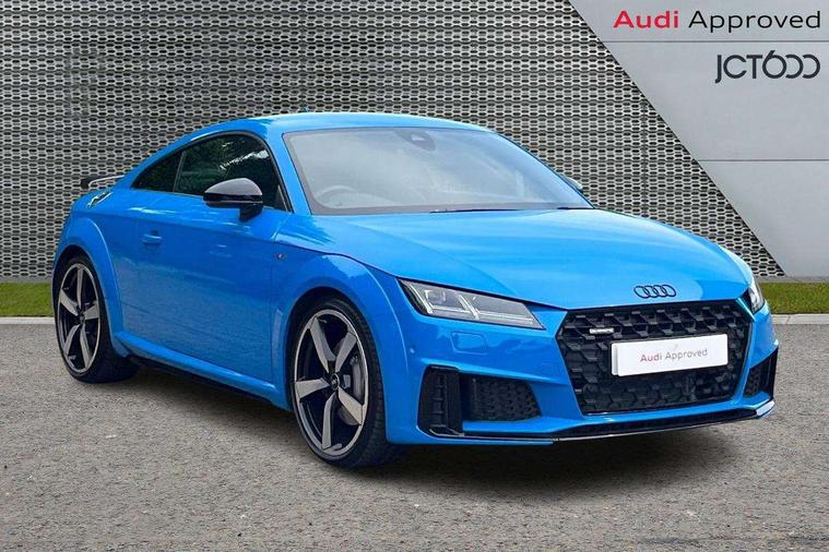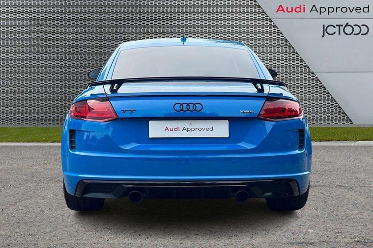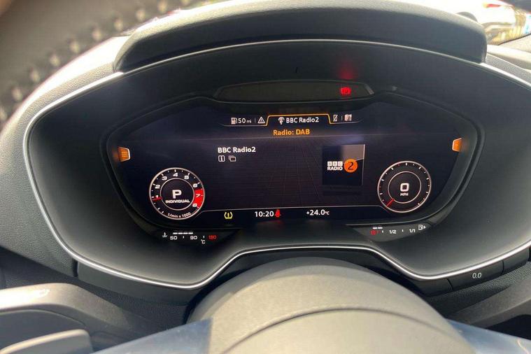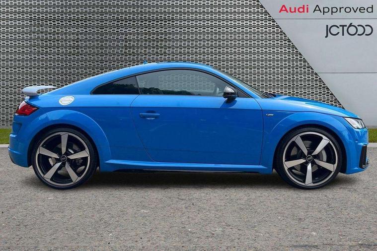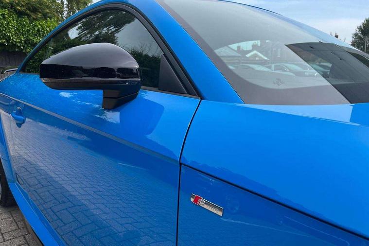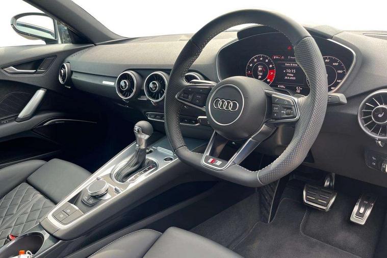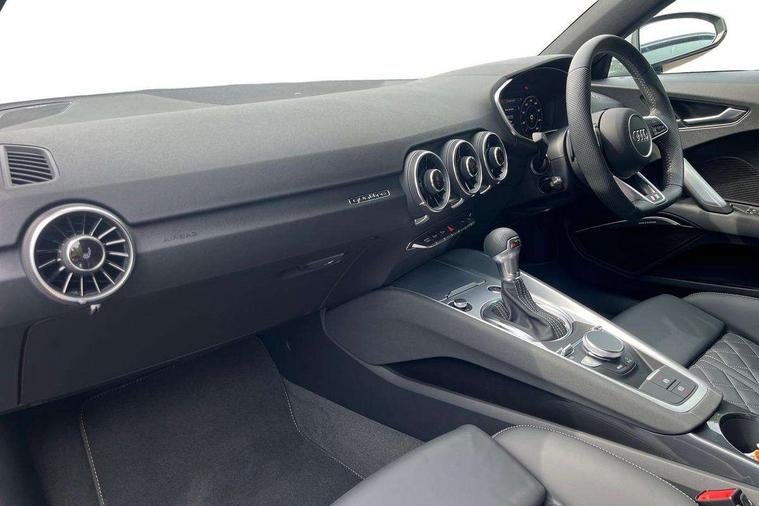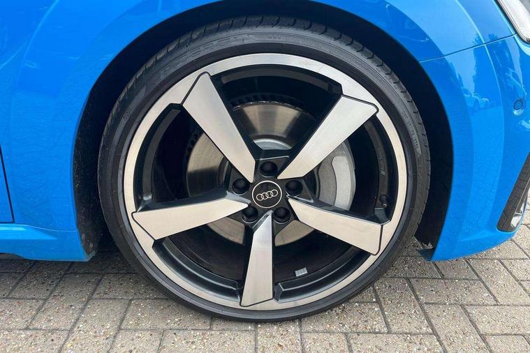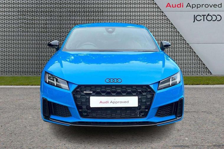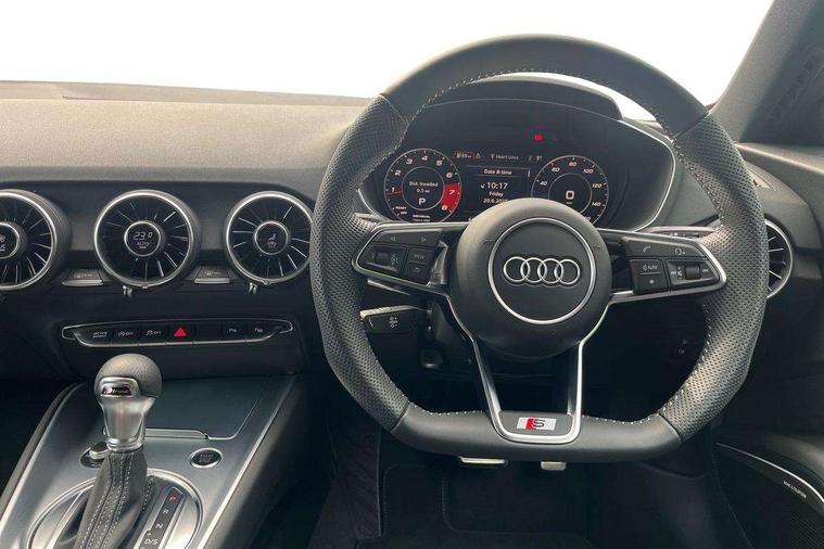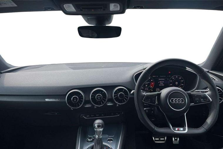 Audi drive select with 4 Pre configured modes, Audi Phone Box with wireless charging - Qi enabled compatible phone and additional bluetooth interface, Audi side assist, Audi smartphone interface, Camera based traffic sign recognition, Cruise control + speed limiter, Emergency call service, Mobile phone preparation with bluetooth interface, Progressive power assisted steering, Service interval indicator, Start/Stop system with energy recuperation, TP memo, Sports suspension, AM/FM radio, Bluetooth audio streaming, DAB Digital radio, MMI Radio with CD player and SD/XC card slot, Audi Beam uses LEDs to project the Audi Sport logo, Auto dimming rear view mirror, Black chrome tailpipe, Dark privacy glass from B-pillar backwards, Electric front windows, Electrically adjustable, foldable and heated auto dimming on driver side and automatic kerb view dipping function on the passenger side, Front fog lights, Green tinted heat insulating glass, High beam assist, LED 3rd brake light, LED Dynamic rear indicators, Light and rain sensors, Matrix LED light+LED daytime running light, LED Indicator, Headlightclean, auto dynm headlight range+dynamic cornering light, Motorwaybeam/Manoeuvre light, Rear boot, Sunband for windscreen, 12V socket, 2 rear seats, 3 spoke flat bottomed high multi-function leather sport steering wheel with gearshift paddles, 4 way electric lumbar support for driver and front passenger, Black headlining, Deluxe auto air conditioning with integrated digital display, Door sill trims, Extended aluminium look with stainless steel pedals, Fine Nappa leather with electrically adjustable 4 way lumbar/Super Sport front seats + "S" embossing, Front centre armrest, Front passenger seat, Front super sports seats, Heated front seats, Height/reach adjust steering wheel, Integrated head restraints, ISOFIX child seat mounting for front passenger seat with airbag deactivation, Manual adjustment of seat height, fore/aft position, seat angle, seat depth and backrest angle, Perforated leather gearknob in black, Rear head restraints, Rear top tether child seat ISOFIX attachment, Split folding rear seat, Black styling pack - TT, Comfort and sound pack - TT with park assist, LED interior light pack - TT/TT RS, Non smoking pack - TT/TT RS, Technology pack without Audi phone box - TT, 3 point front seat belts, ABS, ASR traction control, Curtain airbags, Driver and front passenger airbag with front passenger airbag deactivation, EDL traction control, Electromechanical parking brake, ESP, First aid kit, Front side airbags, Head airbags, Hill hold assist, Seatbelt warning, Tyre pressure loss indicator, Warning triangle, Anti theft alarm, Anti theft wheel bolts, Immobiliser, Keyless Go, Remote central locking, Matt brushed aluminium inlays, 20" 5 arm cutter style Audi sport in anthracite black diamond cut alloy wheels, Tool kit, Tyre repair kit,
