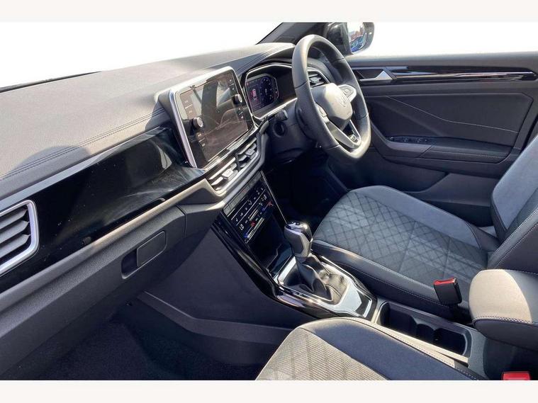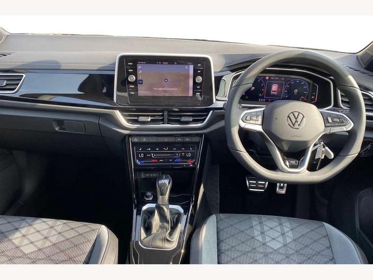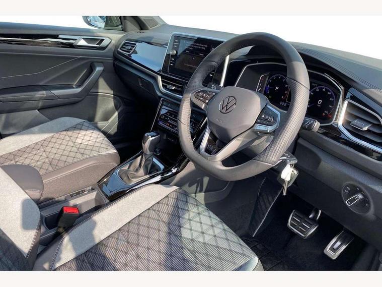 10.25" Digital cockpit pro, Advanced driver attention and drowsiness monitor, Emergency call service, Lane keeping system Lane Assist, Mobile phone interface, Modified key software - reduce switch off time for key status change to Long no motion, Online services, Park assist including front and rear parking sensors, Service interval indicator, Tailgate/trunk lid release from outside, Think blue trainer driver tips and journey analysis, Warning sound and light for front seatbelts unfastened, Wireless app connect, Battery regeneration during braking, Start/stop function with battery regeneration, DAB Digital radio, Diversity antenna for FM reception, Front and rear 6 speakers, Music playback - MP3, WMA and AAC files, Premium USB cable in choice of either Apple or Android smartphone compatibility, SD card slot, Simultaneous pairing of 2 compatible mobile devices, Title and cover art display, We Connect and We Connect Plus functionality, Auto dimming interior rear view mirror, Automatic hazard lights activation under emergency braking, Automatic headlight control with LED separate daytime running lights with coming/leaving home function, Body coloured exterior mirror housings and door handles, Electrically adjustable and heated door mirrors, Extended roof spoiler, Exterior mirrors aspherical on driver side, convex on front passenger side, External USB type C socket and charging sockets, Front windscreen wiper with intermittent wipe and 4 position delay, Heated rear window, LED 3rd brake light, LED rear combination lamps, LED rear number plate lights, Power windows with comfort operation and circuit breaker, Privacy glass for rear side windows and rear window, R-Line design body coloured bumpers, Rain sensor, Rear exhaust tailpipe, Rear fog light on one side and reversing lights on both sides, Rear side wing doors, Rear wash/wipe with intermittent wipe setting, Remote electrically foldable door mirrors, puddle lights and reverse activated passenger's door mirror, 12V power socket in centre console, 3 rear head restraints, 3 seat bench in 2nd row, 4 load lashing points in luggage compartment, Air care climatronic air conditoning system with active combination filter and 2-zone temperature control, Black roof lining, Chrome plated decorative trims, Chrome plated radiator grille inserts, air vent surrounds and light switch surrounds, Door and side trim panel with leatherette insert, Front + rear carpet mats, Front centre armrest, Front cupholders x 2, Front footwell illumination, Front reading light, Front scuff plates with R Line logo, Front seat back storage pockets, Glove compartment door with light, Instrument lighting, white adjustable panel illumination, Interior ambient lighting and surround lighting, Interior light delay, Isofix child seat preparation, Leather gearshift handle, Load-through provision with cup holder when folded down ('Unsplit rear seat bench, split folding backrest, with centre armrest), Luggage compartment lighting, Single front passenger seat, Stainless steel pedals, Storage compartment in left and right luggage area, Storage compartment in rear doors, Storage compartments in driver and front passenger doors, Sunvisors with illuminated vanity mirrors, Variable boot floor, height adjustable and removable, Driver assistance pack without proactive passenger protection - T-Roc, 3 point height adj front seatbelts + pretensioners, 3 point seatbelts in outer rear with ECE label, ABS, Child locks on rear doors, City emergency braking and pedestrian monitoring, Driver and front passenger airbag with front passenger airbag deactivation, Driver and front passenger safety-optimised head restraints, Drivers seatbelt reminder, Electronic parking brake, Electronic Stability Control (ESC) inc EDL (Electronic Differential Lock) and ASR (Traction Control), Front and rear passengers curtain airbag system including front side airbags, Hill start assist, Predictive pedestrian protection, Rear disc brakes, Two tone horn, Tyre pressure loss indicator, Volkswagen roadside assistance, Piano black decorative inserts in dashboard and front door trim panels, Trims for alloy wheels,