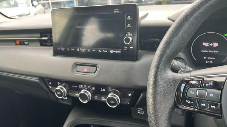 7" TFT instrument cluster, Adjustable speed limiter, Agile handling assist, Bluetooth hands free telephone connection, Drive modes select (Eco, normal and sport), eCall emergency system, Electric power steering, Emergency stop signalling system, Forward collision warning, Honda CONNECT with navigation, 9" touchscreen, AM/FM/DAB/Apple Carplay and android auto, Honda sensing with blind spot information, adaptive cruise control and lane keep assist, Idle stop, Intelligent speed limiter, Low speed following, Rear parking sensors and rear view camera, Tachometer, Tailgate, Traffic sign recognition, WiFi connectivity, Vehicle stability assist, 'Shark fin' mobile antenna, 2x USB Front socket (1 data & 1 charge), 4 speakers, Steering wheel mounted remote controls, Auto high beam, Automatic coming home lighting, Automatic headlights, Automatic rain sensing wipers, Body colour bumpers, Body colour tailgate spoiler, Body coloured door handles, Electric front and rear windows, Electrically adjustable and heated door mirrors, Front sequential turn, Headlight washers, Heated front windscreen, Heated rear window, High level third brake light, LED daytime running lights, LED headlamps, Manual headlight levelling, Rear side wing doors, Rear wiper, Variable front intermittent wipers, Windscreen shadeband, 3 rear headrests, 3 seat bench in 2nd row, 60/40 split folding rear seat, Ambient interior lighting, Automatic air conditioning, Cargo net hooks, Courtesy lights, Driver seat back pocket, Driver's seat height adjustment, Driver/passenger sunvisors with illuminated vanity mirrors, Front and rear map reading lights, Front head restraints, Front seat armrests, Heated front seats, Isofix points, Luggage area under floor storage box, Magic seat flexibility system, Manual height/reach adjust steering wheel, Paddle shift controls, Rear centre armrest, Rear ventilation, Single front passenger seat, Tonneau cover, Trunk light, 3x3 point rear seatbelts, ABS+EBD+Brake assist, Anti-whiplash front headrests, Collision mitigation braking system, Collision mitigation throttle control, Deflation detection system, Dual front SRS airbags, Electric child locks, Electronic parking brake, Front and rear curtain airbags, Front and rear safety belts with Emergency Locking Retractor, Front side airbags, Hill descent control, Hill start assist, Low speed safety system, Passenger SRS airbag cut-off device, Regenerative braking system, Door deadlocks, Immobiliser, Keyless smart entry with push button start, Mirrors and windows key fob operation, Remote central locking with 2 remote folding keys, Security alarm, 18" Black cut alloy wheels, Tyre repair kit,