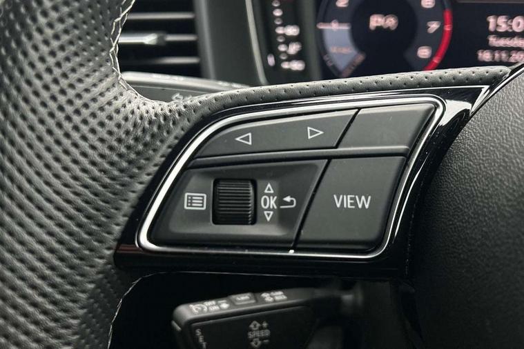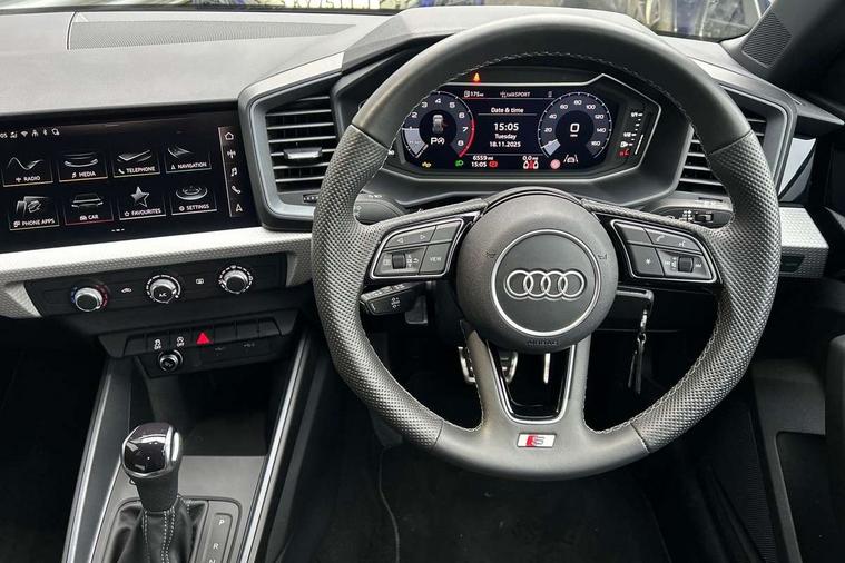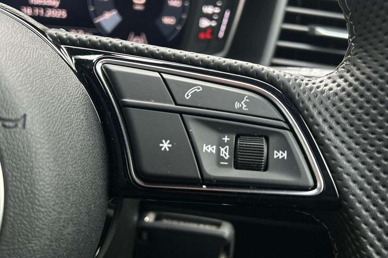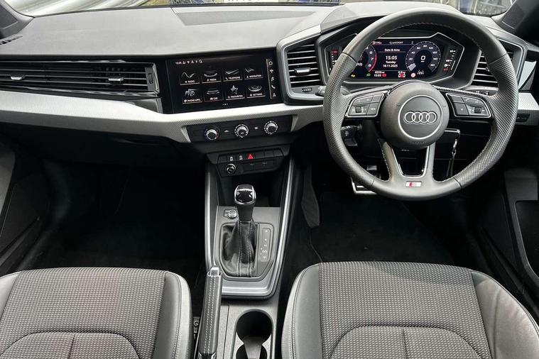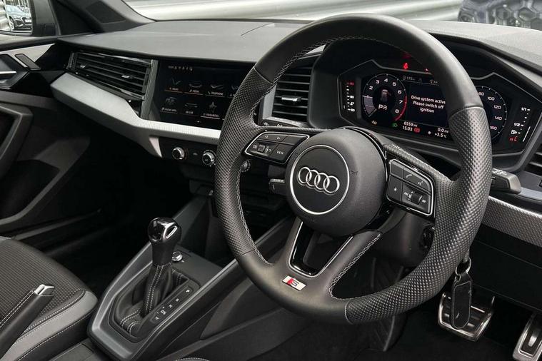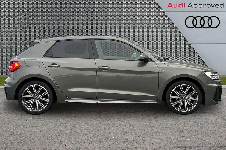 10.25" Digital instrument cluster display classis style instrument dials + speed, odometer, time, outside temperature, telephone menu + fuel level warning, Advanced driver attention and drowsiness monitor, Audi connect emergency call and service, Audi remote connect and control, Audi smartphone interface, Bluetooth interface, Camera based traffic sign recognition, Cruise control, Driver's information system, Electromechanical power steering, Lane departure warning system, Rear parking sensor, Service interval indicator, Speed limiter, Start stop system with recuperation, Voice control system, Washer fluid level indicator, Sports suspension, 2 x USB type C connection points, 6 loudspeakers, DAB Digital radio, MMI radio plus with 10.1" colour MMI display screen and MMI touch, Auto dimming rear view mirror, Body coloured door mirrors, Door sill trims with aluminium inlays and S line logo in front, Electric front and rear windows, Electrically adjustable, heated, folding door mirrors with integrated LED side indicator, Front side air inlets in grained matt black and C frame in anthracite black, Headlight cleaning system, Heat insulating glass windscreen and side windows, Heated rear windscreen, High level LED brake light, LED daytime running lights, LED headlights with range control LED rear lights + dynamic rear indicators, Privacy glass, Radiator grille and rear diffuser in matt anthracite black, Radiator protective grille frame in matt aluminium silver, Rain and light sensors, Rear fog lights, Rear side wing doors, Rear wiper, S line badges on front wings, Side front spoiler lips in grained matt black, 12V socket in centre console with two cup holders, 3 rear seats with headrests, 3 seat bench in 2nd row, 3 spoke leather multi-function plus steering wheel features S badging and grips in perforated leather with contrast stitching, 40:60 Split folding rear seat or fully collapsed, Black cloth headlining, Front and rear velour black floor mats with contrast stitching in fine silver, Front head restraints, Front passenger seat, Height and reach adjustable steering wheel, Interior lighting includes roof module, front and rear reading lights and right luggage compartment lighting, ISOFIX child seat mounting for front passenger and outer rear seats including top tether attachment point of outer rear seats, Leather gear knob with aluminium trim, Leather handbrake grip, Manual air conditioning, Manual height adjustable for driver and front passenger seat, Manually adjustable lumbar support in front seats, Stainless steel pedals, Ambient lighting package - A1, Luggage compartment pack - A1, S line exterior styling pack - A1 Sportback, 3x3 point rear seatbelts, Audi pre-sense front with pedestrain and cyclist recognition, Brake assist function, Driver and front passenger airbag with front side and head airbags, Electronic Stability Control including ABS, EBD, ASR and EDL, Front passenger airbag deactivation switch, Hill hold assist, Manual rear child locks, Seatbelt height adjustment for front seats, Seatbelt monitoring, Tyre pressure loss indicator, Warning triangle and first aid kit, Anti theft alarm, Anti theft wheel bolts, Immobiliser, Remote control key with safelock, Aluminium trim for control switches, air vents and digital instrument cluster, Black dashboard, Silver grey inlays polygon structure in diamond paint finish, Structured grey accent surfaces insert of air vents, interior door handle recesses and centre console in quartz paint finish,