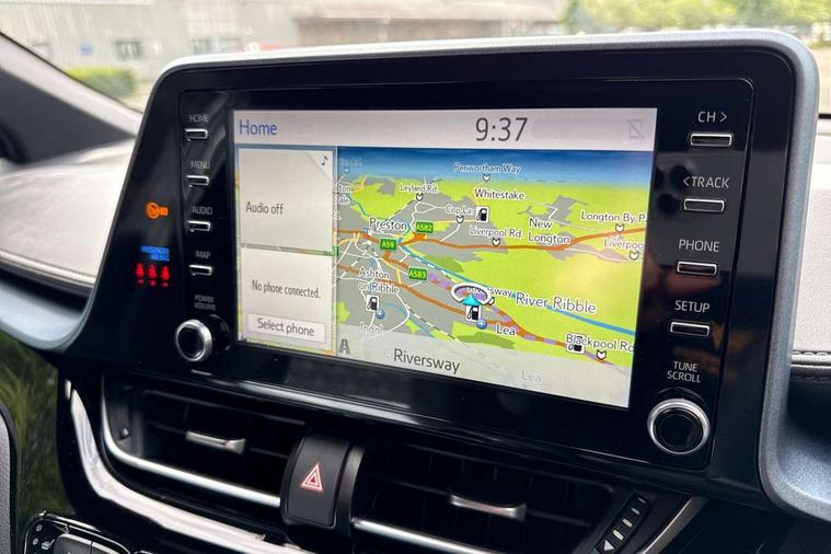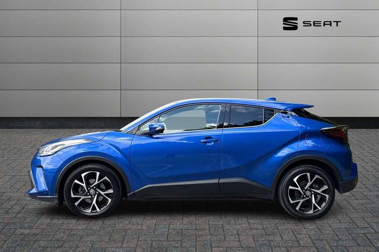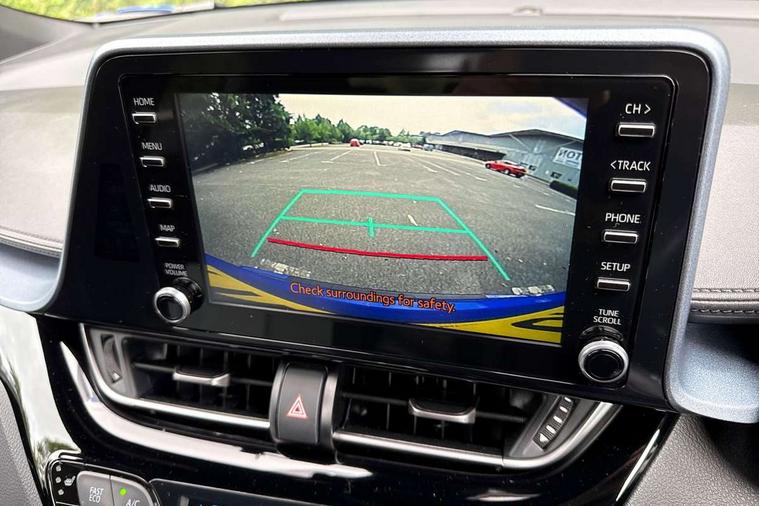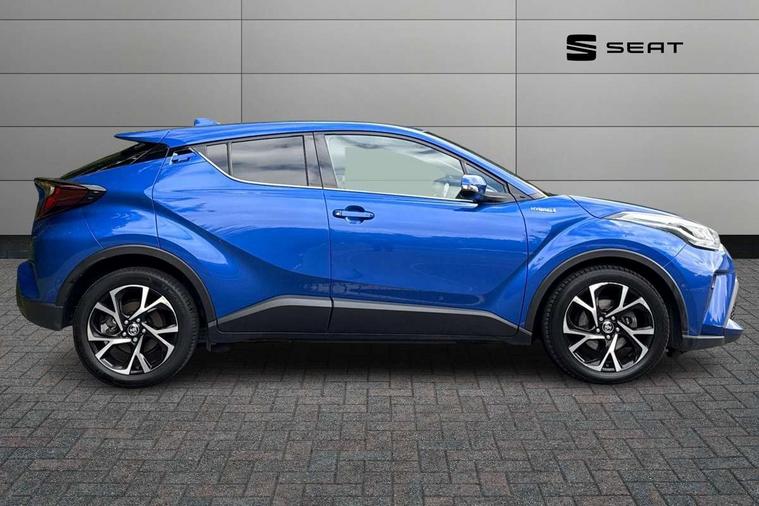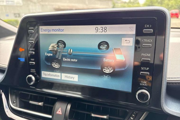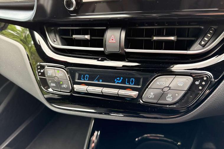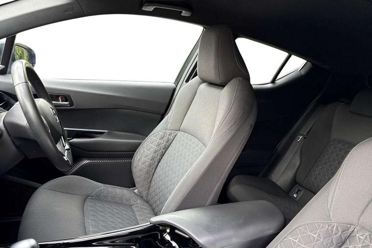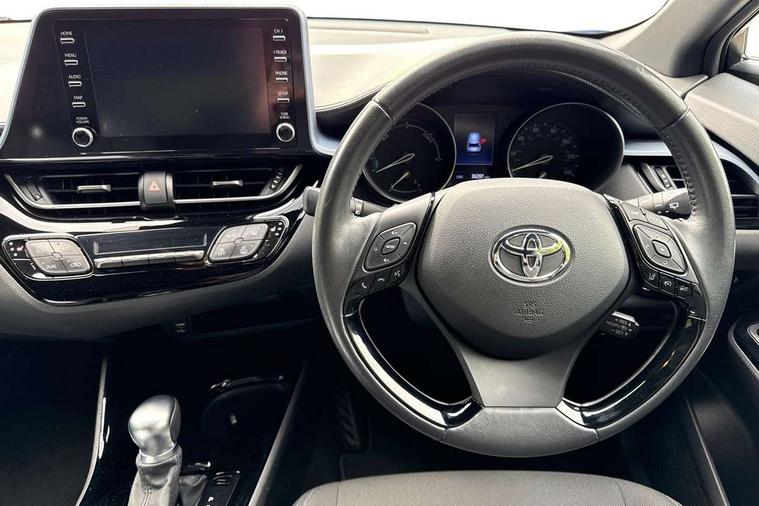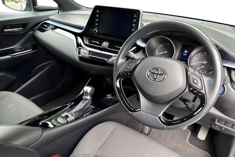 4.2" coloured TFT screen for multi-information display, Adaptive cruise control, Bluetooth connectivity, Electric power steering, Hybrid system indicator, Lane departure alert with steering control, Remote boot door release in cabin, Remote boot door release in key, Reversing camera, Road sign assist - RSA, Simple Intelligent parking assist, Touch 2 Go navigation system, Trip computer, Voice recognition, Vehicle Stability Control (VSC), 6 speakers, Aux connectors + 12V front outlet, DAB Radio (Digital Audio Broadcasting), Toyota touch 2 multimedia system with 8" display, USB connector integrated with radio and CD player, Wi-fi connectivity, Anti-jam protection on power windows, Auto high beam, Auto up and down function on all power windows, Automatic headlights, Automatic headlights cut-off, Automatic wipers with heated folding mirrors, Black and body coloured rear bumper, Black front bumper, Black upper front grille, Body colour door handles, Body colour door mirrors, Boot door release with push button, Electric heated door mirrors, Follow me home headlights, Front and rear power windows, Front fog lights, Front spoiler, Hard tonneau cover, Honeycomb lower front grille, LED daytime running lights, LED front light guide, LED High mounted stop light, LED rear brake lights, LED rear combination lights, Manual headlight levelling, Noise reduction layer on front windows and windscreen, Power adjustable door mirrors, Privacy glass, Rear spoiler, Rear tailgate, Rear window defogger, Rear window wiper, Reflective LED headlights, Shark fin antenna, UV-filter on driver and passenger windows, UV-filter on rear windows, 12v power outlet - front, 3 rear headrests, 3 spoke leather steering wheel, 60/40 split folding rear seat, Adjustable rear headrests, Adjustable speed limiter switch on steering wheel, Assist grips front and centre pillar, Audio and telephone switches on steering wheel, Black front door assist grips, Blue ambient lighting on front cup holders, Blue ambient lighting on front doors, Boot light, Chrome interior door handles, Cloth upholstery, Driver and front passenger personal light, Driver and front passenger Whiplash Injury Lessening seats, Driver and passenger seatback pockets, Dual zone automatic air conditioning, Floor mats, Front cupholders, Front head restraints, Front sports seats, Glovebox with internal light, Heated driver and front passenger seats, Hooks for luggage holding net, Humidifying Nanoe air purifier, Illuminated entry system, Isofix attachments on rear seats, Leather gearshift, Light on driver sun visor, Light on passenger sun visor, Manual telescopic steering wheel, Manual tilt steering wheel, Manually adjustable lumbar support on driver seat, Manually height adjustable driver seat, Manually height adjustable front passenger seat, Manually reclining driver seat, Manually reclining front passenger seat, Manually sliding driver seat, Manually sliding front passenger seat, Microphone on front personal light, Mirror on driver sun visor, Mirror on passenger sun visor, Multimedia switches on steering wheel, Pollen filter, Shopping bag hooks, Slow opening on lower glovebox, Voice recognition switch on steering wheel, Parking sensor pack - C-HR, 16 Disk front wheel brake, 3x3 point rear seatbelts, ABS+EBD+Brake assist, Electronic parking brake, ESP + traction control, Front and rear seatbelt reminder, Front passenger airbag on/off switch, Hill start assist control (HAC), Pre collision system with pedestrian detection, Pre-tensioners and force limiters, Rear door child safety locks, SRS Airbags - Driver + Front passenger, front side, front and rear curtain and driver's knee airbags, Toyota safety sense, Tyre pressure monitoring system, Glass-breaking alarm sensors, Immobiliser, Intrusion alarm, Intrusion sensor, Motion sensor alarm, Power door locks, Power passenger window lock, Remote central locking, Remote door lock, Black lower dashboard, Black lower driver dashboard, Black upper dashboard, Piano black console, Satin grey deco line on upper dashboard, Tyre repair kit,