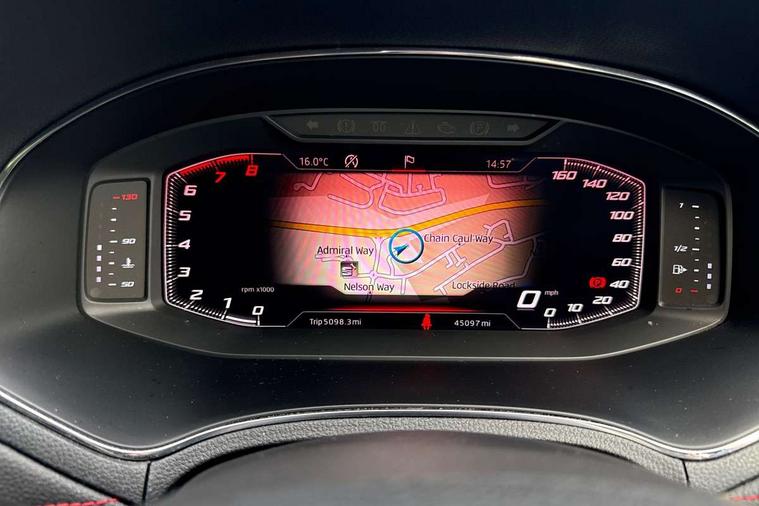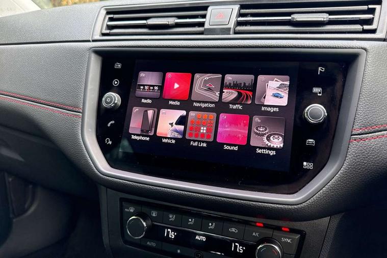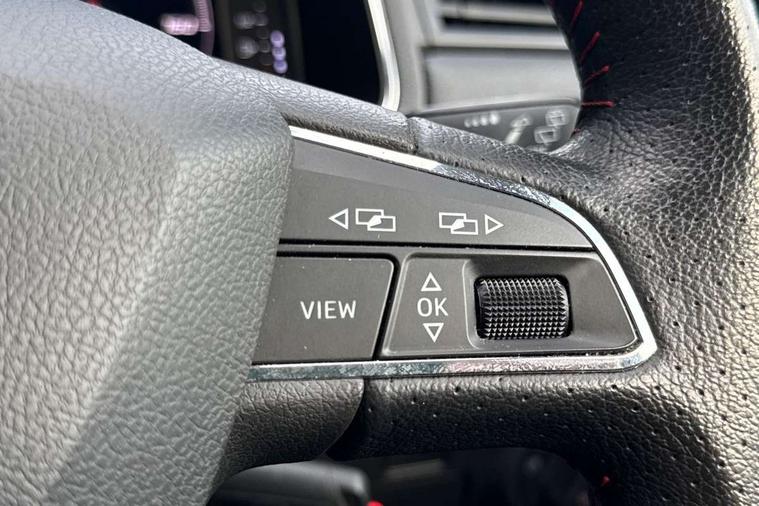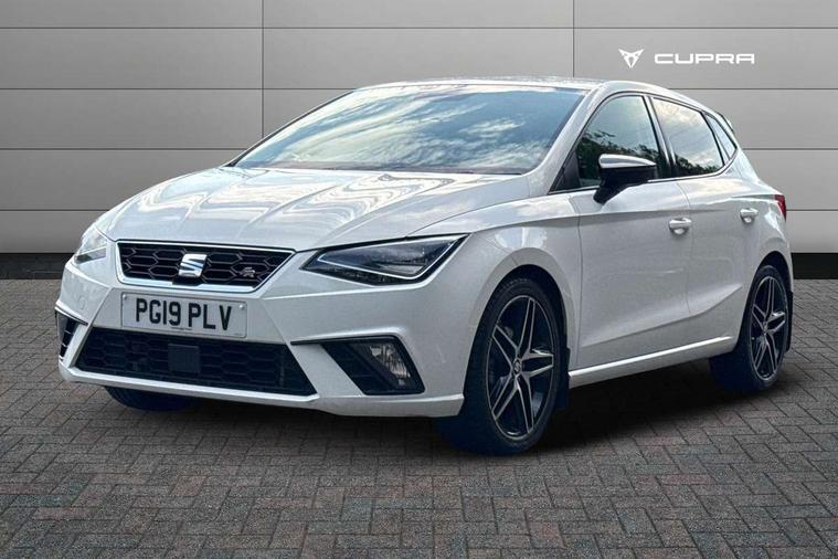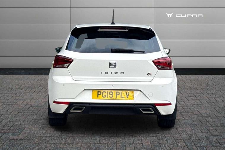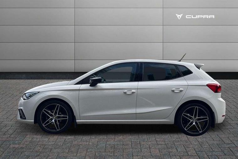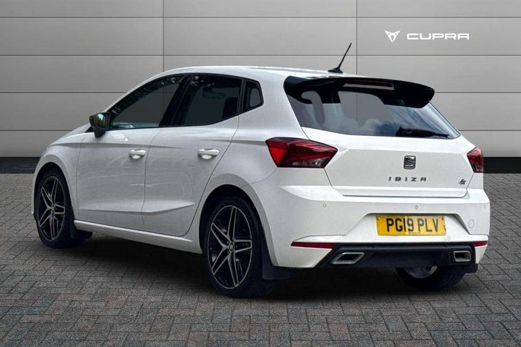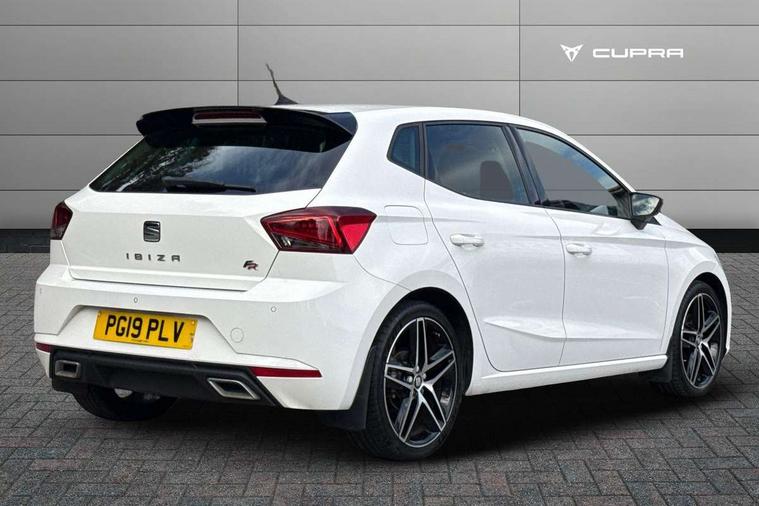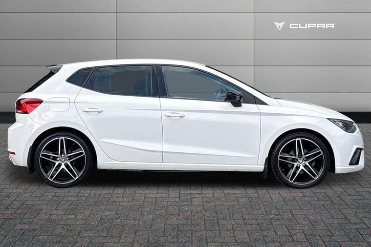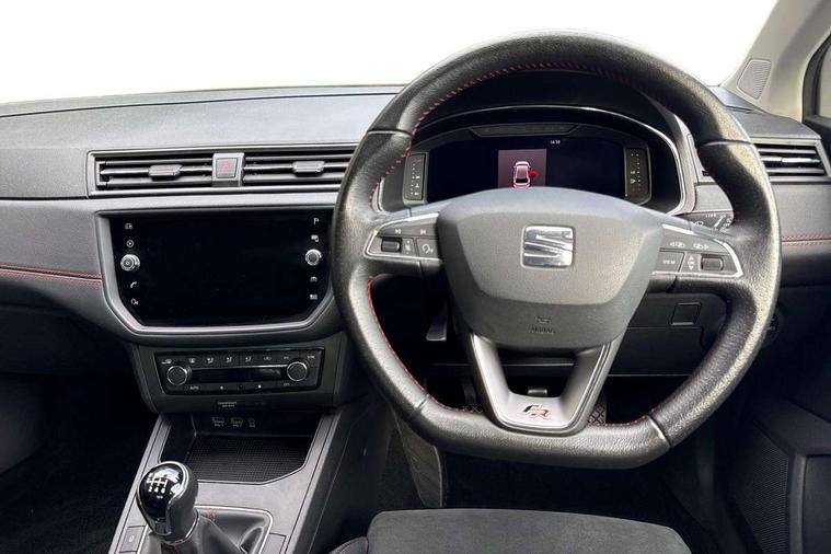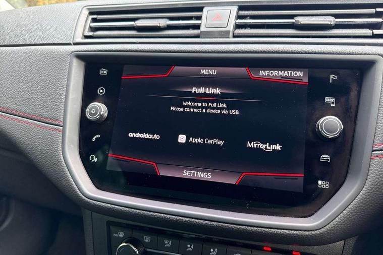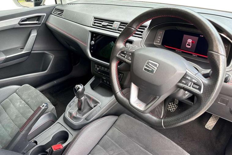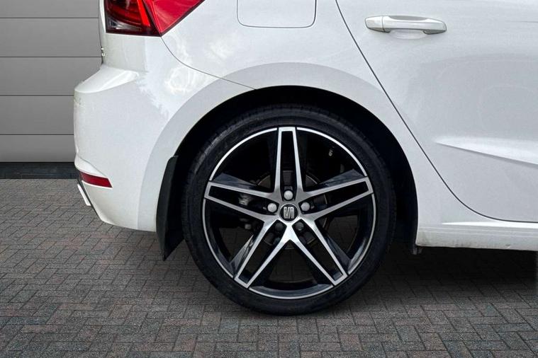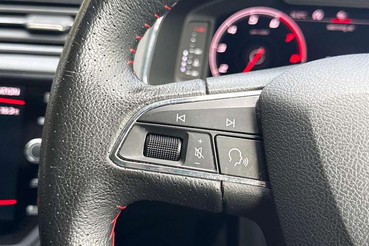 'Lights On' Reminder warning buzzer, Bluetooth Handsfree Phone Connection, Cruise control, Digital clock, Digital cockpit, Full Link Smartphone Integration with Mirror Link, Apple Car Play, Google Android Auto, Low fuel warning light, Outside temperature gauge, Power Steering, Satellite navigation system with 3D mapping, 8" touch screen, voice control and additional USB port, SEAT Drive profile, SEAT logo boot release, Trip computer, Sports suspension, 6 speakers, Auxiliary input socket, CD player, Digital Audio Broadcast (DAB) Tuner, Radio/MP3 player, SD card slot, SEAT USB media cable, Steering wheel mounted controls, USB port, Anti theft roof antenna, Auto dimming rear view mirror, Automatic headlights, Automatic rain sensing wipers, Body colour bumpers, Body colour door handles, Brilliant black door mirrors, Chrome front grille frame, Chrome grille, Coming/leaving home lighting function, Cornering front fog lights, Dark tinted rear windows, Electric folding door mirrors, Electric front windows, Electric headlight adjustment, Electrically adjustable and heated door mirrors, Exclusive FR rear bumper, Full LED headlights, LED daytime running lights, LED tail lights, Rear fog lights, Twin exhaust pipes, 3 rear headrests, 60/40 split folding rear seat, Door and steering wheel ice metal decorative inserts, Driver's sunvisor with ticket holder/vanity mirror, Dual zone climate control, Dust/pollen filter, Flat bottomed perforated leather steering wheel with red stitching and FR logo, Front courtesy lights, Front cupholders x 2, Front reading lights, Gear shift indicator, Glovebox, Height adjustable driver's seat, Height adjustable front/rear head restraints, Height adjustable passenger seat, Height/reach adjust steering wheel, Illuminated boot, Instrument lighting with brightness control, Leather dashboard, Leather handbrake, Microsuede cloth upholstery, Multi-colour ambient interior lighting, Passenger sunvisor, Rear top tether child seat ISOFIX attachment, Sports seats, Full LED headlight pack - Ibiza, 3 point seatbelts on all 3 rear seats, ABS, Active front headrests, Child locks on rear doors, Curtain airbags, Driver/Front Passenger airbags, ESP+EBA, Front assist (AEB), Front passenger airbag deactivation, Front side airbags, Hill hold control, Multi-Collision braking, Rear disc brakes, Seatbelt warning, Tiredness recognition system, Tyre pressure monitoring system, Electronic engine immobiliser, Locking wheel bolts, Remote central locking + deadlocks, Volumetric alarm with back up horn, 18" Performance machined bi-colour alloy wheels,