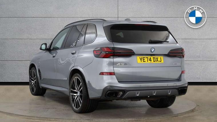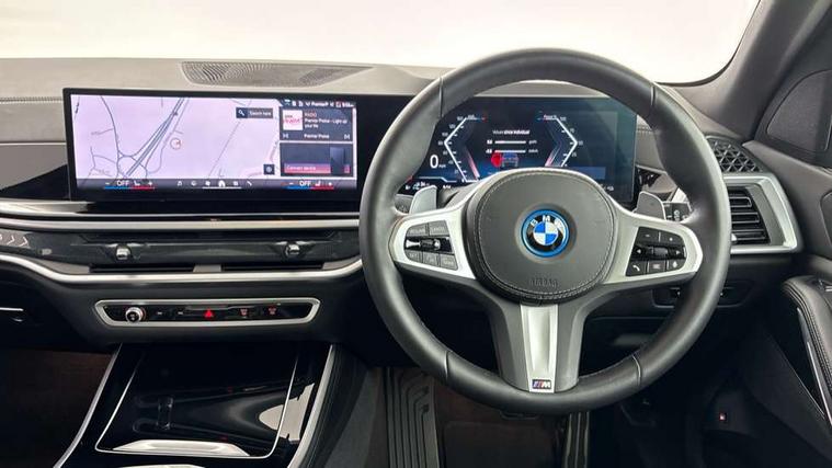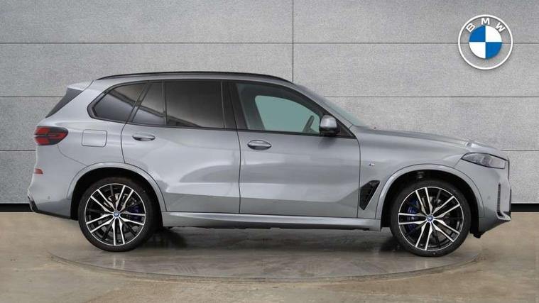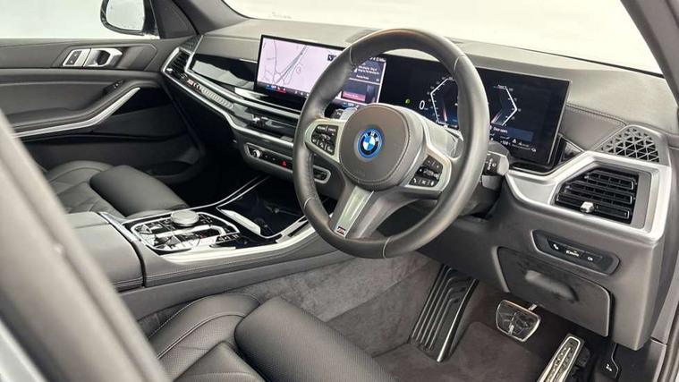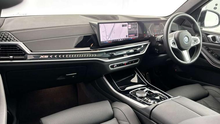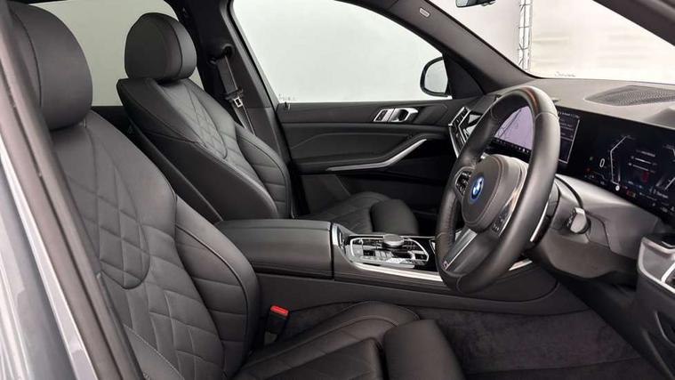 Attentiveness assist, Automatic tailgate operation, BMW ConnectedDrive online services, BMW live cockpit + with curved 12.3 instrument cluster/14.9 central display, nav/Tuner with diversity reception, RDS/4GLTE/remote software upgrade, BMW Teleservices, Condition based service, Cruise control with brake assist, eCall emergency call system, Enhanced bluetooth with wireless charging, Integral active steering, Integrated owner's handbook, PAS, Speed limiter, Wi-Fi hotspot, AC Fast charging preparation (Maximum charging power 11kW), Adaptive 2-axle Front and rear air suspension, Drive performance control with ECO PRO comfort + sport mode, Eight speed steptronic sport automatic transmission and gearshift paddles on the steering wheel, Hi-Fi loudspeaker system, Adaptive LED Headlights, Front and rear electric windows, High beam assistant, High gloss black shadow line roof rails, LED daytime running lights, Rain sensor, Rear side wing doors, Third brake light in rear spoiler, Variable intermittent rear wash/wipe, 12V - Power sockets with 2x centre console and 1x luggage compartment, 3 seat bench in 2nd row, Foldable rear centre armrest with 2 cupholders and storage compartment, Front and rear side armrest integrated into door trim, Headrests for all seats, Luggage compartment separating net, Single front passenger seat, Three spoke sport M leather steering wheel, Velour floormats, Ambient light interior pack - X5, Driving assistant pack with radar based driver assistance system - X5, Expanded exterior mirror pack - X5/X5 M, M aerodynamics pack - X5, 3 rear seatbelts, Acoustic protection for pedestrians, Active protection, Airbags - driver/front passenger, rear and side, first and second row seats head airbags, front passenger seat airbag deactivation + knee airbag, Anti-lock braking system (ABS), Automatic Stability Control (ASC), Brake energy regeneration, Cornering brake control (CBC), Crash sensor activating central locking release, hazard warning lights, fuel cut off, interior lighting + activation of safety battery terminal clamp, DSC - Dynamic Stability Control, Dynamic Traction Control - DTC, Electromechanical parking brake with automatic drive away release and auto hold function, Electronic brake force distribution, Hill start assistant, M Sport blue painted brake calipers with 'M' designation, Mechanical child proof lock on rear doors, Tyre pressure monitoring system, Tyre pressure sensors, Ventilated front and rear disc brakes, Warning triangle and first aid kit, Alarm system, Closing system with central locking, Comfort access system, Locking wheel bolts,