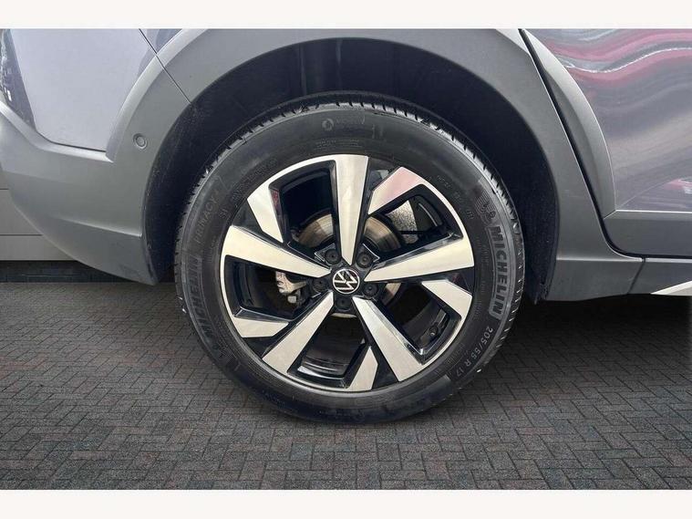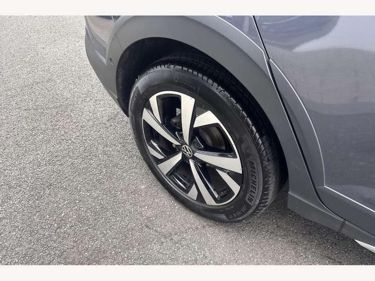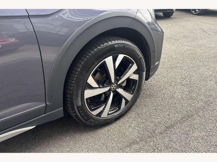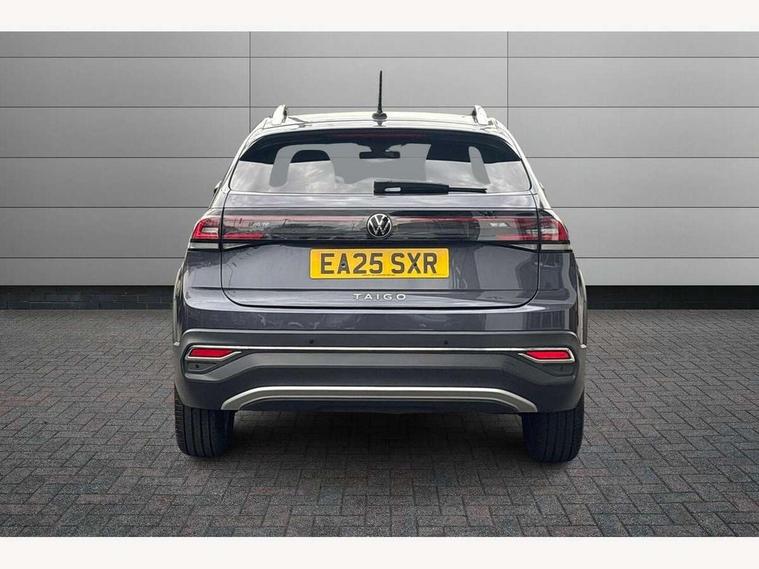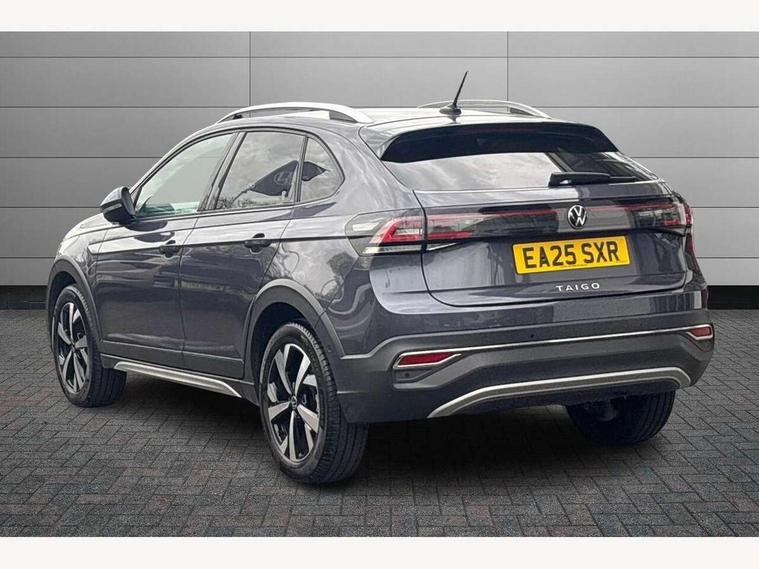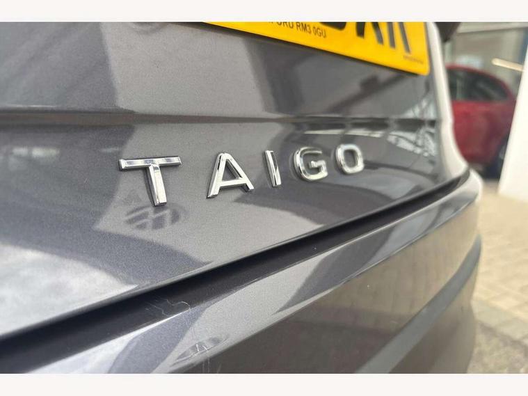 Adaptive cruise control, Advanced driver attention and drowsiness monitor, App-Connect including App-Connect Wireless, Digital cockpit pro - 10.25" high resolution TFT dash display screen with customizable menus and information, e-Call (emergency call), Power Steering, Travel assist including emergency assist, Washer fluid level indicator, Wireless Charging including Bluetooth, Rear shock absorption, Start-stop system with battery regeneration (recuperation - energy recovery during braking), Digital radio reception (DAB+), Diversity antenna for FM reception, WeConnect plus, Ambient lighting with logo projection, Aspherical driver's exterior mirror, Auto headlights, Body coloured bumpers and radiator grille with chrome trim and front fog lamps with chrome bezel, Dual chrome twin tailpipes on left and right, Electric windows, External USB type C socket and charging sockets, LED rear combination lamp, LED third brake light, Left convex exterior mirror, Power folding adjustable/heated exterior mirrors and front passenger exterior mirror lowering function, Rear fog light on one side, reversing light on both sides, Rear side wing doors, Rear wash/wipe with intermittent wipe setting, 12V socket in centre console, 2 front reading lights, 3 rear head restraints, 3 seat bench in 2nd row, Air care climatronic air conditoning system with active combination filter and 2-zone temperature control, Black carpets, Child seat anchor for child seat system i-Size, 2x top tether and child seat anchor in front on front passenger side, Chrome bezel for instrument cluster, vents, door handles + gear shift, Driver and front passenger seat height adjustment, Front + rear carpet mats, Front centre armrest, Front footwell illumination, Front sports comfort seats, Height and reach adjustable steering wheel, Interior ambient lighting and surround lighting, Leather trimmed gear knob, Leather wrapped multifunction steering wheel, Luggage compartment floor, Luggage compartment light, Lumbar support for driver's and front passengers seat, Single front passenger seat, Split folding backrest with centre armrest and unsplit rear seat bench, Storage compartment under front seats, Sun visors with illuminated vanity mirrors, Chrome Package - Taigo, Drivers assistance pack - Taigo, IQ.LIGHT - LED matrix headlights pack - Taigo, Light and sight pack - Taigo, 2 x 3-point seatbelts/outer rear seats with ECE label, 3-point seat belts in front with pretensioner and height adjustment, 3-point seatbelt for centre rear seat, Adaptive driver and front passenger airbags with passenger airbag deactivation function, Driver and front passenger safety-optimised head restraints, Electronic stability control, Extended and predictive pedestrian/ cyclist protection, Front and rear disc brakes, Front curtain and side airbags with center airbag, Hill start assist, Manual rear child locks, Single tone horn, Tyre pressure loss indicator, Anti-theft alarm system with interior monitoring, backup horn, and towing protection, Low rolling resistance tyres,