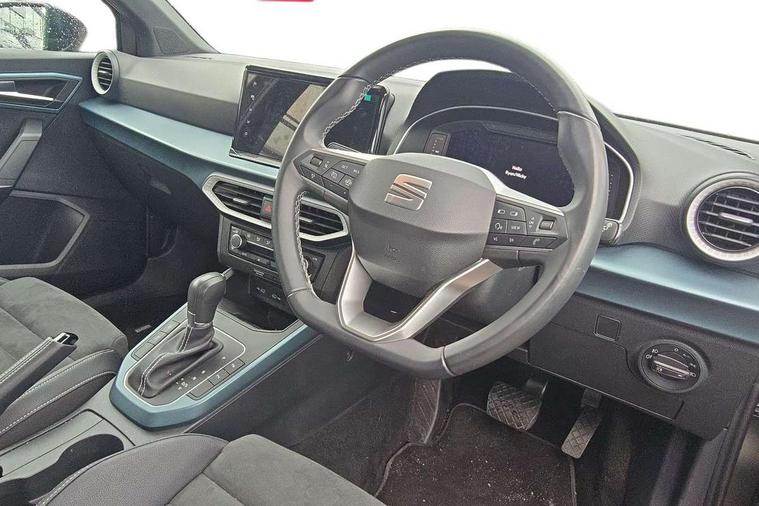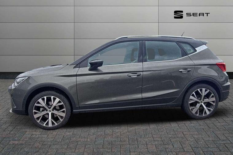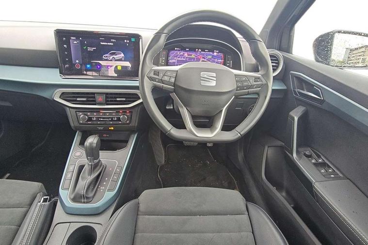 'Lights On' Reminder warning buzzer, 10" Digital cockpit, Digital clock, E-call, Electric speed sensitive power steering, Front parking sensor, Full link smartphone integration with mirror link, wireless apple carplay, Google android auto + USB Type C cable for apple and android devices, Lane keeping system, Low fuel warning light, Outside temperature display, Park assist system, Rear view camera, RPM counter, Trip computer, Wireless phone charger, 6 speakers, 9.2" colour touchscreen with navigation system, voice control and USB port (type c), Bluetooth interface for hands free and audio streaming, DAB digital radio and AM/FM radio, Steering wheel mounted audio controls, Anti theft roof antenna, Auto dimming interior rear view mirror, Automatic activation of hazard warning lights, Body coloured bumpers, Body coloured door handle inserts, Chrome roof rails and window surrounds, Electric front/rear windows, Electrically adjustable, heated and folding door mirrors, Front fog lights with cornering function and rear fog light, FULL LED automatic headlights with dynamic headlight range control, coming and leaving home, LED daytime running lights, Hidden exhaust pipe, LED rear tail lights and licence plate lights, Protective side mouldings, Rain sensing wipers, Rear side wing doors, Rear spoiler, Rear window wash/wipe, Roof colour door mirrors, Third brake light, Visible VIN plate, 2 cupholders, 3 seat bench in 2nd row, 60/40 split folding rear seat, Aircare filter, Black interior roof, Double boot floor, Driver sunvisor with covered mirror + card holder, Dual zone climate control, Front comfort seats, Front courtesy light with front reading lights, Front seat back storage pockets, Gear shift indicator, Heated front seats, Height adjustable front seats, Height/reach adjustable steering column, Illuminated air vent surrounds, Illuminated boot, Instrument lighting with brightness control, Interior ambient lighting, Interior light in footwell, central console and door panel, ISOFIX points in outer rear seats with top tether anchorage points, Leather steering wheel/gear knob/handbrake, Microsuede cloth upholstery, Passenger sunvisor with vanity mirror, Potentiometer, Single front passenger seat, Storage net on centre console, Two front and three rear height adjustable headrests, Interior chrome pack - Arona, Safe and driving pack (S) - Arona, Safety and driving pack (M) - Arona, Storage pack - Arona, 3 point seatbelts on all rear seats, ABS, Active front headrests, Child locks on rear doors, Driver and front passenger airbags with front passenger airbag de activation, front side and curtain airbags, Emergency Brake Assist (EBA) and front assist, Front and rear seatbelt reminder, Hill hold control, Multi-Collision braking, Tiredness recognition system, Traction control, Tyre pressure monitoring system, Alarm with back up horn with tow away protection, Deadlock, Electronic engine immobiliser, KESSY Keyless entry and go, Locking wheel bolts, Remote central locking, Titan black dashboard, 18" Performance Nuclear grey alloy wheels,
