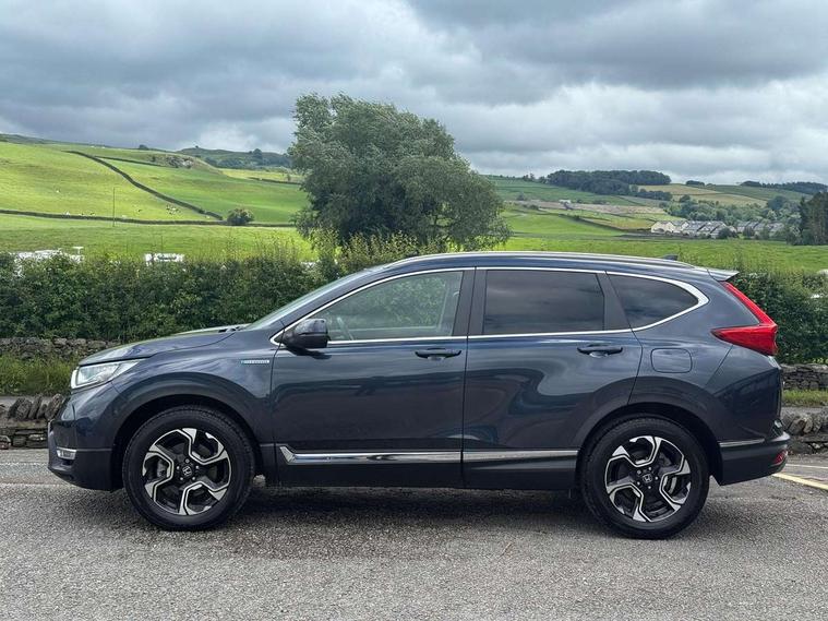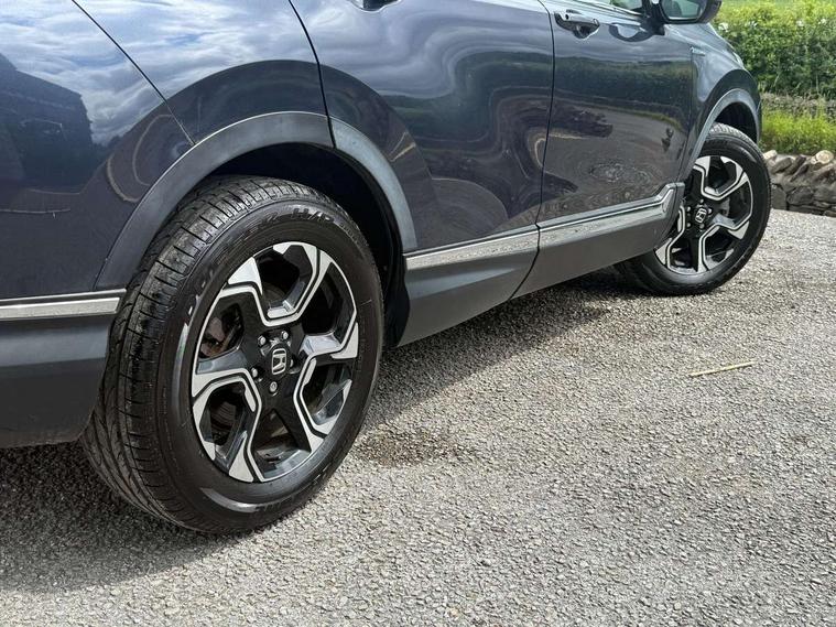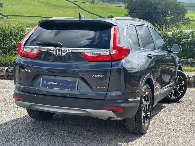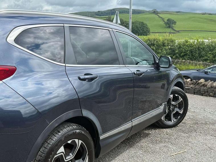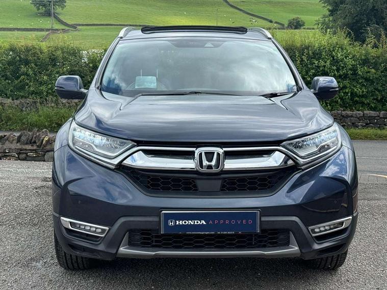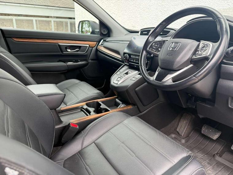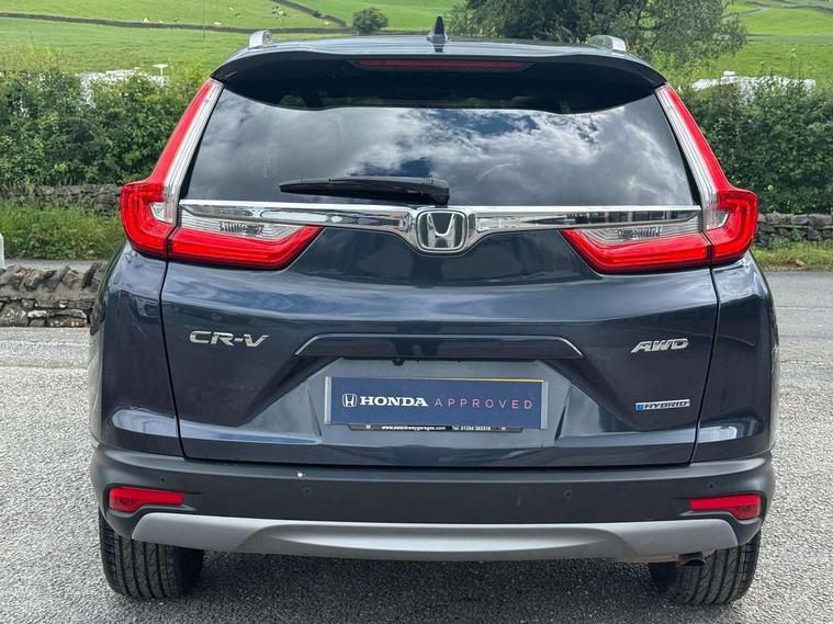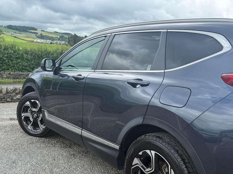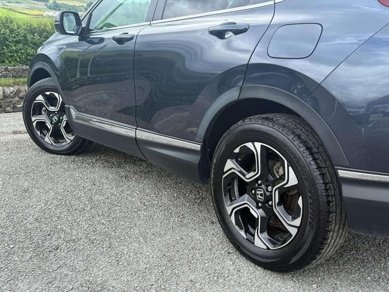 Adaptive cruise control, Agile handling assist, BLIS (Blind Spot Information System) with dual power heated blind spot mirrors, Bluetooth hands free telephone connection, Economy mode, Electric power steering, Emergency stop signalling system, Forward collision warning, Front and rear parking sensors, Hands free tailgate, Head up Display, Honda CONNECT with GARMIN Navigation + 7" touchscreen, DAB radio, Apple CarPlay, Android Auto, Aha app integration and internet browsing, Intelligent multi info display, Lane departure warning system, Lane keep assist system, Low speed following, Rear view camera, Road departure mitigation, Speed limiter, Traffic sign recognition, Vehicle stability assist, 2 USB sockets in rear, 2x USB sockets in front, 8 Speakers, DAB Digital radio, Steering wheel mounted controls, Subwoofer, Aspheric door mirrors, Auto dimming rear view mirror, Automatic headlights with dusk sensor, Body colour bumpers, Body colour door handles, Cornering light, Door mirrors tilt when reversing, Electric front windows/one touch facility, Electric rear windows + one touch facility, Electrically adjustable and heated door mirrors, Electrically retractable door mirrors, Front windscreen de-icer, High beam assist, LED daytime running lights, LED front fog lights, LED Headlights, LED rear lights, Panoramic opening glass sunroof, Rain sensor, Rear privacy glass, Rear wiper, Roof rails, Shark fin roof aerial, Welcome home function, 60/40 split folding rear seat, 8 way electrically adjustable drivers seat + mirror memory, Accessory sockets, Ambient interior lighting, Ambient light in roof, AWD emblem rear, Cargo hooks, Courtesy lights, Driver's electric adjustable lumbar support, Driver/passenger front seatback pockets, Driver/passenger sunvisors with illuminated vanity mirrors, Dual zone automatic climate control, Electric lumbar adjustment on passenger's seat, Footwell ambient lighting, Front centre armrest, Front map lights, Front passenger seat height adjust, Heated front seats, Heated rear seats, Heated steering wheel, Hybrid emblem, Illuminated glovebox, Instrument panel with garnish wood film, Isofix child seat preparation, Leather steering wheel, Leather upholstery, Paddle shift controls, Rear air vents, Rear centre armrest, Rear headrests, Rear reading lights, Silver interior door handles, Sunglasses holder with mirror, Tilt/telescopic adjustable steering wheel, Tonneau cover, Trunk light, 5 x 3 point seatbelts, ABS/EBD, Anti-whiplash front headrests, Brake assist function, Collision mitigation braking system, Deflation detection system, Driver airbag, Electronic parking brake with auto hold, Front and rear curtain airbags, Front side airbags, Hill start assist, Passenger airbag deactivate switch, Honda super locks, Immobiliser, Remote keyless entry, Security alarm, Ultrasonic sensor and tilt sensor, Tyre repair kit,