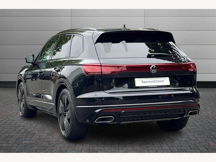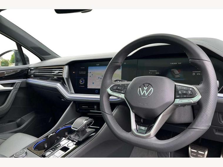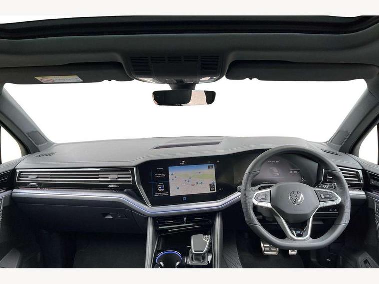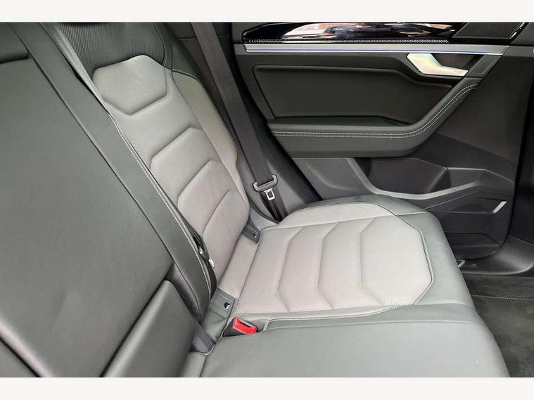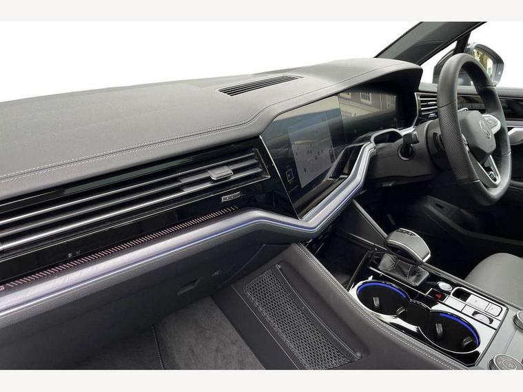 15" Screen Top infotainment system Premium (MIB3), Adaptive cruise control, Advanced driver attention and drowsiness monitor, Driver profile selection, Dynamic road sign display, E-Sim card for online connectivity, eCall emergency system, Innovision cockpit, Intelligent park assist, Mobile phone interface with inductive charging, Multi-colour Active Info display, Park Assist - Sensor controlled steering aid to assist parallel or bay parking, PAS, Warning signal and warning light for front and rear seatbelts not fastened, Wireless app connect, Adaptive chassis control, DAB Digital radio, Diversity antenna for AM/ FM reception, We Connect and We Connect Plus functionality, Automatic coming/leaving home lighting function, Automatic headlights, Black door mirrors, Black style comfort bumpers, Dynamic headlight range control with dynamic cornering light, Electric front tilt/slide panoramic sunroof and fixed rear sunroof, Electrically power adjustable, heated, folding, auto dimming, front passenger exterior door mirror lowering function, External USB type C socket and charging sockets, Gloss black roof rails, HD LED Matrix beam plus digital headlight projection with variable light distribution, Headlight washers, Highway light, LED 3rd brake light, LED daytime running lights, LED rear combination lamp with variable lighting functions and special styling, Poor weather light, Rain sensor, Rear exhaust tailpipe, Rear fog light with back up light on both sides, Rear light bar and illuminated logo, Rear side wing doors, Rear wiper, Stainless steel door sill protection, 12V socket in centre console, 3 rear headrests, 3 seat bench in 2nd row, 4 zone climate control, Airbag label on sun visor and B-pillar, Brushed stainless steel pedals, Double sun visors with illuminated vanity mirrors, Front + rear carpet mats, Front centre armrest, Leather wrapped multifunction sports steering wheel, heated, with touch control and shift paddles, Mechanical rear seat release, Power adjustable lumbar support in front, Power seats in front, right side with memory features and seat cushion depth adjustment, Rear seat backrest and split folding with center armrest, Single front passenger seat, Memory pack plus - Touareg, 3 point seatbelts, outer rear with ECE lable, ABS, Child locks on rear doors, Curtain airbags, Driver and front passenger safety-optimised head restraints, Driver/Front Passenger airbags, Extended pedestrian protection measures, Front assist, Front seat side impact airbags, Generative braking with start and stop system, Height adjustable 3 point front seatbelts with pre tensioners, Passenger airbag deactivate switch, Three 3 point rear seatbelts, Two tone horn, Tyre pressure loss indicator, Warning triangle and first aid kit, Alarm system with interior protection, Easy open and close sensor controlled luggage compartment opening and closing with remote unlocking, Keyless Access Keyless locking and starting system with SAFELOCK, Aluminium decorative inserts, Black decorative trims, Gloss black decorative inserts in centre console, Tool kit,
