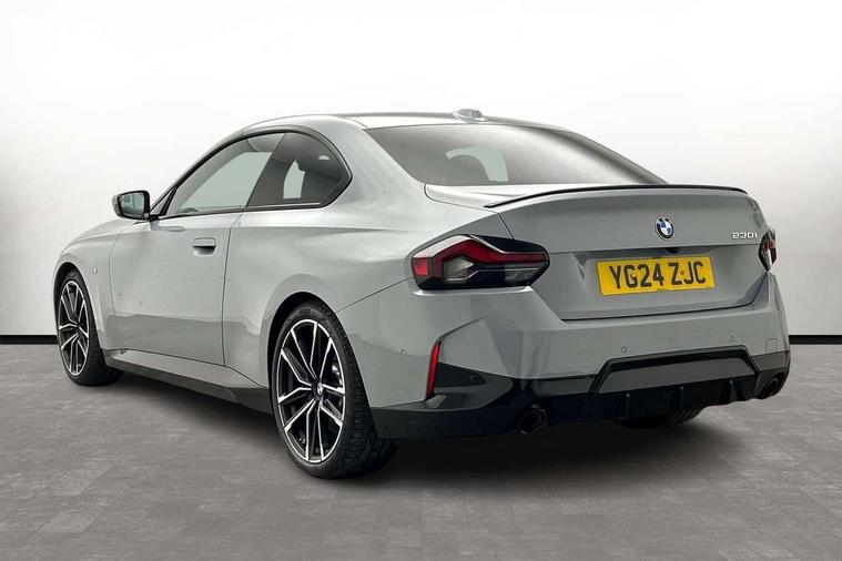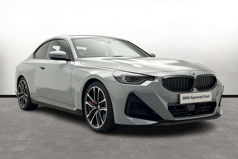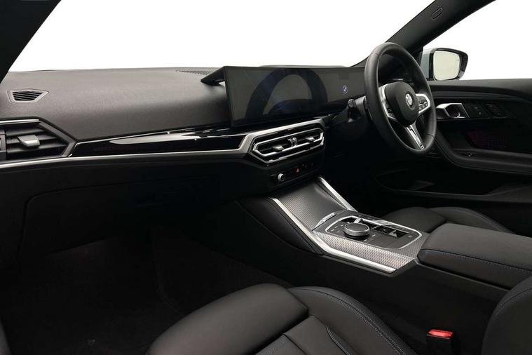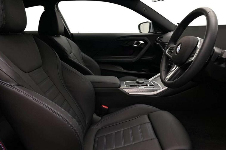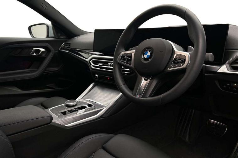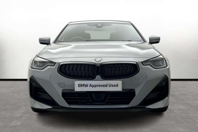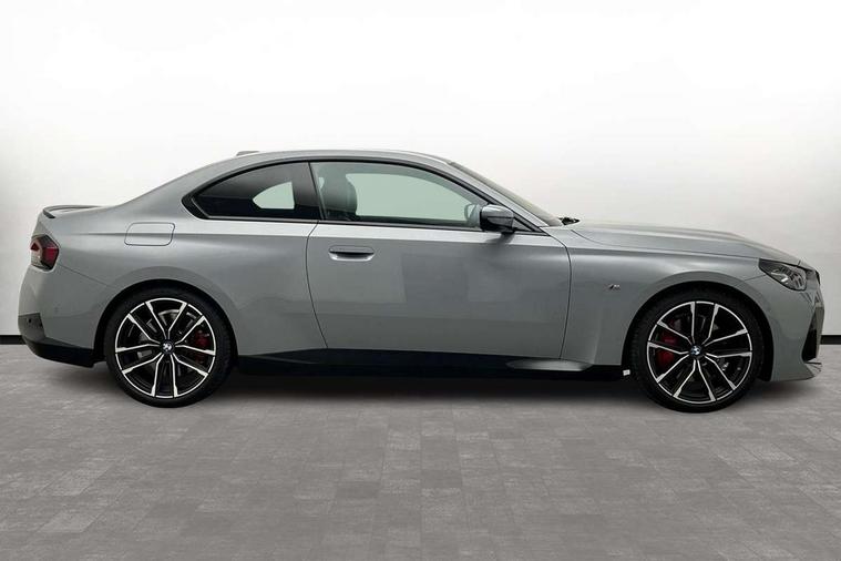 2 USB connections for charging and transferring data, Active guard plus, Attentiveness assist, Bluetooth with USB, BMW ConnectedDrive online services, BMW Intelligent Personal Assistant, BMW Live cockpit plus, BMW operating system 8 with variable, configurable widgets display information in real time, BMW Teleservices, Check Control warning system for monitoring of lights and door/luggage compartment open warning, Direct selection buttons, Drive off assistant, Eco pro mode, Electric power steering, eSim with 5G connectivity, Front and rear parking sensors, iDrive controller with turn and press function, Integrated owners handbook, Intelligent functions, Oil sensor for level and grade, Optimum shift indicator, Personal Profile, Touch operation on control display, Variable sport steering, Widescreen multi-media display, WiFi interface for wireless connection of mobile terminal devices, Aluminium lightweight construction, Balancer shaft, BMW TwinPower Turbo four-cylinder petrol engine, Double VANOS, Drive performance control with ECO PRO comfort + sport mode, Electronic differential lock, High precision injection, M sport suspension, Petrol Particulate Filter, Sport automatic steptronic transmission with gearshift paddles, manual gearshift time display, launch control, coasting idle ECO PRO/COMFORT modes, Twin scroll turbocharger with Valvetronic, DAB tuner, Acoustic windscreen wipers for reduced driving noise, Automatic windscreen wipers and automatic headlight, Body colour door handles flush with door surface, Body colour door mirrors, Body colour front and rear bumpers, Daytime running lights, Electric windows - front and rear, with open/close fingertip control and trap release, Exhaust tailpipes x2 - 90mm in left and right, Fading support, Front and rear bumper system with replaceable deformation elements, Front door sill finishers in black plastic with BMW designation, Front windscreen wipers with integrated washer jets, Green tinted heat protection glazing, High beam assistant, High gloss black sill, bumper trim sides and diffuser insert, High level third brake light, Indicators integrated int mirror housing, Interior rear-view mirror with automatic anti-dazzle function, LED registration plate light, LED technology rear tail lights, brake lights and turn indicators, Lightweight engineering, M high gloss shadowline, Model designation on right side of tailgate, One piece kidney grille with hight gloss chrome surround, Rear boot, Rear fog lights, Reversing light in rear light cluster, Shark fin antenna, Single part LED rear lights with smoked glass components, Trailer stabilisation logic, Visible VIN plate, 12V power socket in front centre console with blanking plug, 2 cupholders in front centre console, 2 zone automatic air conditioning, Ambient lighting, Compartment in front of cupholder, Conditioned based service, English handbook, Folding rear seat head rests, Front and rear side armrests integrated into door trim, Front armrest, Front door pockets, Front head restraints, Heated front seats, Illuminated glove compartment with separate small compartment, M headliner Anthracite, M sport leather steering wheel, Manually adjustment steering wheel column, Rear seat backrest with manual 40:20:40 split folding, Rear seat centre foldable armrest with integrated cup holder, Single front passenger seat, Storage compartment between rear seats, Storage tray and compartment with cover in centre console, Sun visors with vanity mirrors and insert tab, Through loading system with 40/20/40 split folding 2 rear seat in 2nd row, Velour floor mats, Additional storage compartment pack without USB - 2 Series Coupe, Connected pack professional - 2 Series Coupe, M Sport exterior styling aerodynamics pack - 2 Series Coupe, 2 tone horn, Anti lock braking system (ABS) with cornering brake control, Automatic Stability Control (ASC), BMW emergency call, Brake drying, Child seat ISOFIX attachment for the two outer rear seats, Crash sensor activating of airbags, Unlocking doors, hazard warning lights, fuel cut off, interior lighting+activation of safety battery terminal clamp, Deactivation of fuel pump in the event of a crash, Driver and front passenger airbags, Driver and front passenger side airbags, integrated in the door side seat backrest bolsters for all seat variants, Dynamic brake control, Dynamic stability control + (DSC+), Dynamic Traction Control - DTC, Electrically operated hand brake including automatic hold function and automatic release when driving off, Front and rear disc brakes, Front centre airbag between driver and front passenger seats, Front passenger airbag deactivation, Head airbags for all 4 outer seats, PC iBrake (Post crash approach control warning with light braking function), Seat belt security check for driver and front passenger, Seatbelt warning, Side impact protection, Three point seat belts on 4 seats including front belt stopper, pyrotechnic belt tensioners and belt force limiters, Tyre pressure monitoring system, Warning triangle and first aid kit, Alarm system (Thatcham 1) with remote control and electronic engine immobiliser, Central locking switch for all doors, fuel filler cap and luggage compartment, Deadlocking function system to all doors, Drive away locking system on all doors and luggage compartment, Locking wheel bolts, Start/Stop button (illuminated) in centre console with keyless engine start and Auto Start-Stop deactivation button, Two remote control key with integrated key - one button for open and close doors/fuel flap/tailgate and separate button for unlock luggage compartment, Electrically powered 12V compressor, Reduced rolling resistance tyres, Tyre repair kit,