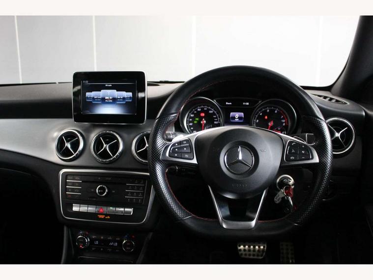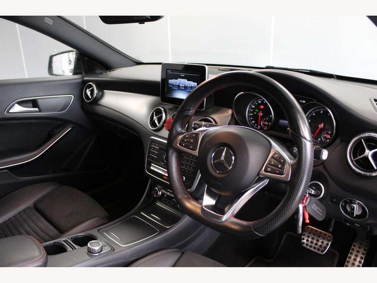 Active park assist with parktronic system, Attention assist, Bluetooth system, Collision prevention assist plus, Direct steering, DYNAMIC SELECT with a choice of driving modes (ECO, Comfort, Sport, Sport+ and Individual), Low fluid warning light, Outside temperature gauge, Service indicator (ASSYST), Smartphone integration with Apple CarPlay and Android auto, Trip computer, Lowered comfort suspension, Media interface, Mercedes Audio 20 radio/single CD, USB connection, Adaptive brake lights, AMG body styling, Automatic headlights, Automatic rain sensing wipers, Black high gloss beltline, Body colour bumpers, Body colour door handles, Body colour side skirt, Diamond grille with pins in chrome and single louvre in high-gloss black with chrome inserts, Dual stainless steel exhaust tailpipes, Electric adjustable heated door mirrors, Front and rear electric windows, Heated rear window with timer, High gloss black door mirror housing, LED headlights with LED daytime running lights, LED tail lights, Privacy glass, 1/3 to 2/3 split folding rear seats, 3 spoke flat bottomed leather steering wheel, Auto Mercedes-Benz child seat recognition sensor, Black roof lining, Door sill illumination, Dual zone climate control, Front centre armrest with storage box, Front footwell lights, Front head restraints, Front sports seats, Gearshift paddles, Height/reach adjustable steering column, Illuminated glovebox, Illuminated storage compartment, Isofix rear child seat fastenings, Load securing rings in luggage compartment, Multifunction steering wheel, Reading lights, Rear footwell lights, Rear head restraints, Sports pedals with rubber studs, Sunvisors with illuminated vanity mirrors, Twin console mounted cup holders, 3x3 point rear seatbelts, ABS with Brake Assist, Adaptive brake system, Black brake calipers, Child proof door locks, Crash responsive emergency lighting, Drivers knee airbag, Dual stage driver/passenger airbags, Electronic parking brake, ESP with ASR, Front and rear seatbelt reminder, Front passenger airbag deactivation, Front side airbags, Hill start assist, Tyre pressure monitoring system, Warning triangle and first aid kit, Window airbags, Anti theft alarm system, Immobiliser, Remote central locking, Chrome air vent surrounds, Light aluminium with longitudinal grain interior trim, Tirefit,