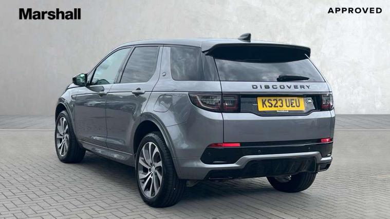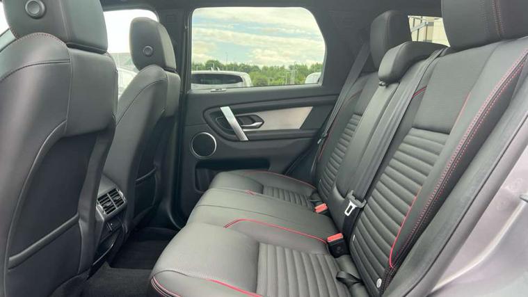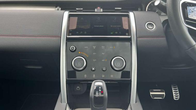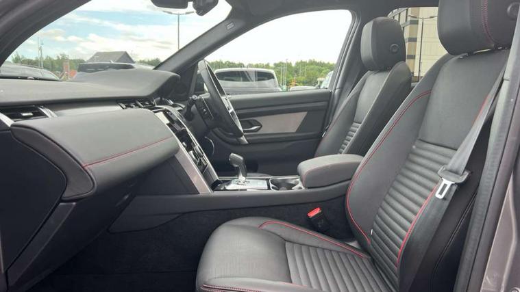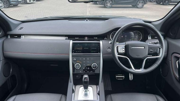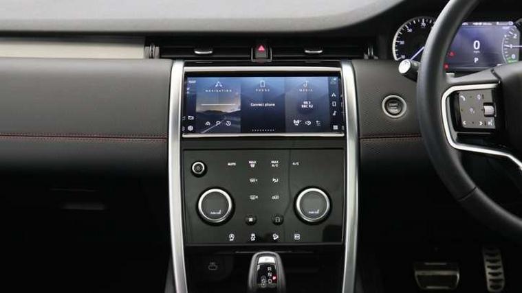 10" touch screen, Adaptive cruise control, Android Auto, Apple CarPlay, Driver condition monitor, eCall emergency call system, Front and rear parking aid, InControl remote premium, Lane keep assist, Locking fuel flap, PAS, Pivi Pro connected navigation system with upgraded Infotainment, Powered tailgate/boot lid, Push button start, Service interval indicator, Traffic sign recognition with adaptive speed limiter, Trip computer, Wade Sensing, 7 kW onboard charger, All terrain progress control, Coil suspension system, Dynamic stability control, Home charging cable, Public charging cable, Terrain Response 2, Bluetooth connectivity including audio streaming, Digital Audio Broadcast radio-DAB, Steering wheel mounted audio controls, 3rd brake light, Automatic headlights, ClearSight interior rear view mirror, Electric front/rear windows, Electric heated/power fold door mirrors with approach lights and auto dimming driver side, Front and rear recovery eyes, Heated rear window, Heated windscreen including heated washer jets, P300e badge, R Dynamic badge, Rain sensing windscreen wipers, Rear fog lights, Rear side wing doors, Rear wing door, Rear wiper, 5 standard seating configuration, Bright metal pedals, Centre console with armrest, Footwell lights, Front and rear grab handles, Front passenger isofix child seat attachment, Loadspace cover, Loadspace light, Overhead lighting console, Overhead stowage for sunglasses, Rear headrests, Satin chrome gearshift paddles, Sunvisors with illuminated vanity mirrors, Tilt/reach adjustable steering wheel, Black exterior pack - Discovery sport R-Dynamic SE/HSE, Online pack with data plan - Discovery, 3 point seatbelts on all seats, ABS, Brake hold function, Child locks on rear doors, Collision mitigation braking system, Cornering brake control (CBC), Driver/Front Passenger airbags, Drivers knee airbag, Electronic brake force distribution, Electronic parking brake, Emergency brake assist, ESP + traction control, Hill descent control, Hill launch assist, Pedestrian airbag system, Rear seat ISOFIX, Roll stability control, Side and curtain airbags for front and 2nd row seats, Trailer stability control, Tyre pressure monitoring system, Battery Back Up System (BBUS) with tilt sensor, Global lock and unlock switch on driver door, Intrusion sensor, Keyless entry, Locking wheel nuts, Centre stack rails in noble chrome,