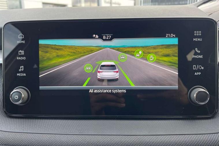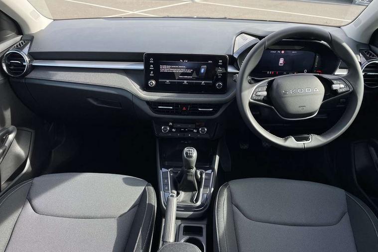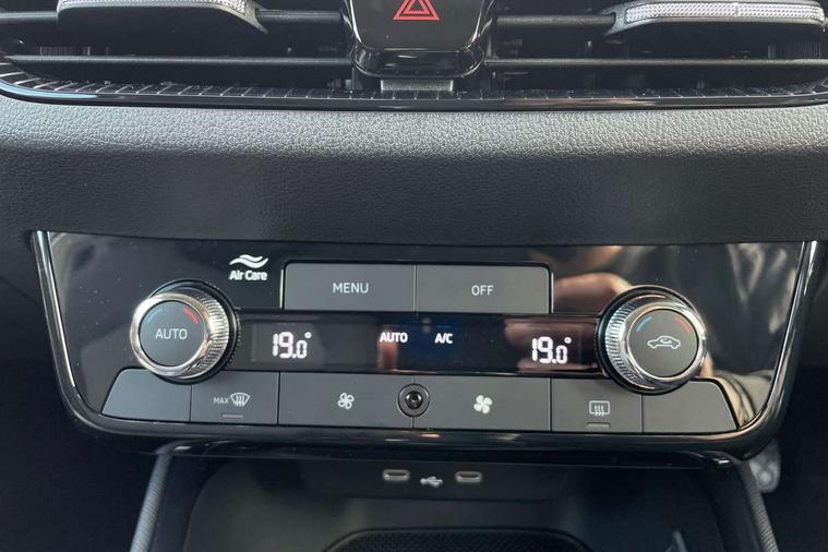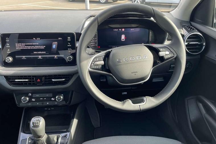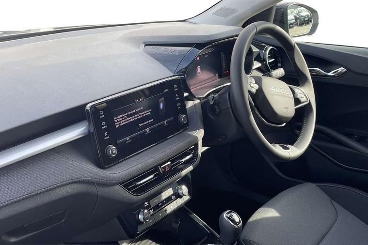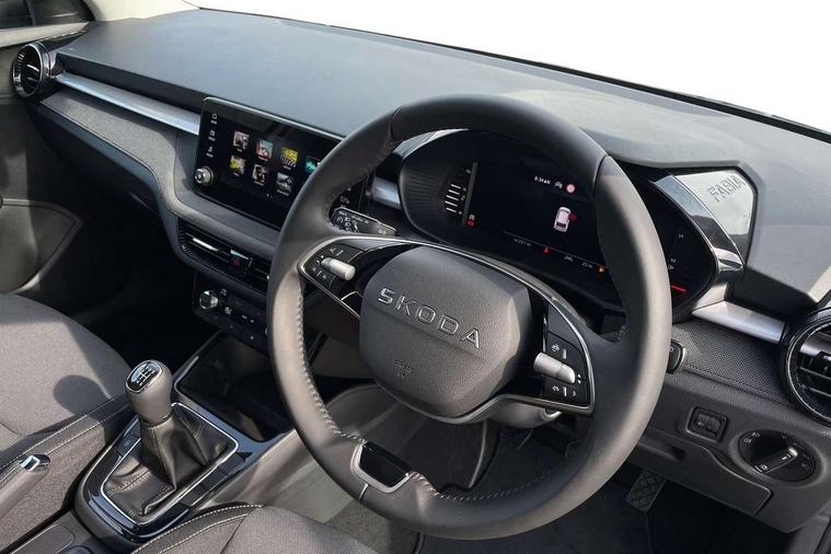 Advanced driver attention and drowsiness monitor, Bluetooth connection, Electromechanical power steering, Exterior temperature gauge, Service interval indicator, Traffic sign recognition, Virtual cockpit with 10.25" colour display, Wireless SmartLink for Apple CarPlay and Android Auto, 6 Speakers (4 in front and 2 in rear), Auxiliary socket for external MP3 player, DAB digital radio reception, Auto dimming rear view mirror, Body coloured bumpers, Door mirror integrated indicators, Front and rear electric windows, Front window wiper intermittent control, Headlight range control - Automatic, Ice scraper in fuel cap, LED daytime running lights with coming and leaving home feature, LED rear lights, Privacy glass, Rear LED fog light, Rear side wing doors, Rear window wiper with washing nozzles, Roof mounted spoiler, SKODA tailgate lettering in chrome, Third brake light, Unique dark chrome design logo on alloy wheels, 2 reading lights in front and 2 reading lights in rear, 3 rear headrests, Backrest split and folding, Central console with removable cup holder and storage box, Chrome handbrake release button, Dual zone air conditioning with climatronic electronic control, Fabric upholstery, Front centre armrest, Gearshift knob/handle in leather, Grain satin black interior door handles, Hand brake lever handle in leather, Height adjustable front headrests, Height adjustable front seats, Height adjustable steering wheel, ISOFIX and TopTether anchorage points to the outer rear seats, ISOFIX and TopTether on the front passenger seat, Luggage compartment lighting, Manually adjustable lumbar support in front seats, Pollen filter, Rear seat bench unsplit, Single front passenger seat, Skoda lettering on steering wheel, Storm grey headlining, Sun visors with mirror and airbag label on passenger side, Textile floor mats, Ticket holder, Umbrella in drivers door, 3-point height adjustable front seats belts with pretensioner and force limiter, Automatic warning lights in case of crash, Driver and passengers airbag with switch off function, e-Call+, ESC including ABS, MSR, ASR, EDS, HBA and XDS, Front and rear seat belt warning, FRONT ASSIST (AEB City and AEB Inter Urban), Front side airbags, Head airbags, One tone horn, Pedestrian protection, Three rear 3-points safety seat belts with pretensioner and force limiter including stop function for outer rear seat belts, Tyre pressure monitoring system, Anti-theft alarm system including immobiliser, interior monitoring, backup horn, and towing protection, Central locking with radio remote control, interior controls, SAFE function and 2 foldable keys, Black painted air vents, Grain satin black central console cover, Metallic grey upper decorative trim, Satin black door and side trim panel in front, Textile Kota grey lower decorative inserts, Anti-theft wheel bolts protection, Super-low rolling resistance tyres,