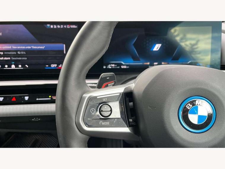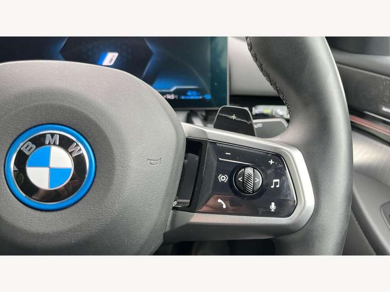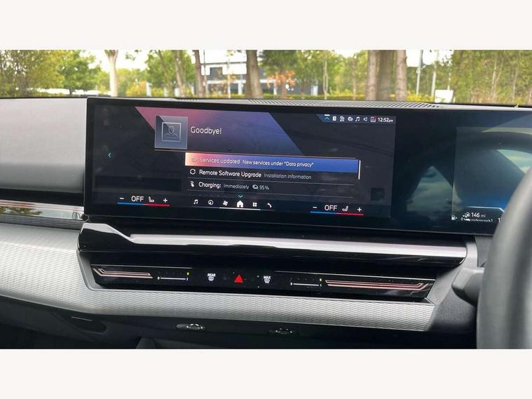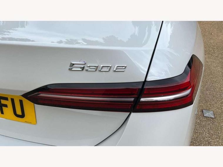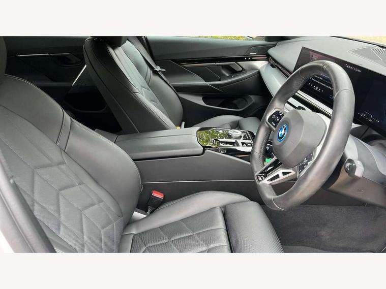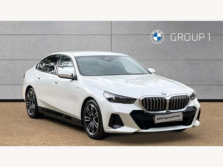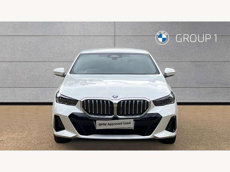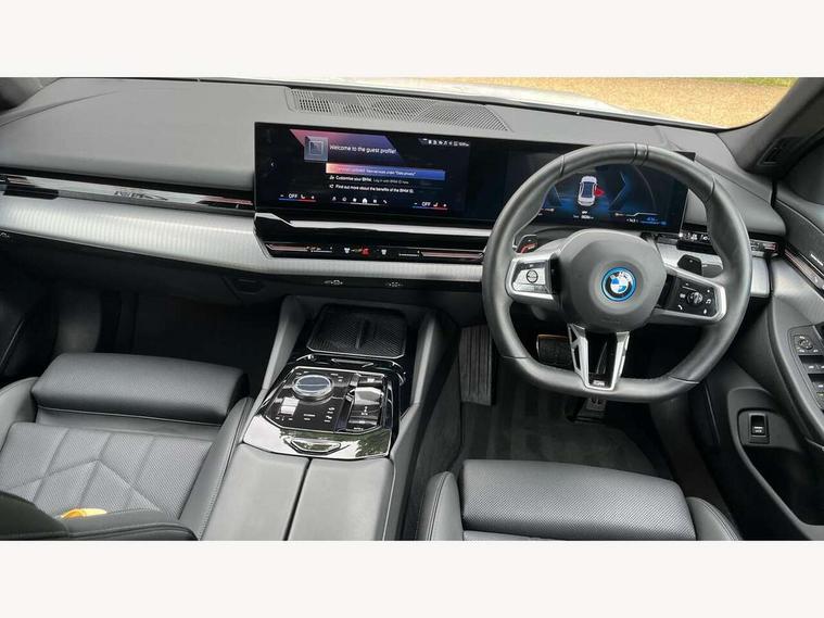 BMW ConnectedDrive online services, BMW Iconic sounds electric, BMW legal emergency call, BMW Teleservices, Brake pad wear indicator, Cruise control with brake assist, Driving Assistant Plus Preparation, Front collision warning with brake intervention, Lane departure warning with active return, Left turn warning with brake function, Multifunctional instrument panel, Oil sensor for level and grade, On board computer inc. average speed, fuel consumption, liquid crystal Info display, journey computer, outside temperature display, personal profile, On-board diagnosis - OBD, PAS, Powered by Operating System 7.0, Run flat indicator, Service interval indicator, Speed limit Info with manual speed limit assist, Stop/start button, 8 speed automatic steptronic transmission with gearshift paddles, AC charging cable professional (mode 3) for public charging, DAB tuner, Acoustic glazing, Adaptive LED Headlights, Automatic cornering lights, Automatic windscreen wipers and automatic headlight, BMW selective beam, Body colour door handles, Body coloured bumpers, Dynamic brake lights with LED technology, Electric adjustable door mirrors, Electric front and rear windows with fingertip open/close + anti-trap facility and comfort closing function, Follow me home headlight function, Headlight elements in blue, Heated windscreen washer jets, LED daytime running lights, LED third brake light, Light colour close to that of ordinary daylight, Optimum, homogeneous illumination of the road, Rear boot, Rear side wing doors, 2 zone automatic air conditioning, 3 seat bench in 2nd row, 3 spoke leather M steering wheel in BMW M specific design with M badge, Armrest - front and rear integrated door trim, centre console includes storage compartment, rear centre includes 2 cupholders, Child seat ISOFIX attachment with rear outer seats includes top tether, Electric adjustable front sports seats, Electric adjustable steering column, Electrically adjustable lumbar support for driver and front passenger, Heated driver and front passenger seats, M Anthracite headlining, M Sport pedal covers in stainless steel, Rear headrests, Single front passenger seat, Through loading system with 40/20/40 rear seat backrest split, Velour floormats, Wireless charging tray, Ambient lighting pack - 5 Series/I5, Connected package professional - 5 Series/I5, Driving assistance pack - 5 Series/I5, Expanded exterior mirror package - 5 series/I5, M high gloss shadow line pack - 5 Series/ I5, M Sport exterior styling pack - 5 Series/I5, 3 rear three point seatbelts, Active protection, Airbag deployment is controlled with respect to the intensity and scope, Anti-lock braking system (ABS), Brake assist, Brake energy regeneration, Cornering brake control (CBC), Crash sensor activating central locking release, hazard warning lights, fuel cut off and interior lighting, Driver and front passenger airbags, Driver central airbag, Driver/front passenger side airbags, DSC - Dynamic Stability Control, Dynamic brake control, Dynamic Traction Control - DTC, Electromechanical parking brake with automatic drive away release and auto hold function, Electronic brake force distribution, Engine drag torque control, Front and rear brake discs with interior ventilation, Front and rear curtain airbags, Front head restraints with anti-whiplash, Head airbags for first and second row seats, Hill start assist, Locking of doors after driving off, M Sport brakes in dark blue metallic painted brake callipers with M designation, Mechanical child proof lock on rear doors, PC iBrake PostCrash approach control warning with light braking function, Side impact protection, Trailer stability control, Two tone horn, Tyre pressure monitoring system, Warning triangle and first aid kit, Alarm system, Locking wheel bolts including wheel bolt adapter, Tyre repair kit,