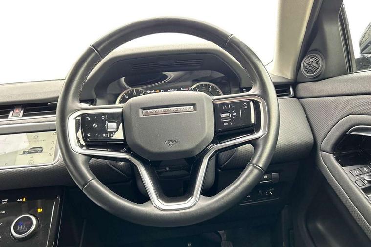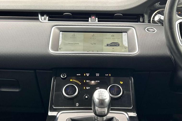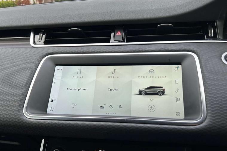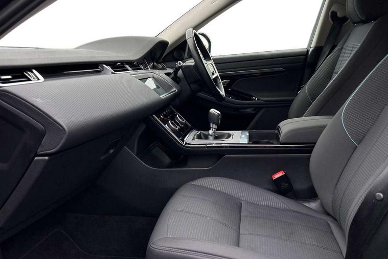 10" touch screen, Android Auto, Apple car play, Bluetooth connectivity, Brake pad wear indicator warning light, Cruise control + speed limiter, Driver condition monitor, Electronic power assisted steering (EPAS), Front and rear parking aid, InControl remote, Land Rover InControl apps, Lane keep assist, Push button starter, Voice control system, Passive suspension, Digital Audio Broadcast radio-DAB, Steering wheel mounted controls, Electric windows with one touch open/close and anti trap, Evoque badge, Flush deployable exterior door handles, Heated rear window with timer, Heated washer jets, Heated windscreen, Rain sensing windscreen wipers, Rear fog lights, Tailgate spoiler, 40:20:40 split folding rear seats with centre headrest and armrest, Ambient interior lighting, Isofix system on outer rear seats, Overhead lighting console, Overhead stowage for sunglasses, Passive front head restraints, Rear air vents, Rear centre headrest, Sunvisors with illuminated vanity mirrors, Twin sliding front centre armrest, 3 rear 3 point seatbelts, Anti-lock braking system (ABS), Customer configurable autolock, DSC - Dynamic Stability Control, Electronic brake force distribution, Electronic parking brake, Electronic traction control, Emergency braking, Front and rear seatbelt reminder, Hill launch assist, Power operated child locks, Roll stability control, Six airbags - Driver and passenger airbags/driver knee airbag/front side airbag and curtain airbags, Tyre pressure monitoring system, Alarm, Immobiliser, Intrusion sensor, Locking wheel nuts,