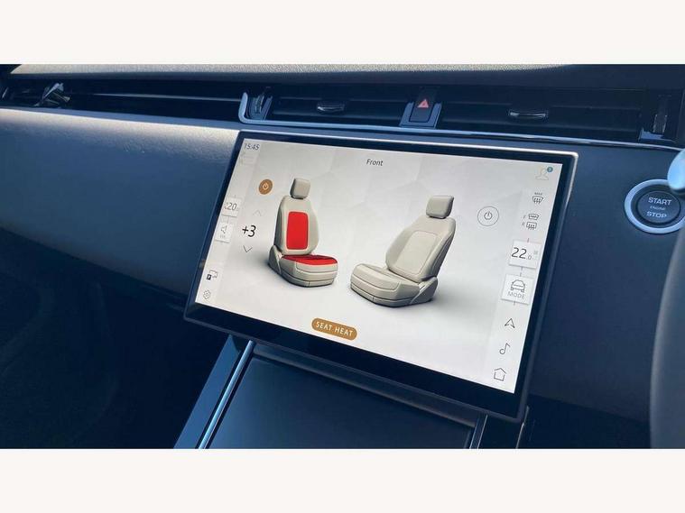 11.4" touch screen, 3D 360 degree surround camera with wade sensing, Adaptive cruise control, Android Auto, Apple car play, Blind spot assist, Bluetooth connectivity, Brake pad wear indicator warning light, Driver condition monitor, eCall emergency system, Eco mode, Electronic power assisted steering (EPAS), Front and rear parking aid, InControl remote, Interactive driver display, Land Rover InControl apps, Lane keep assist, Pivi pro connected includes diamond pivi variant, smart settings, connected navigation pro, nuance speech licence, Powered tailgate/boot lid, Rear collision monitor, Rear traffic monitor, Tailgate, Traffic sign recognition with adaptive speed limiter, Voice control system, Wireless device charging, All terrain progress control, Diesel exhaust fluid (DEF) large tank, Efficient Driveline, Large fuel tank, Terrain Response 2, Digital Audio Broadcast radio-DAB, Steering wheel mounted controls, Acoustic laminated windscreen, Auto headlights, Auto high beam assist, Automatic headlight levelling, Electric windows with one touch open/close and anti trap, Flush deployable exterior door handles, Front and rear recovery eyes, Heated rear window with timer, Heated washer jets, Heated windscreen, LED headlights with signature DRL and LED tail Lights, Power fold, auto-dimming, heated door mirrors with approach lights and auto dimming driver side, Rain sensing windscreen wipers, Rear animated directional indicators, Rear fog lights, Rear side wing doors, Rear wiper, Side repeater indicators in mirror, Tailgate spoiler, Third brake light, Winter wiper park position, 12 way driver memory and 10 way passenger electric front seats with 2 way manual headrest + 4 way lumbar support, 40:20:40 split folding rear seats with centre headrest and armrest, Ambient interior lighting, Bright metal pedals, Carpet mats, Chrome tread plates with range rover branding Includes stainless steel loadspace scuff plate with etched graphic, Customer configurable single point entry, Front and rear cupholders, Heated front seats, Heated steering wheel, Isofix system on outer rear seats, Manually adjustable steering column, Overhead lighting console, Overhead stowage for sunglasses, Passive front head restraints, Rear air vents, Rear head restraints, Satin chrome gearshift paddles, SE Grained leather upholstery, Single passenger seat, Standard steering wheel with Moonlight Bezel, Sunvisors with illuminated vanity mirrors, Twin sliding front centre armrest, Power socket pack 2 - Evoque, 3 rear 3 point seatbelts, Anti-lock braking system (ABS), Brake hold function, Customer configurable autolock, DSC - Dynamic Stability Control, Electronic brake force distribution, Electronic parking brake, Electronic traction control, Emergency braking, Front and rear seatbelt reminder, Hill descent control, Hill launch assist, Low traction launch, Occupant protection assist, Passenger seat occupant detector, Power operated child locks, Roll stability control, Six airbags - Driver and passenger airbags/driver knee airbag/front side airbag and curtain airbags, Torque vectoring brake, Tyre pressure monitoring system, Alarm, Immobiliser, Intrusion sensor, Keyless entry, Locking wheel nuts, All season tyres,