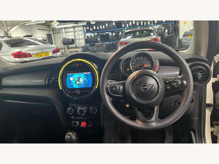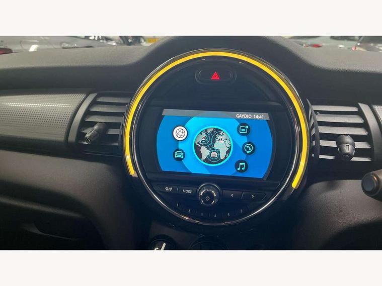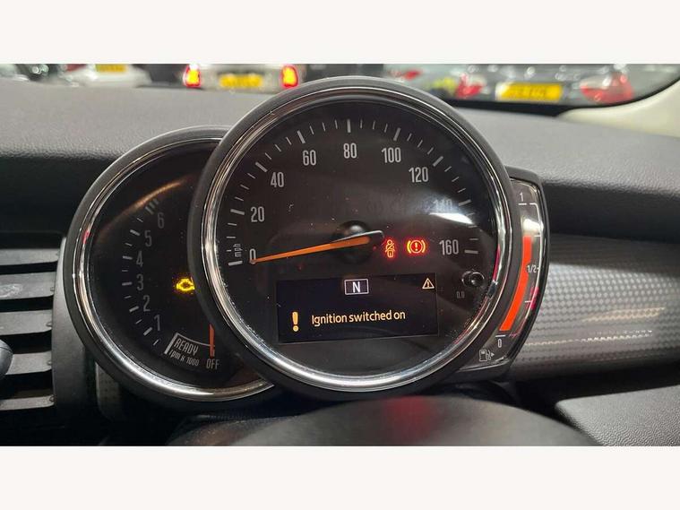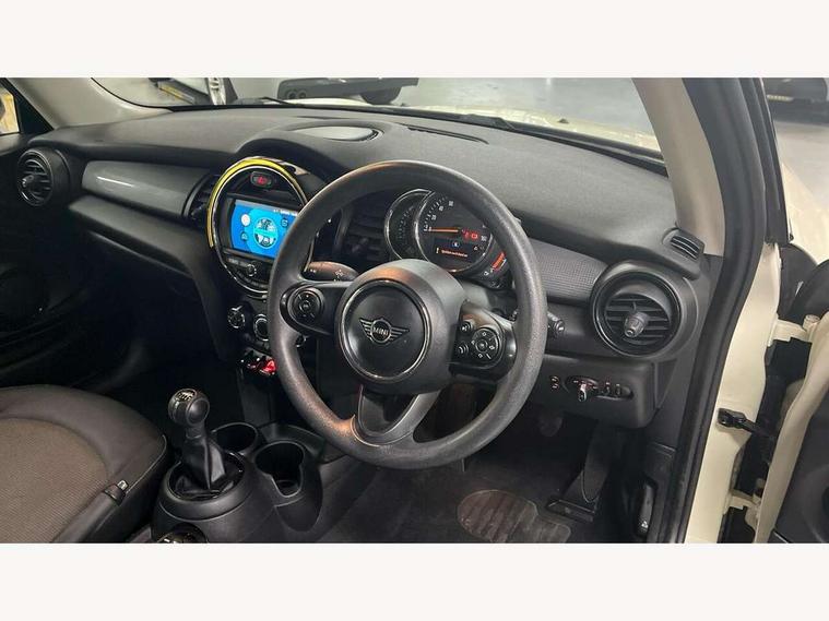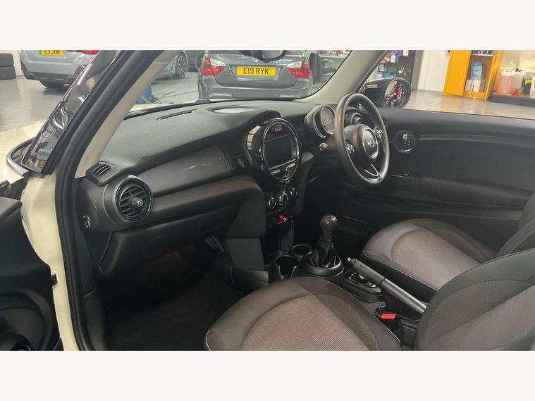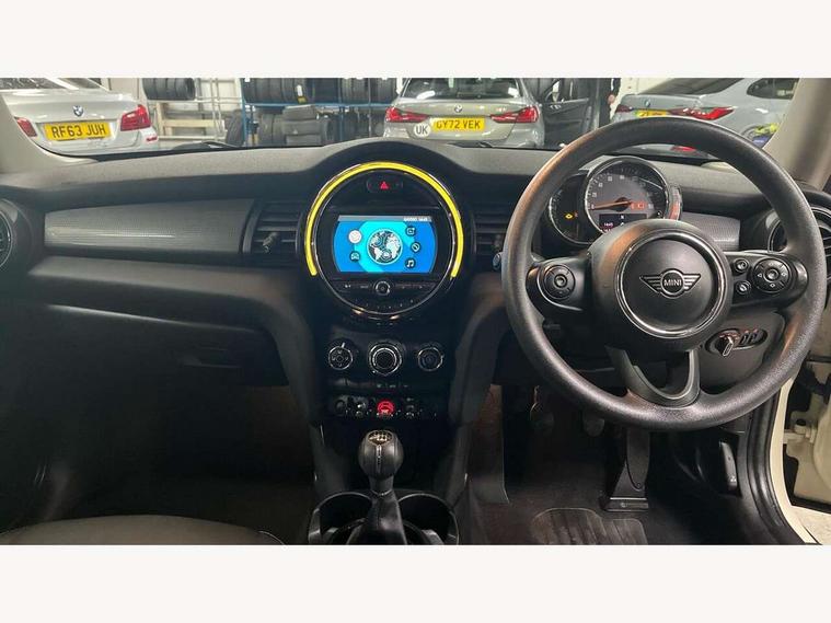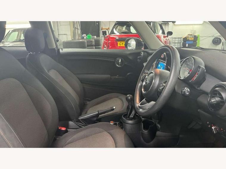 Automatic start/stop function with brake energy recuperation, Compatible mobile phone bluetooth with audio streaming, Electro-mechanical speed dependant steering assistance, Instrument cluster, Mini E-call, MINI TeleServices, On board computer, Service interval indicator, Double Vanos system, Fully variable valve control, High precision injection, 6.5" touchscreen with LED ring, FM tuner and DAB digital radio, Automatic headlight activation switch, Body colour fuel filler cap, Chrome border high gloss black slats radiator grille, Dynamic brake lights, Electric front+rear windows, Heated rear window, Heated windscreen washer jets, LED headlight with closed ring and daytime driving lights, Left exhaust tailpipe with chrome finisher, Metal door sill strips with MINI imprint, Model logo Cooper on right of tailgate, Rain sensor window wipers, Rear fog lights, Rear LED lights with union jack design, Rear window wiper, Side scuttle panel with integrated indicator, Sun/heat protection glass, White indicator lenses, 12V Accessory socket in centre console, 4 lashing eyes in luggage compartment, 60/40 split folding rear seat, Chrome interior highlights, Colour line - Carbon black, Cupholders, Front and rear head restraints, Front and rear isofix with front passenger airbag deactivation, Glove compartment, Height and length steering column adjustment, Interior lighting with 12 basic colours selectable via toggle switch in roof, Leather gearshift lever and handbrake gaiters, LED reading lights, vanity mirror lights, front foot well light and spotlight on front seats, Manual air conditioning, Mechanical seat adjustment, driver seat height adjust, forward/back and front seats backrest, Mini logo projection on floor from drivers exterior mirror, Multifunction steering wheel, Satellite grey headlining, Storage compartments in doors, Sunvisors with vanity mirrors, 3 point seatbelts on all four seats, 6 Airbags - front, side, head and seat belt tensioners, Anti-lock braking system (ABS), DSC - Dynamic Stability Control, Front and rear disc brakes, Hill start assist, Single tone fanfare horn, Tyre pressure monitoring system, Alarm system with tilt sensor, monitoring doors, bonnet interior and tailgate, Electronic vehicle immobiliser, Start/stop toggle with keyless go, Tool kit,
