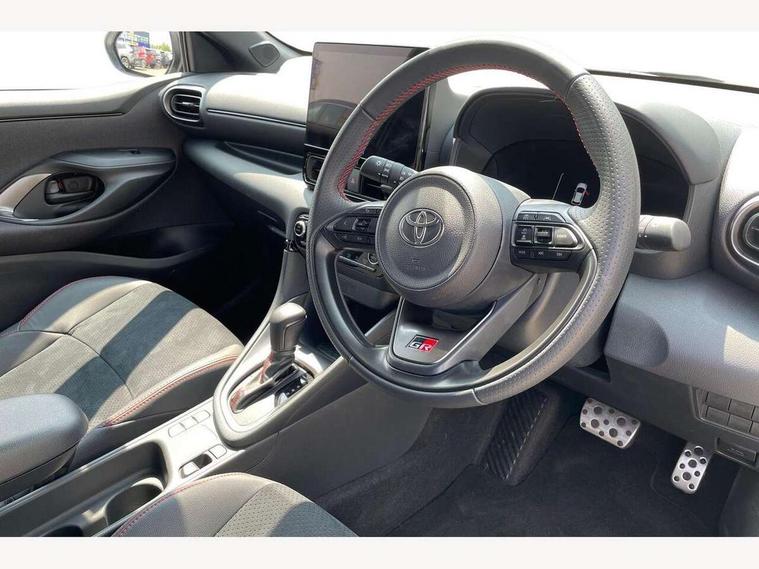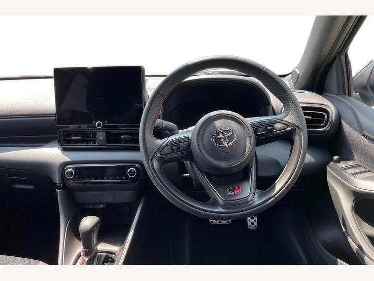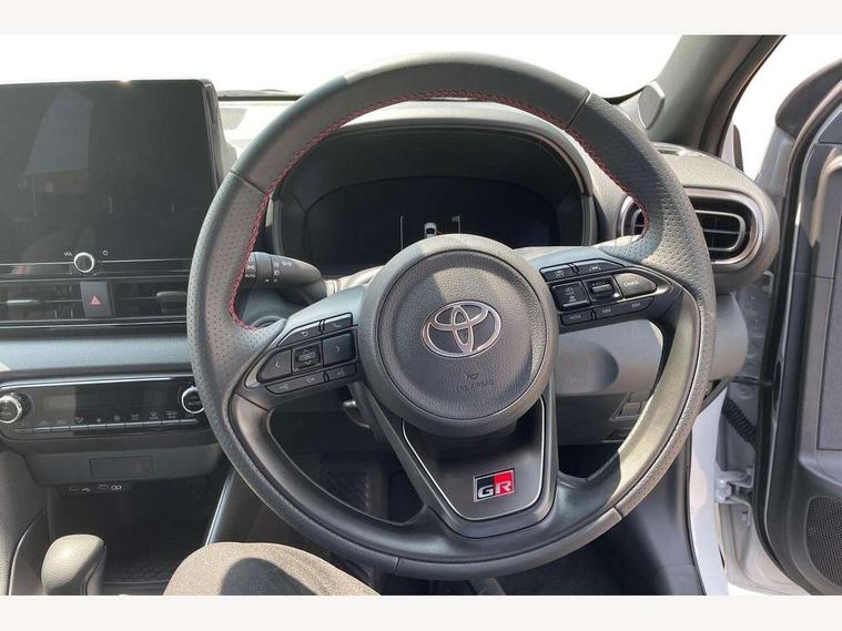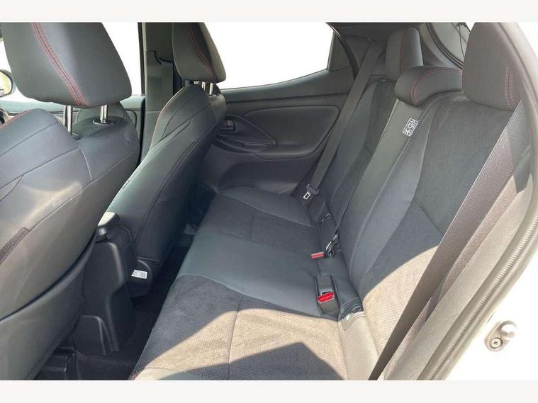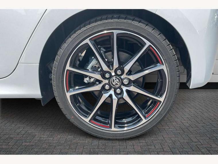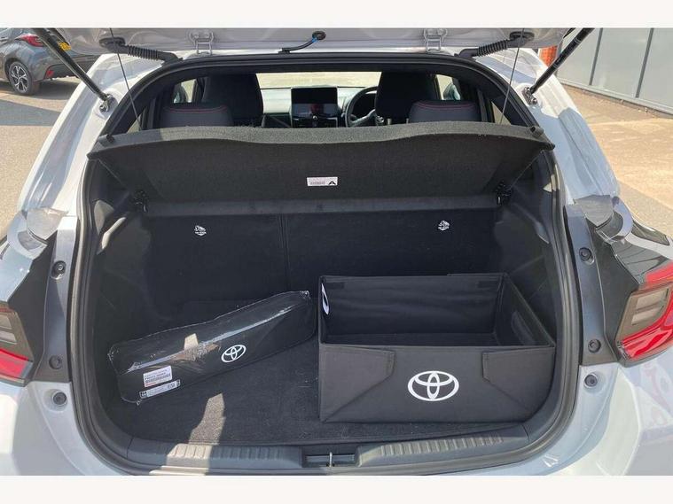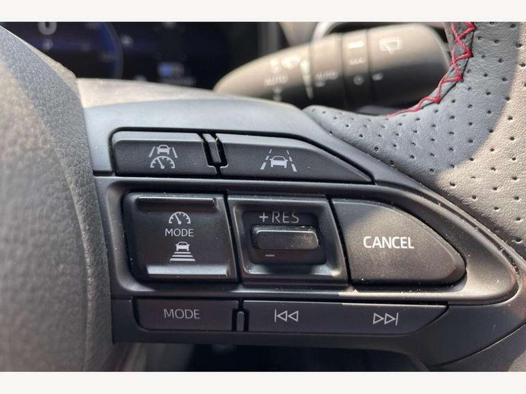 12.3" Digital Combimeter, Adaptive cruise control, Adjustable speed limit with speed warning, Bluetooth connectivity, Colour binocular inspired displays with digital speedometer, E-call, Electric power steering, Hybrid energy display, Lane trace assist, Multi information display switches on steering wheel, Pre-collision system (PCS), Reversing camera, Tailgate, Voice recognition, Wireless charger, Vehicle Stability Control (VSC), 10.5" Toyota smart connect multimedia with wireless smartphone integration incl apple car play and cloud Navigation, 6 speakers, Toyota Touch 3 system with DAB radio, USB connection, Acoustic windscreen glass, Auto high beam assist, Auto windscreen wipers, Automatic headlights, Dark chrome lower front grille, Electric adjustable heated door mirrors, Follow me home headlights, Front auto power windows with anti jam protection, LED daytime running lights, LED front fog lights, LED front light guide, LED Headlights, LED High mounted stop lamp, LED Indicators, LED rear light guide, Manual headlight levelling, Painted chequered front grille with hot stamp in mesh design, Rain sensor, Rear auto power windows with anti jam protection, Rear privacy glass, Rear roof spoiler, Rear side wing doors, Rear wiper, Shark fin antenna, Turning signal integrated indicators in door mirrors, Variable front intermittent wipers, 3 adjustable rear headrests, 3 seat bench in 2nd row, 3 spoke leather steering wheel, 60/40 split folding rear seat, Active headrests, Adjustable boot height, Ambient lighting, Black roof lining, Coat hooks in rear grab handles, Cup holders (2 front & door), Data Communication Module (DCM) connected services, Dual zone automatic air conditioning, Front armrest, Front sport seats, Glovebox, GR embossed in headrests, Height adjustable driver's seat, Height adjustable passenger seat, Isofix seat fixing, Leather gearshift, Map pockets on the backs of the front seats, Pollen filter, Shopping bag hooks, Single front passenger seat, Suede upholstery, Tilt/telescopic steering column, 3 point seatbelts on all rear seats, ABS+EBD+Brake assist, Electronic parking brake, Emergency brake light system (EBS), Front passenger airbag on/off switch, Front seatbelt reminder, Hill start assist control (HAC), Rear child proof door locks, Rear seat belt reminder, Supplemental Restraint System (SRS) 8 airbags: Driver & passenger's airbags, dual side curtain airbags, side impact airbags, front centre airbag, Toyota Safety Sense 3 with over the air updates, Tyre pressure warning system, 2x Master key, Alarm/immobiliser, Keyless smart entry with push button start, Remote AC via MyT, Remote locking via MyT, Remote powered central double locking doors, GR Sport interior styling with accents and exterior styling, Piano black interior trim, Soft touch instrument panel, 18" Black Machined-face, 10 spoke alloys wheels, Space saver spare wheel,