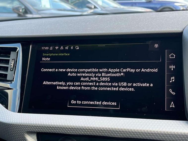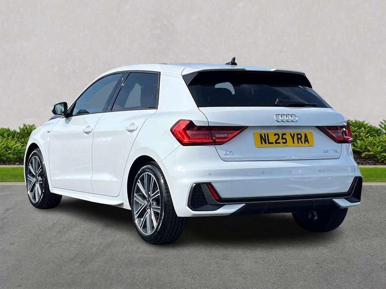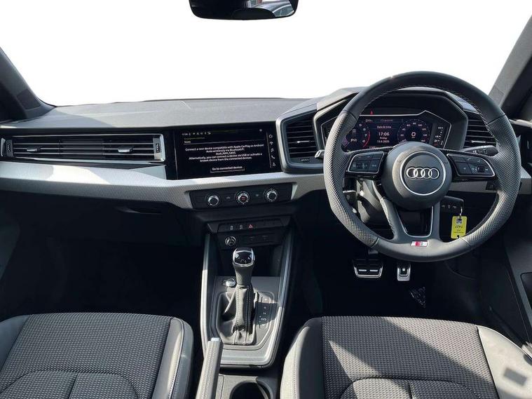10.25" Digital instrument cluster display screen, Audi connect safety emergency and service including E-call, Audi smartphone interface, Automatic start/stop system, Bluetooth interface, Driver's information system, Electromechanical power steering, Lane departure warning system, Service interval indicator, Speed limiter, Voice control system, Washer fluid level indicator, Sports suspension, 1 x SDXC card reader, 1 x USB type C and 1 USB type A charging points, Audi music interface, Bluetooth audio streaming, DAB Digital radio, MMI radio plus with 8.8" colour MMI display screen and MMI touch, Adaptive brake lights, Auto dimming rear view mirror, Body colour side sill mouldings, Body coloured bumpers, Body coloured door mirrors, Door sills with aluminium inlays and S Line logo, Electric front and rear windows, Front side air inlets in grained matt black and C frame in titanium black, Heat insulating glass windscreen and side windows, Heated rear windscreen, LED headlights with LED rear lights + dynamic rear indicators, Matt aluminium silver tailpipe trim, Matt black radiator grille frame, Matt platinum grey in front spoiler clip and rear diffuser clip, Rain and light sensors, Rear fog lights, Rear wiper, S line badges on front wings, S line exterior bumpers, S line roof spoiler, Side air inlet frames titanium black, Side front spoiler lips in grained matt black, 12V socket in centre console with two cup holders, 3 rear seats, Black cloth headlining, Driver and passenger seat with manual height adjust with forward and backwards adjustment, Front and rear black floor mats with contrast stitching in fine silver, Front head restraints, Height and reach adjustable steering wheel, ISOFIX child seat mounting in front passenger and rear outer seats, Leather gear knob with aluminium trim, Leatherette handbrake grip, Luggage compartment light with front and rear reading lights, Lumbar adjustment for front seats, Rear head restraints, Split folding rear seats, Stainless steel pedals, 3x3 point rear seatbelts, Brake assist function, Driver and front passenger airbag with front side and head airbags, Electronic Stability Control including ABS, EBD, ASR and EDL, Front and rear seatbelt reminder, Front passenger airbag deactivation switch, Hill hold assist, Seatbelt height adjustment for front seats, Seatbelt monitoring, Tyre pressure warning light, Warning triangle and first aid kit, Anti theft alarm, Anti theft wheel bolts and loose wheel warning, Audi pre-sense front with pedestrain and cyclist recognition, Immobiliser, Remote central locking with 2 remote folding keys, Aluminium trim for control switches, air vents and digital instrument cluster, Silver grey inlays polygon structure in diamond paint finish, Structured grey accent areas including air vents, door handle recesses and centre console in quartz paint finish,