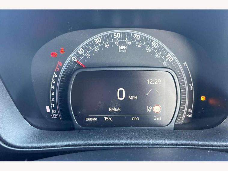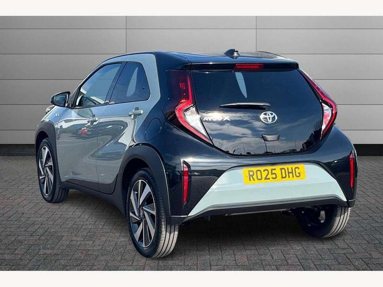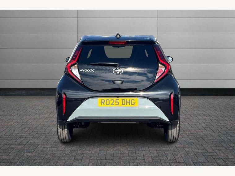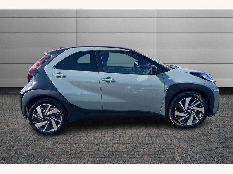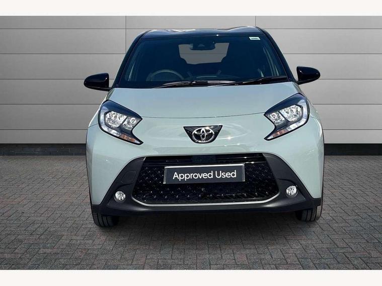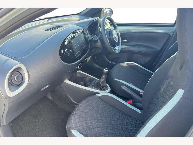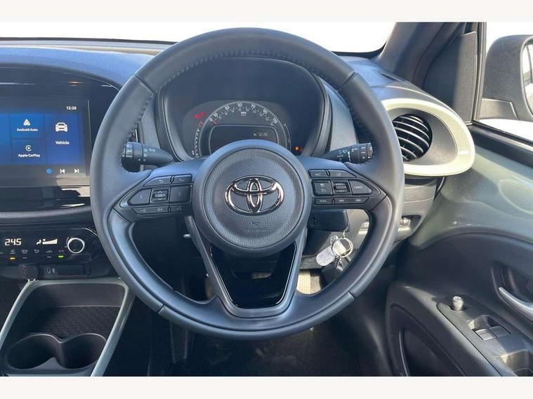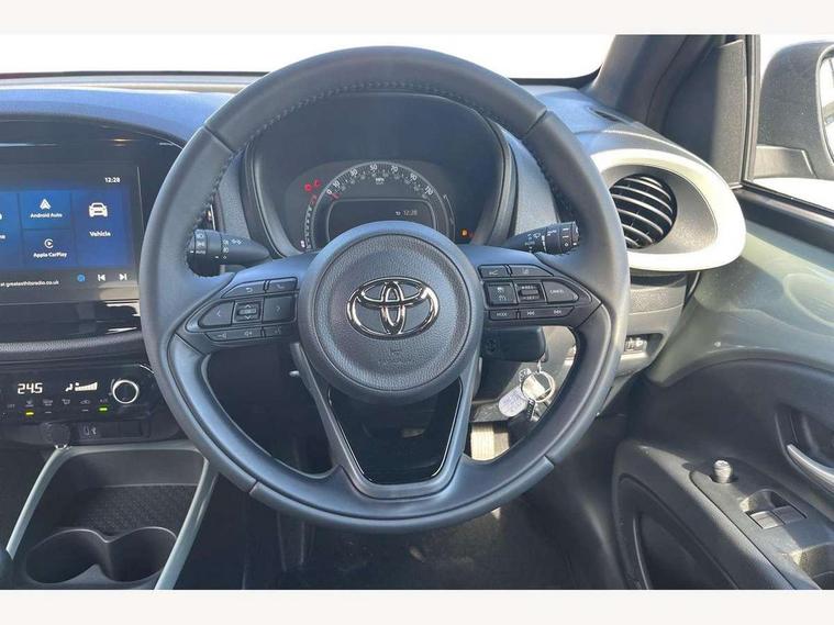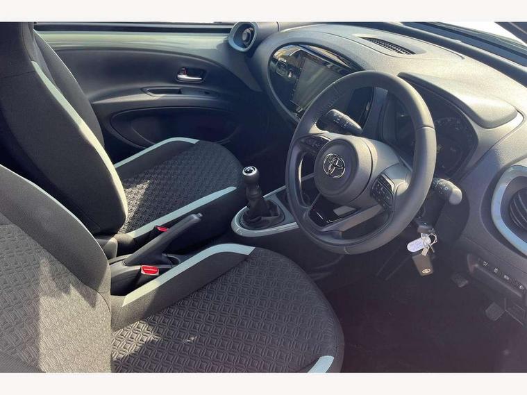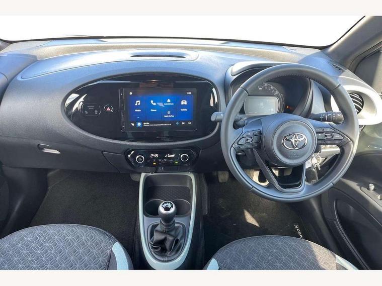4.2" TFT colour screen, Adjustable speed limiter, Analogue speedometer, Bluetooth connectivity, Digital tachograph, Driver attention alert system, eCall emergency call system, Electric power steering, Intersection turn assist, Key reminder warning, Noise reduction kit, Pre collision system with emergency steering assist, Reversing camera with static guide lines, Smart phone integration with Apple car play/Android Auto, Speed limit display, Start and stop, Vehicle Stability Control (VSC), 4 speakers, 9" HD multimedia display touch screen with Toyota smart connect, DAB digital audio broadcast, USB connector, Auto headlights, Auto wipers, Automatic headlights cut-off, Bicycle towing hook, Black contrast roof, Black side protection mouldings, Black wheel arch mouldings, Body colour door handles, Body coloured front bumper, Boot door scuff plate, Eclipse black rear bumper, Electric heated door mirrors, Follow me home headlights, Front fog lights, Front power windows, Gloss black door mirrors, Gloss black upper front grille, Headlight cut-off reminder, LED daytime running lights, LED front light guide, LED High mounted stop lamp, Manual day/night rear view mirror, Manual headlight levelling, Pagoda roof, Power adjustable door mirrors, Power back door, Privacy glass, Projector halogen headlights, Rain sensor, Rear combination lights LED bulb type, Rear side wing doors, Rear windscreen defogger, Rear windscreen wiper, Short antenna, Variable intermittent windscreen wipers, 12v power outlet - front, 2 seat bench in 2nd row, 3 spoke leather steering wheel, 50/50 split folding rear seat, Adhesive roof headlining, Adjustable speed limiter switch on steering wheel, Audio and telephone switches on steering wheel, Auto air conditioning, Black insert on steering wheel, Black roof lining, Boot light, Centre room light, Chrome interior door handles, Chrome surround on air conditioning buttons, Clean air filter, Console box storage in body color, Fabric upholstery, Floor mats, Front and rear cup holders, Front head rest deco art, Front head restraints, Height adjustable driver seat, Intelligent adaptive cruise control switch on steering wheel, ISOFIX child restraint system on rear seats, Lane departure alert switch on steering wheel, Leather gearshift knob, Manual tilt steering wheel, Manually reclining and sliding driver seat, Manually reclining and sliding front passenger seat, Multimedia switches on steering wheel, Pollen filter, Rear door pockets, Rear head restraints, Satin silver insert on gear shift knob, Single compartment glovebox with lights, Single front passenger seat, Soft tonneau cover, Sun visors with mirror on driver and passenger side, Voice recognition switch on steering wheel, Toyota safety sense pack - Aygo X, Anti lock braking system + Electronic brake force distribution, Child safety door lock, Emergency brake light signal (EBS), Hill start assist control (HAC), Passenger airbag on/off switch, Seat belt reminder for front and rear seats, Supplement restraints system (SRS) - 6 airbags, Traction control, Tyre pressure warning system, Immobiliser, Remote power door locks, Black wheel centre caps, Tyre repair kit,