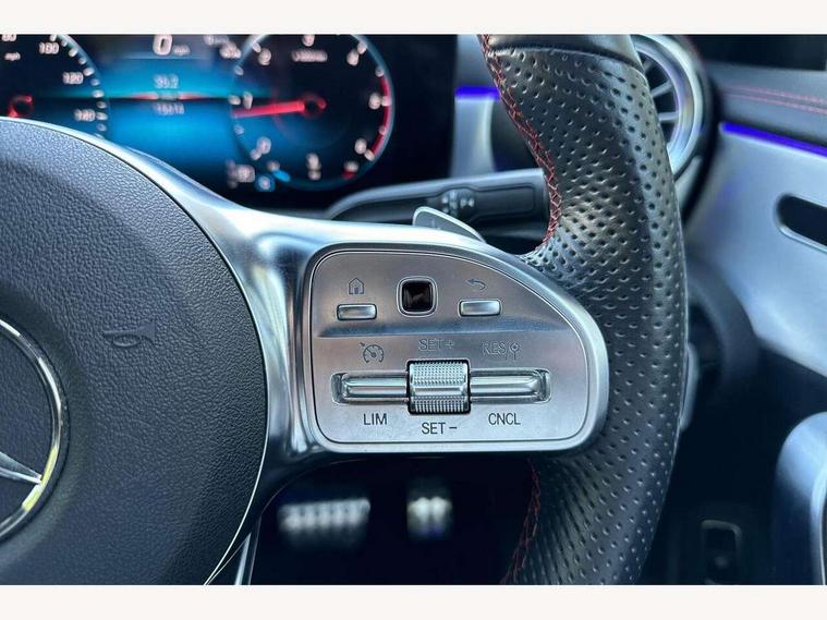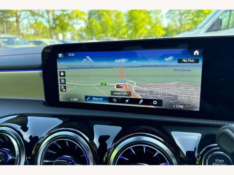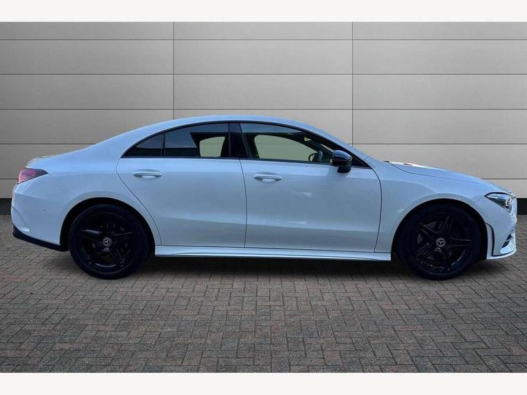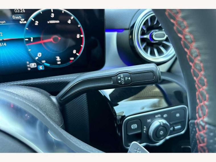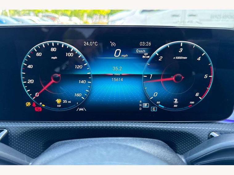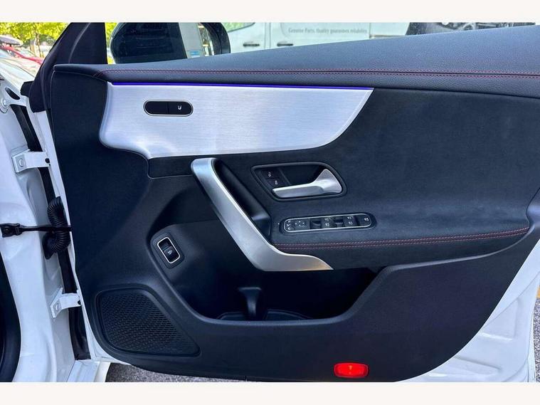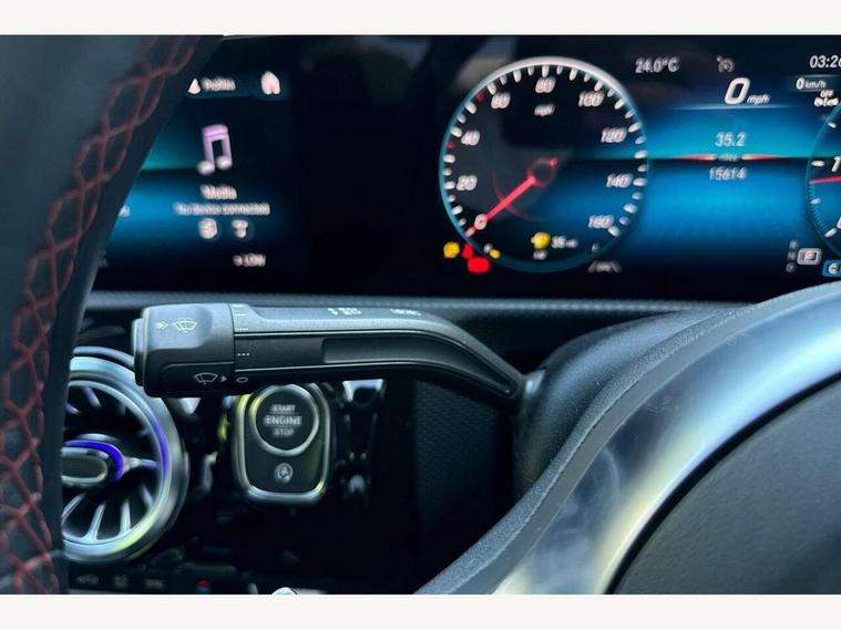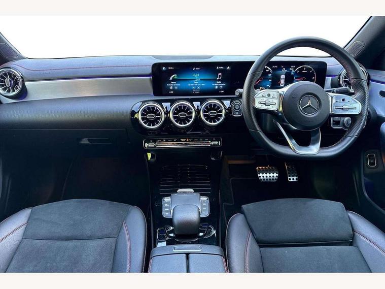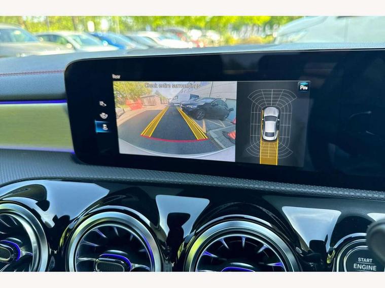 10.25 inch Instrument display with digital cockpit, 10.25 inch touchscreen central media display, Active lane keeping assist, Attention assist - Monitors steering behaviour and long journey fatigue, Bluetooth connection, Car wash mode, Cruise control with limiter, Direct steer system with speed sensitive power steering, DYNAMIC SELECT with a choice of driving modes (ECO, Comfort, Sport and Individual), ECO start/stop function, Fluid level warning indicator for fuel, oil, coolant and washer fluid, Hard-disk navigation, Hey Mercedes Voice activation, Lamp failure indicator, Mercedes me connect including emergency call system, accident recovery, breakdown management and maintenance, Mercedes me remote services, Outside temperature gauge, Owners manual and service booklet in English, Pre-installation of private car share, Preinstallation for Mercedes Benz link, Radio aerial integrated into front and rear windshields, Service indicator (ASSYST), Smartphone integration with Apple CarPlay and Android auto, Speed limit assist, Trip computer in multifunction display with current consumption indicator, Lowered comfort suspension, Rear axle multi-link, DAB digital radio tuner, MBUX multimedia system, Mercedes Benz sound system (100 W) with 6 speakers, USB (type C) ports (2) in stowage compartment and 1 in front of centre console, Adaptive brake lights, AMG body styling with AMG front apron and rear apron and visible exhaust tailpipe in chrome trim elements, AMG bodystyling side skirts, Body colour bumpers, Body colour door handles, Chrome beltline strips, Diamond radiator grille pins in chrome, Electric windows, Electrically adjustable and heated door mirrors with integrated LED indicators, Exhaust system with 2 Visible tailpipe trim elements and rear apron with trim in chrome, Headlamp assist automatic headlamp activation, Heated glass rear windscreen + timer control, High level LED third brake light, Interior mirror with black reading lamps and frameless, LED high performance headlamps with integrated LED daytime running lights, LED tail lamp, Privacy glass with dark tinting on rear side windows and rear window, Rain sensing windscreen wipers with two sensitivity settings, Rear boot, Rear fog lamp, Rear side wing doors, Variable front intermittent wipers, Window line trim strip in chrome, 3 seat bench in 2nd row, 3 spoke flattened bottom nappa leather multifunction steering wheel with perforated leather in grip area, 40:20:40 split folding rear seats with backrest, Air conditioning - Two zone thermotronic luxury automatic climate control with display, Air vents with surround in silver chrome, Artico man-made leather upholstery, Automatic child seat recognition sensor, Black roof lining, Brushed stainless steel sports pedals with rubber studs, Floor mats with stitched AMG lettering, Front centre armrest with stowage, Front door sills with Mercedes Benz lettering, Galvanished gear shift paddles on steering wheel, Heated front seats, Illuminated glove compartment stowage, Interior lighting - 64 colour Ambient lighting, Luggage net on driver/front passenger seat backrest, Manually adjustable front seats, Manually height and reach adjustable steering column, Rear head restraints, Single front passenger seat, Sport seats with fixed head restraints, Stowage compartment in centre console with retractable cover, Sunvisors with illuminated vanity mirrors, Touchpad on center console, Twin front cupholders, Two outer rear seat isofix and top tether child seat fixing points, Light and sight pack - CLA, Mirror pack - CLA, Night package - CLA, Parking package - CLA, Seat comfort pack - CLA, Active bonnet pedestrain safety measure which detects an impact and raises bonnet by 65mm, Active brake assist includes forward collision warning system with autonomous braking, Adaptive brake assist with hold function and hill start assist, Anti lock braking system (ABS) with brake assist, Black seat belts, Bonnet with power domes, Brake pad wear warning indicator, Childproof locks manually operated for rear doors and electrically operated for rear power windows, Crash responsive emergency lighting, Driver and front passenger head and sidebags, Driver and front passenger windowbags, Drivers knee airbag, Dual stage driver and front passenger airbags, Electric parking brake, Electronic stability programme with acceleration skid control, ESP curve dynamic assist, Front and rear seatbelt reminder, Front passenger seat occupancy sensor, Three point rear seat belts, Tyre pressure monitoring system, Warning triangle and first aid kit, Guard 360 degree guard vehicle protection system with immobiliser and interior protection, Keyless Go starting function, Remote central locking and crash sensor with emergency opening function, Light aluminium with longitudinal grain interior trim, 18" AMG 5 twin spoke light alloy wheels painted in black with high sheen finish, Summer tyres, Tirefit tyre sealant kit,