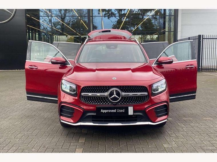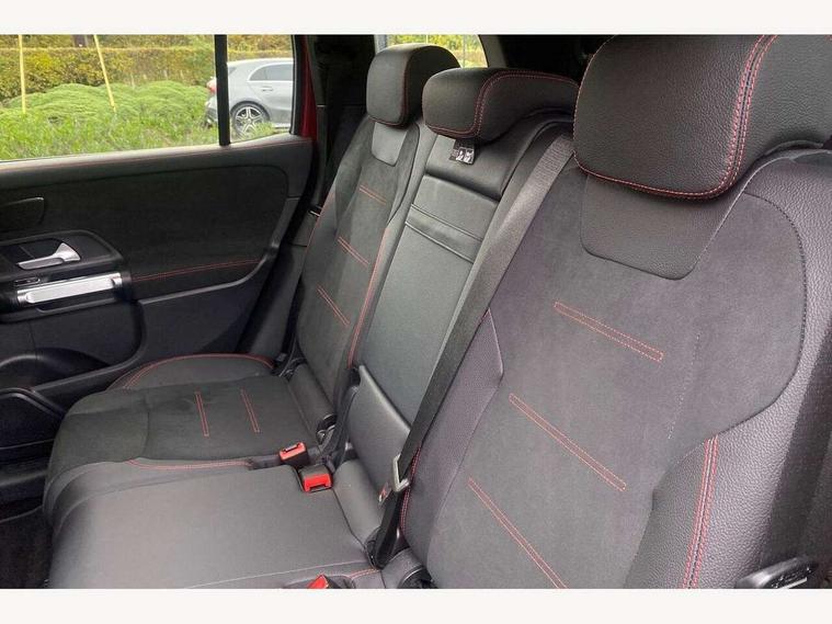 10.25 inch touchscreen central media display, 10.25" Digital instrument cluster display screen, 12 ultrasonic sensors in front and rear bumpers, 180 degree reversing camera with parking guidelines, Additional drive program "OFF-ROAD", Assisted parking: reversing backwards into perpendicular and parallel parking spaces, Attention assist - Monitors steering behaviour and long journey fatigue, Blind spot assist, Bluetooth connection, Brake pad wear indicator warning light, Car wash mode, Convenience opening and closing, Direct steering, DYNAMIC SELECT with a choice of driving modes (ECO, Comfort, Sport and Individual), ECO start/stop function, Engine start/stop button, Exit warning function, Fluid level warning indicator for fuel, oil, coolant and washer fluid, Hard disk navigation, Hey Mercedes Voice activation, Lamp failure indicator, Lane keep assist, MBUX navigation premium, Mercedes me connect including emergency call system, accident recovery, breakdown management and maintenance, Mercedes me remote services, Outside temperature gauge, Owners manual and service booklet in English, Pre-installation of private car share, Preinstallation for parking damage notification, Radio aerial integrated into front and rear windshields, Remote boot closing, Service indicator (ASSYST), Smartphone integration with Apple CarPlay and Android auto, Speed limit assist, Tailgate, Trip computer in multifunction display with current consumption indicator, Ultrasound sensors - positioned in the handle of the tailgate, Wireless charging, Comfort suspension with ride height lowering, Rear axle multi-link, 1 USB-C port in the oddments compartment (Charge + Data transfer), 2 USB-C ports for the rear on the centre armrest (Charge only), 2 USB-C ports under the front centre armrest (Charge + Data transfer), DAB digital radio tuner, MBUX multimedia system, Mercedes Benz sound system (225 W) with 10 speakers, 1 central speaker, speakers on doors, a tweeter on door, one sub woofer + boost amplifier, Pre installation for Mercedes Benz Link, Adaptive brake lights, Adaptive high beam assist, AMG front apron with front splitter in the colour of the vehicle with chrome trim element, AMG rear apron with visible tailpipe trim and chrome trim element, AMG specific/dual flow exhaust pipes in chrome (non-functional), Auto dimming rear view mirror, Beltline trim and window line trim strip in high gloss aluminium, Black grained side sill trim with chrome inlay, Body coloured door handles, Electric adjustable and heated door mirrors with integrated LED side indicators, Electric folding door mirrors, Front and rear electric windows, Headlamp assist automatic headlamp activation, Heat insulating dark-tinted glass starting from B-pillar, Heated glass rear windscreen + timer control, High level LED third brake light, Illuminated door sill panels with Mercedes-Benz lettering, Interior mirror with black reading lamps and frameless, LED high performance headlamps with integrated LED daytime running lights, LED tail lamp, Polished aluminium roof rails, Radiator grille as a diamond grille with chrome pins and central Mercedes star, Rain sensor windscreen wipers, Rear fog lamp, Rear side wing doors, Rear wiper, Single louvre in matt grey with chrome inserts and black highlights, Two visible tailpipe trim elements exhaust, Ultrasonic sensors - positioned in the front and rear bumpers, Wheel arch liners in the colour of the vehicle, 12V socket in the oddments compartment, 3 seat bench in 2nd row, 3 twin spoke flattened multifunction steering wheel in nappa leather - horizontal twin spoke in high gloss black, vertical twin spoke in silver chrome, 4 way adjustable lumbar support, 40:20:40 split folding rear seats, Air conditioning - Two zone thermotronic luxury automatic climate control with display, Air vents with silver chrome surrounds, AMG floor mats, AMG sports pedals with brushed stainless steel surfaces and black rubber studs, Automatic child seat recognition sensor, Black roof lining, Door handles with chrome inserts, Fluorescent jacket, Front and rear headrests, Front centre armrest with stowage, Galvanised steering wheel gearshift paddles in silver chrome, Handle recess lighting, Heated front seats, Height adjustable head restraints, Height/reach adjustable steering column, Interior lighting - 64 colour Ambient lighting, Luggage net on driver/front passenger seat backrest, Single front passenger seat, Sports seats, Stowage compartment with retractable cover, Sun visors with illuminated vanity mirrors, Third row of seats for two people on rear seat, Twin front cup holders, Two outer rear seat isofix and top tether child seat fixing points, Easy pack tailgate, Interior lighting with light and sight pack - GLB, Seat comfort package - GLB, 3 rear 3 point seatbelts, Active bonnet pedestrain safety measure which detects an impact and raises bonnet by 65mm, Active brake assist includes forward collision warning system with autonomous braking, Adaptive brake assist with hold function and hill start assist, Airbags - kneebag for driver, Anti-lock braking system (ABS) with brake assist, Black seatbelts, Bonnet with power domes, Childproof locks manually operated for rear doors and electrically operated for rear power windows, Crash responsive emergency lighting, Curve dynamic assist, Downhill speed regulation (DSR), Driver and front passenger head and sidebags, Driver and front passenger windowbags, Dual stage driver and front passenger airbags, Electric parking brake, Electronic stability programme with acceleration skid control, Front and rear seatbelt reminder, Front brake callipers with Mercedes Benz lettering, Front passenger seat occupancy sensor, Perforated front brake discs, Tyre pressure monitoring system, Warning triangle and first aid kit, Guard 360 degree vehicle protection - Anti theft alarm system, tow away protection with visual, acoustic warning and alarm, Interior monitoring system, KEYLESS GO access and drive authorisation sy