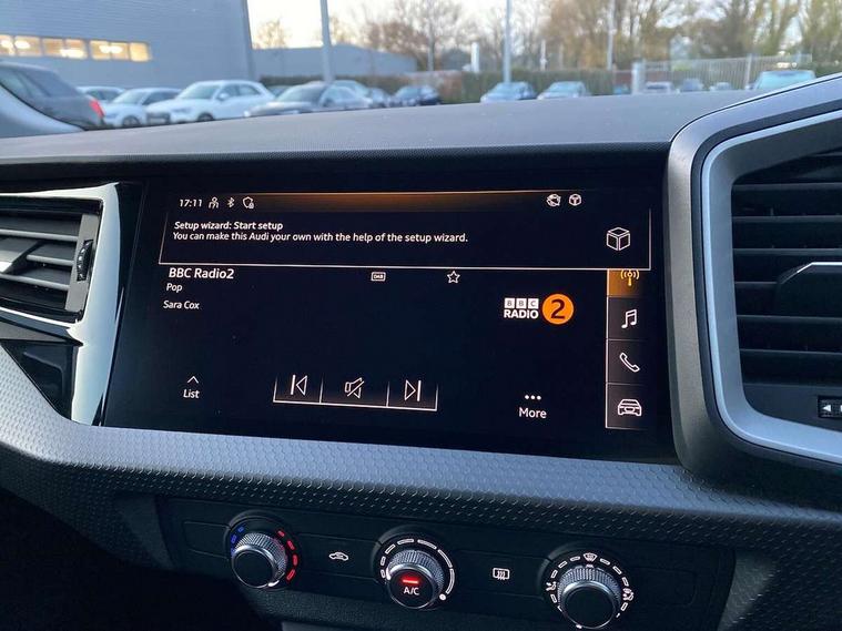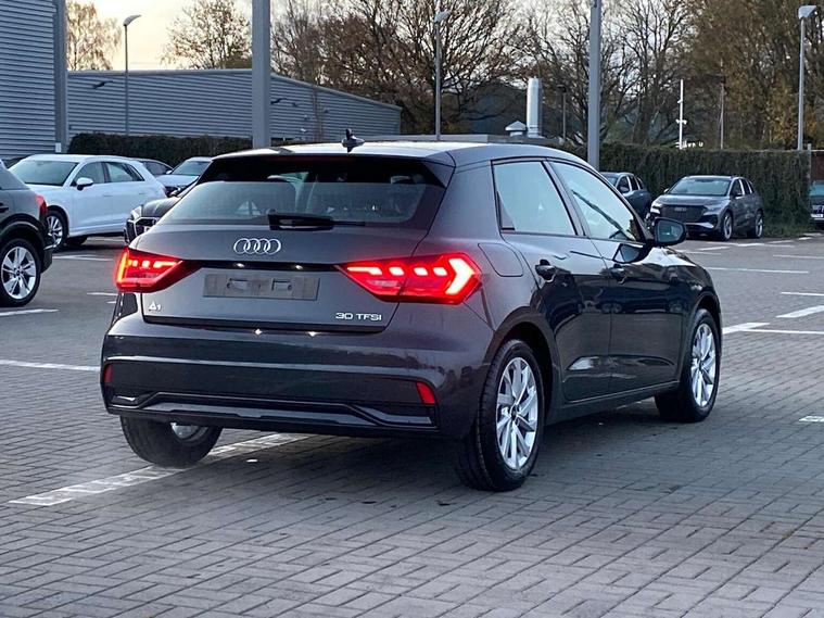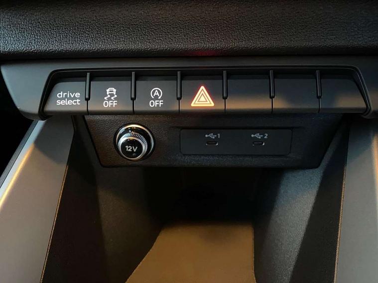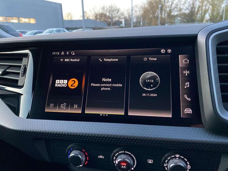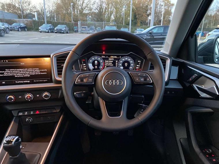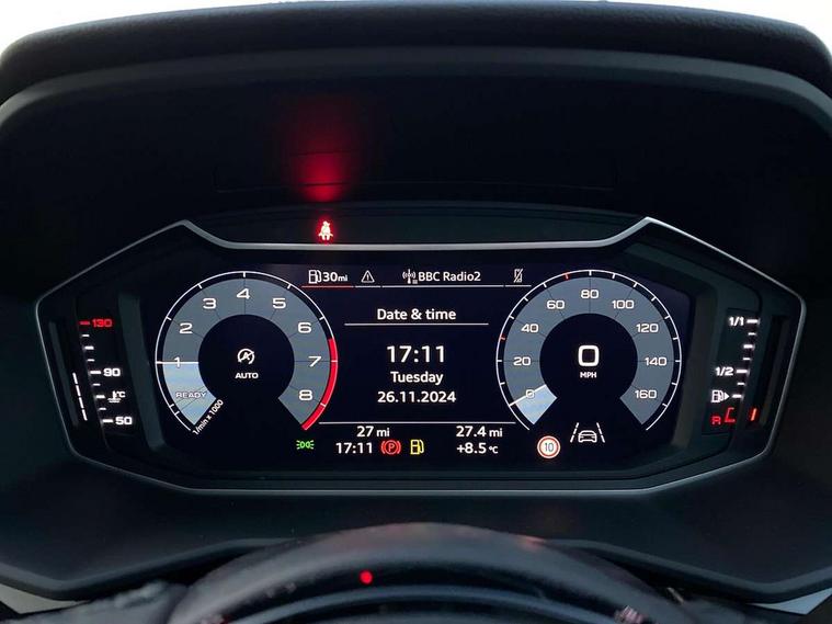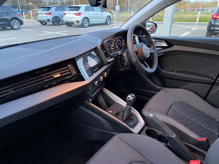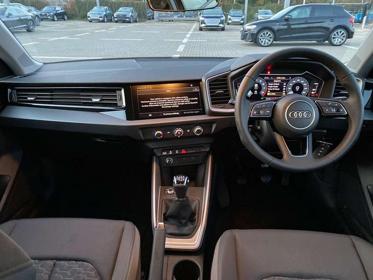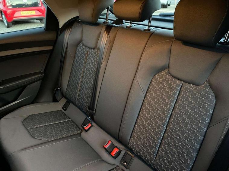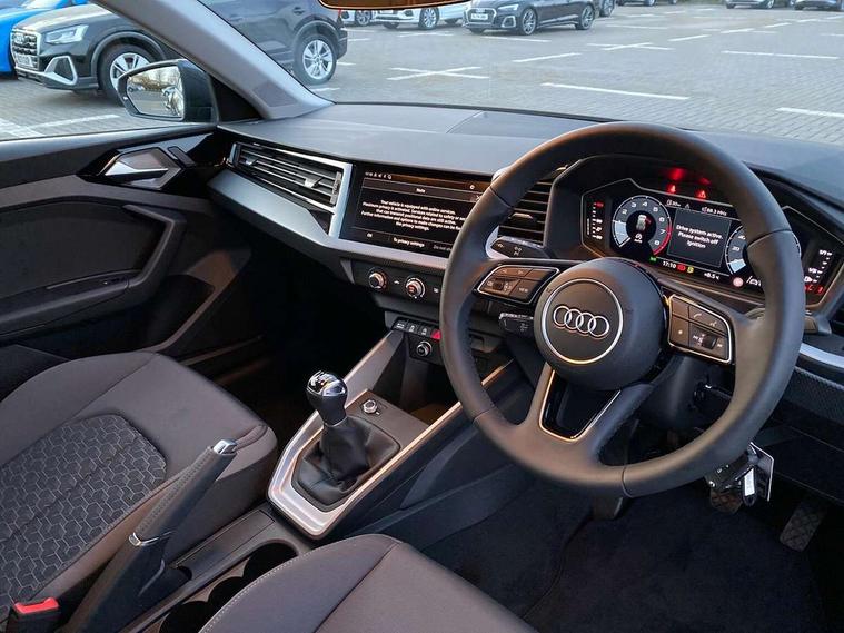 10.25" Digital instrument cluster display screen, Audi connect safety emergency and service including E-call, Audi drive select, Audi smartphone interface, Automatic start/stop system, Bluetooth interface, Driver's information system, Electromechanical power steering, Lane departure warning system, Service interval indicator, Speed limiter, Voice control system, Washer fluid level indicator, Dynamic suspension, 1 x SDXC card reader, 1 x USB type C and 1 USB type A charging points, Audi music interface, Bluetooth audio streaming, DAB Digital radio, MMI radio plus with 8.8" colour MMI display screen and MMI touch, Adaptive brake lights, Auto dimming rear view mirror, Body coloured bumpers, Body coloured door mirrors, Electric front and rear windows, Front side air inlets in grained matt black and C frame in titanium black, Heat insulating glass windscreen and side windows, Heated rear windscreen, LED headlights with LED rear lights + dynamic rear indicators, Radiator grille in matt titanium black, Radiator protective grille frame in matt aluminium silver, Rain and light sensors, Rear fog lights, Rear wiper, Side front spoiler lips in grained matt black, Titanium black matt diffuser, 12V socket in centre console with two cup holders, 3 rear seats, Door sills trims with aluminium inlays, Driver and passenger seat with manual height adjust with forward and backwards adjustment, Front head restraints, Front/rear floor mats, Height and reach adjustable steering wheel, Illuminated glovebox, ISOFIX child seat mounting in front passenger and rear outer seats, Leather gear knob with aluminium trim, Leatherette handbrake grip, Luggage compartment light with front and rear reading lights, Lumbar adjustment for front seats, Novum cloth upholstery with front sport seats, Rear head restraints, Split folding rear seats, Titanium grey cloth headlining, 3x3 point rear seatbelts, Audi pre-sense front with pedestrain and cyclist recognition, Brake assist function, Driver and front passenger airbag with front side and head airbags, Electronic Stability Control including ABS, EBD, ASR and EDL, Front and rear seatbelt reminder, Front passenger airbag deactivation switch, Hill hold assist, Seatbelt height adjustment for front seats, Seatbelt monitoring, Tyre pressure warning light, Warning triangle and first aid kit, Anti theft alarm, Anti theft wheel bolts and loose wheel warning, Immobiliser, Remote central locking with 2 remote folding keys, Aluminium trim for control switches, air vents and digital instrument cluster, Silver grey accent areas including air vents, door handle recesses and centre console in diamond paint finish, Slate grey inlays polygon structure in fine paint finish,
