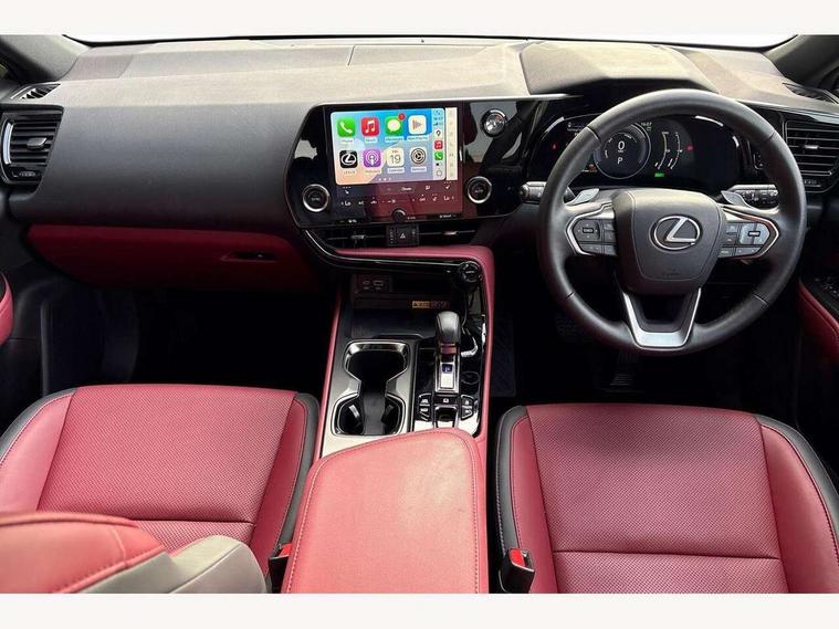 7" display in instrument binnacle, Blind spot monitoring with rear cross traffic alert, Bluetooth telephone connectivity, eCall emergency system, Electric speed sensitive power steering, Intelligent parking sensors - 4 front and 4 rear with object and pedestrain detection, Lane change flasher function, Lexus link connect - Cloud based navigation, cloud based voice assistant, always online and 9.8" VGA touchscreen, Push button starter, Reversing camera with back guidelines, Service interval indicator, Tailgate, Wireless Apple CarPlay/Android Auto, Wireless Smartphone charger, 6.6 kW onboard charger, All Wheel Drive (AWD), Hybrid automatic transmission, Vehicle Dynamics Integrated Management (VDIM), Vehicle Stability Control (VSC), 10 speakers, 4 USB ports - 2 front, one USB C, 2 rear USB C, DAB Digital radio, Auto dimming interior rear view mirror, Automatic headlights, Black roof, Double hidden exhaust pipes, Front and rear one touch power windows, with anti-jam protection, Heated and auto folding door mirrors, Illuminated door handles with puddle light, LED brake lights and rear lights with emergency brake signal, LED cornering lights, LED daytime running lights, LED front fog lights, LED Indicators, LED low beam and Hi-beam headlight, Power back door system, Privacy glass, rear doors and tailgate, Rain sensor windscreen wipers, Rear side wing doors, Rear wiper, Roof rails, 12V accessory port centre console and luggage compartment, 2 cupholders in front centre console, 2 way electrical lumbar adjustment for driver, 2 x fixed shopping bag hooks in boot, 2 x sun visors with vanity mirror and lamp, 3 seat bench in 2nd row, 4 x tie down hooks in the boot, 60/40 split folding rear seat, 8 way driver/passenger electrically adjustable front seats, Adjustable rear seat backrest, Ambient light in 64 colours, Card holder installed in driver and passengers sun visors, Centre armrest with storage box, Dual climate control air conditioning system, Front and rear head restraints, Front and rear textile carpet mats, Front passenger seat, Heated front seats, Heated steering wheel, LED interior illumination, Power adjustable leather steering wheel with paddle shifts, Premium Tahara leather upholstery, Rear centre armrest with 2 cupholders, Whiplash Injury Lessening (WIL) feature (active headrest) for seats, 3 point ELR front seatbelts with pretensioners, 3x3 point rear seat belts, ABS, Adjustable seat belt anchor points, Driver and front passenger 2 stage airbag, Driver/front passenger side airbags, Drivers knee airbag, E-Latch with safe exit assist, EBD + Brake Assist, ECB (Electronically Controlled Brake System), Electronic parking brake, Front and rear curtain shield airbags, Front center airbag, Front passenger seat cushion airbag, Hill assist control, Lexus safety system - dynamic radar cruise control, pre collision system day and night, lane tracing assist, road sign, automatic high beam, OTA, Manual rear child locks, Passenger airbag cut-off device, Traction control, Tyre pressure warning, Anti-theft system with alarm, intrusion sensor, glass breakage sensor, tilt sensor and engine immobiliser, Locking wheel nuts, Smart entry ( front/rear/boot), Speed sensitive auto door locking, Ultra Wide Band (UWB) Anti-theft system, VIN Window etching, 3D prism black Inlay, Organic inlay, Tyre repair kit,