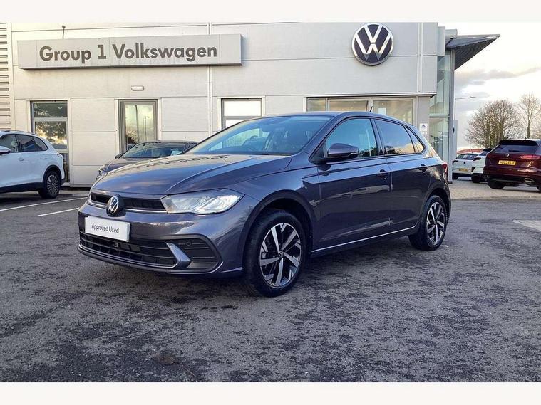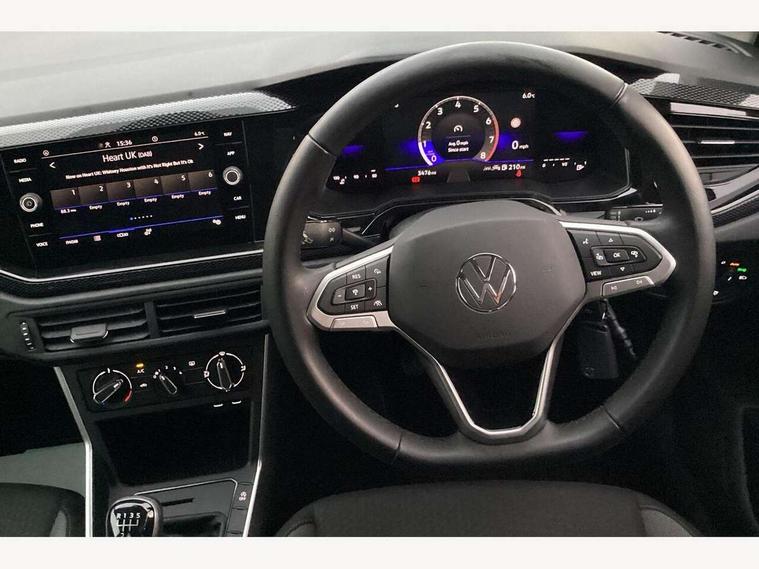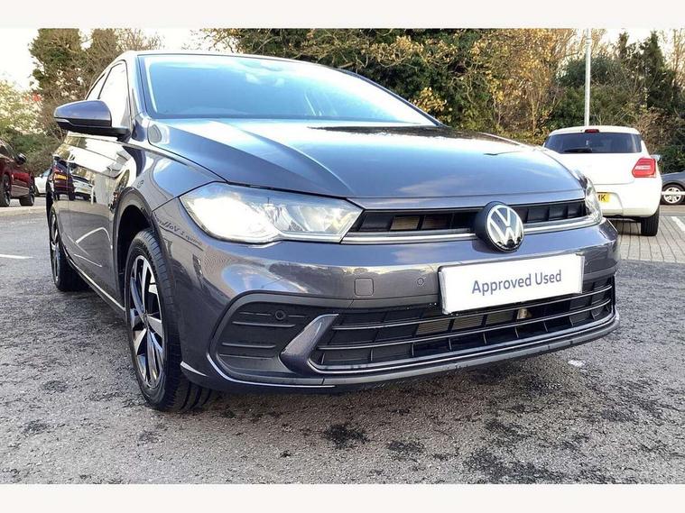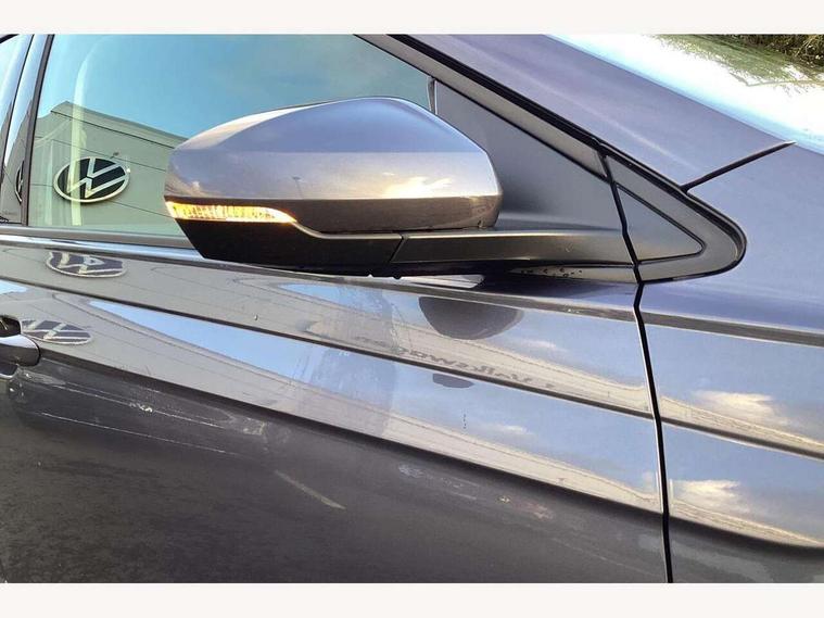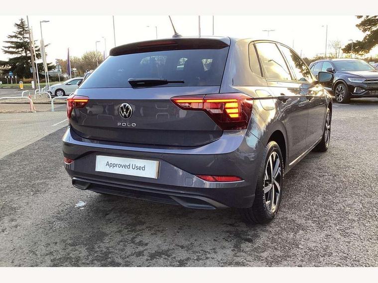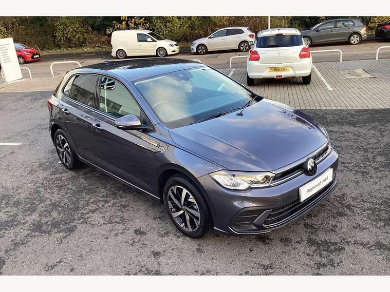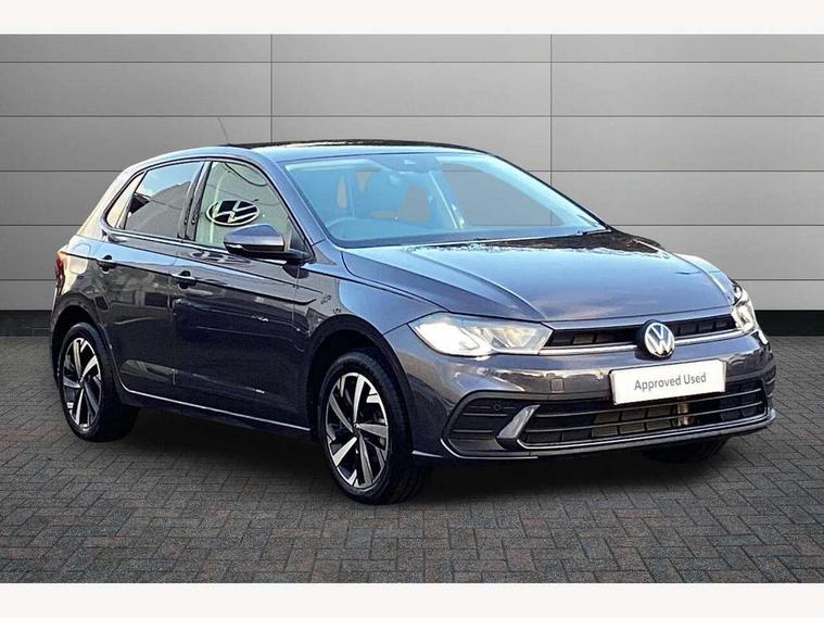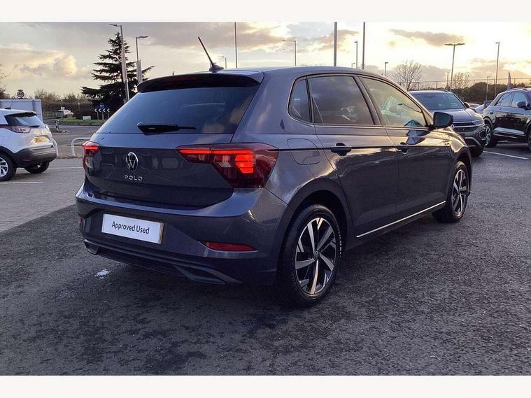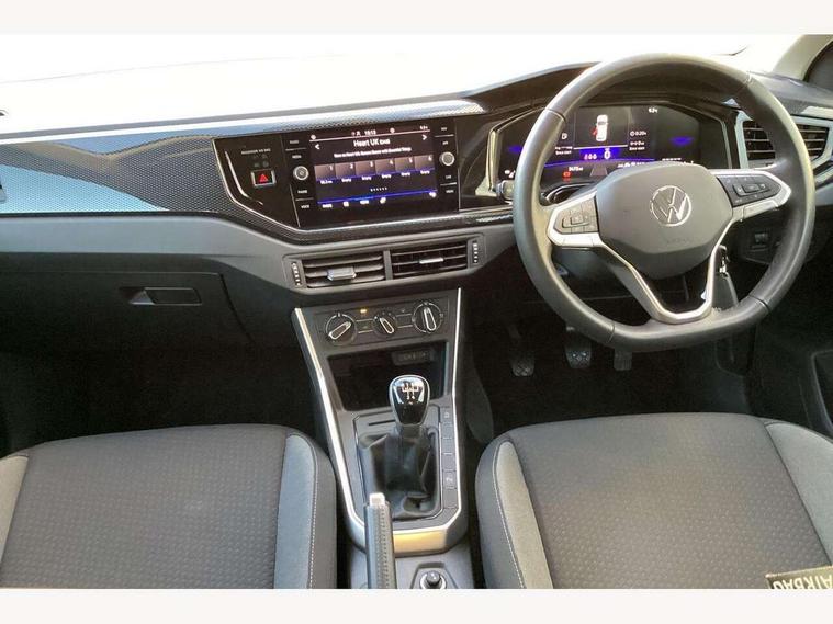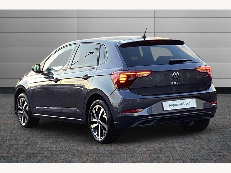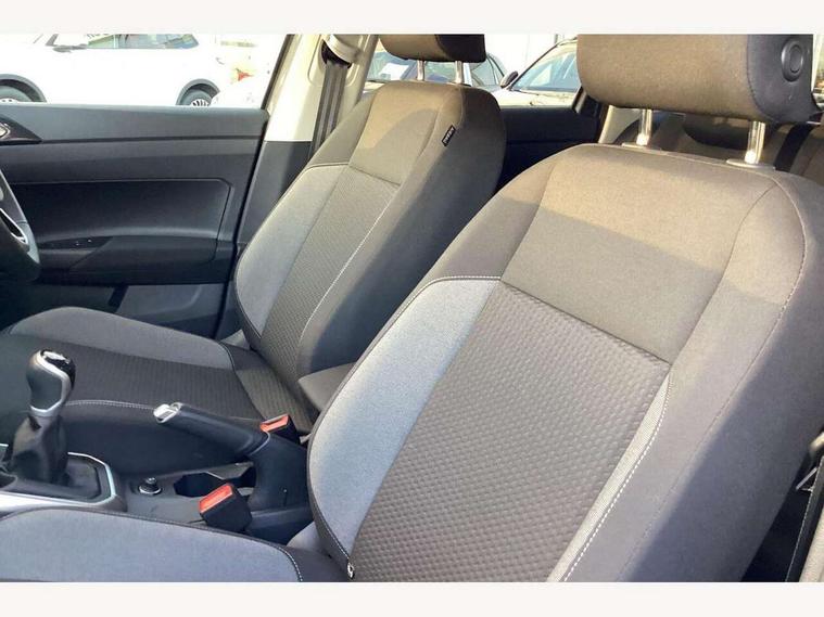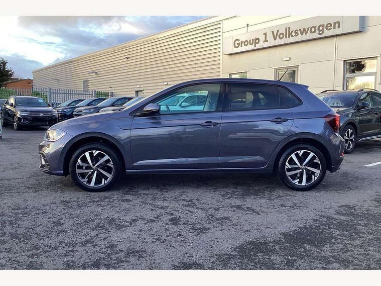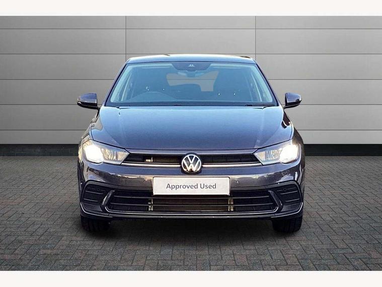 Adaptive cruise control without follow-to-stop and speed limiter, Advanced driver attention and drowsiness monitor, Bluetooth mobile phone interface, Dynamic road sign display, Emergency call service, Multifunction front facing camera for distance control, Park distance control, Power assisted speed sensitive steering, Preparation for navigation system with media and internet package, Preparation for We connect and We connect plus, Rear view camera, Speedo and rev counter, electronic odometer, trip, service interval display and exterior temperature gauge, Standard rear axle, Travel Assist - Lane keeping system and traffic jam assist, Travel assist including emergency assist, Trip computer, Warning signal and warning light for front and rear seatbelts not fastened, Washer fluid level indicator, Wireless app connect, Front wheel drive, Rear shock absorpion, Start-stop system with battery regeneration (recuperation - energy recovery during braking), DAB Digital radio, Diversity antenna for FM reception, Front and rear 6 speakers, Automatic dimming interior rear view mirror, Automatic headlight control with LED separate daytime running lights with coming/leaving home function, Body colour bumpers with chrome inserts, Body colour door handles, Body colour door mirrors, Electric front windows, Engine badge deletion, Headlight range adjustment, Heat insulating and laminated safety glass windshield, LED Headlights, LED rear combination lamps, Power folding adjustable/heated exterior mirrors and front passenger exterior mirror lowering function, Rain sensor, Rear electric windows, Rear fog light, Rear side wing doors, Rear tinted glass from B-pillar backwards approx 65% tinted, Rear windscreen washer and wiper with interval delay, Third brake light, 12V power socket in centre console, 2 front and 2 rear reading lights with switch off delay and dimmer, 2 USB-C ports in the front, 2 USB-C charging sockets on the center console in the rear, 3 rear head restraints, 60/40 split folding rear seat and rear seat bench not split, Ceramique roof lining, Chrome plated radiator grille inserts, air vent surrounds and light switch surrounds, Door and side trim panel, Driver and front passenger seat height adjustment, Driver/passenger sunvisors with illuminated vanity mirrors, Front centre armrest, Front seat backrest storage pockets, Front standard seats, Handbrake lever handle in leather, Hartley/Thomas cloth upholstery, Headliner in recycled material, Isofix child seat preparation easy-fit (for two outer rear seats, and front passenger seat) compatible with I-size, Leather trimmed gear knob, Luggage compartment cover, Luggage compartment lighting, Removable luggage compartment floor, Single front passenger seat, Standard climatic zones, Standard pedal cluster, Three spoke leather wrapped multifunction steering wheel, Light and vision pack - Polo, 3 point height adj front seatbelts + pretensioners, 3 point seat belt for centre rear seat, 3 point seatbelts, outer rear with ECE lable, ABS, Driver and front passenger airbag with front passenger airbag deactivation, Drivers and front passengers safety optimised head restraints, ESC (Electronic stability control) + EDL (Electronic Differntial lock) and ASR (Traction control), Extended and predictive pedestrian/ cyclist protection, Front assist with autonomous emergency braking (for Adaptive Cruise Control ACC up to 130 mph), Front curtain and side airbags with center airbag, Front disc brakes, Hill hold control, Manual child lock in rear doors, Rear drum brakes, Single tone horn, Tyre pressure loss indicator, Alarm with interior protection, Anti-theft alarm system with interior monitoring, backup horn, and towing protection, Anti-theft wheel bolts, Electronic engine immobiliser, Lava stone black gloss/matt decorative inserts in dash and front door panels, 16" Torsby alloy wheels, Low rolling resistance tyres,