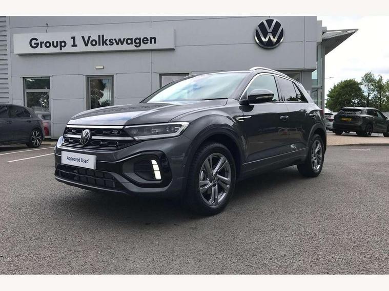 10.25" Digital cockpit pro, Advanced driver attention and drowsiness monitor, Emergency call service, Lane keeping system Lane Assist, Mobile phone interface, Modified key software - reduce switch off time for key status change to Long no motion, Online services, Park assist including front and rear parking sensors, Service interval indicator, Tailgate/trunk lid release from outside, Think blue trainer driver tips and journey analysis, Warning sound and light for front seatbelts unfastened, Wireless app connect, Battery regeneration during braking, Start/stop function with battery regeneration, DAB Digital radio, Diversity antenna for FM reception, Front and rear 6 speakers, Music playback - MP3, WMA and AAC files, Premium USB cable in choice of either Apple or Android smartphone compatibility, SD card slot, Simultaneous pairing of 2 compatible mobile devices, Title and cover art display, We Connect and We Connect Plus functionality, Auto dimming interior rear view mirror, Automatic hazard lights activation under emergency braking, Automatic headlight control with LED separate daytime running lights with coming/leaving home function, Body coloured exterior mirror housings and door handles, Electrically adjustable and heated door mirrors, Extended roof spoiler, Exterior mirrors aspherical on driver side, convex on front passenger side, External USB type C socket and charging sockets, Front windscreen wiper with intermittent wipe and 4 position delay, Heated rear window, LED 3rd brake light, LED rear combination lamps, LED rear number plate lights, Power windows with comfort operation and circuit breaker, Privacy glass for rear side windows and rear window, R-Line design body coloured bumpers, Rain sensor, Rear exhaust tailpipe, Rear fog light on one side and reversing lights on both sides, Rear side wing doors, Rear wash/wipe with intermittent wipe setting, Remote electrically foldable door mirrors, puddle lights and reverse activated passenger's door mirror, 12V power socket in centre console, 3 rear head restraints, 3 seat bench in 2nd row, 4 load lashing points in luggage compartment, Air care climatronic air conditoning system with active combination filter and 2-zone temperature control, Black roof lining, Chrome plated decorative trims, Chrome plated radiator grille inserts, air vent surrounds and light switch surrounds, Door and side trim panel with leatherette insert, Front + rear carpet mats, Front centre armrest, Front cupholders x 2, Front footwell illumination, Front reading light, Front scuff plates with R Line logo, Front seat back storage pockets, Glove compartment door with light, Instrument lighting, white adjustable panel illumination, Interior ambient lighting and surround lighting, Interior light delay, Isofix child seat preparation, Leather gearshift handle, Load-through provision with cup holder when folded down ('Unsplit rear seat bench, split folding backrest, with centre armrest), Luggage compartment lighting, Single front passenger seat, Stainless steel pedals, Storage compartment in left and right luggage area, Storage compartment in rear doors, Storage compartments in driver and front passenger doors, Sunvisors with illuminated vanity mirrors, Variable boot floor, height adjustable and removable, Driver assistance pack without proactive passenger protection - T-Roc, 3 point height adj front seatbelts + pretensioners, 3 point seatbelts in outer rear with ECE label, ABS, Child locks on rear doors, City emergency braking and pedestrian monitoring, Driver and front passenger airbag with front passenger airbag deactivation, Driver and front passenger safety-optimised head restraints, Drivers seatbelt reminder, Electronic parking brake, Electronic Stability Control (ESC) inc EDL (Electronic Differential Lock) and ASR (Traction Control), Front and rear passengers curtain airbag system including front side airbags, Hill start assist, Predictive pedestrian protection, Rear disc brakes, Two tone horn, Tyre pressure loss indicator, Volkswagen roadside assistance, Piano black decorative inserts in dashboard and front door trim panels, Trims for alloy wheels,