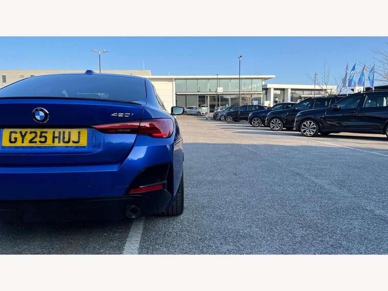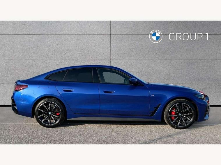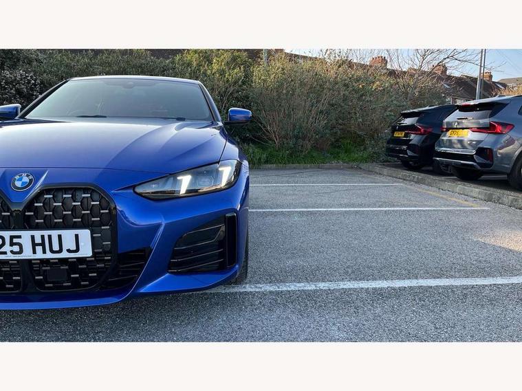 Active guard plus, Attentiveness assist, Auto start-stop, Bluetooth hands free facility with USB audio interface with audio streaming, BMW ConnectedDrive online services, BMW iDrive controller on centre console, BMW Live Cockpit Plus Nav-12.3" instrument&14.9" control Widescreen curved display/Intelligent Voice Assist/iDrive touch/Access 3rd party app/4G LTE, BMW service history, BMW Teleservices, Brake pad wear indicator in front and rear, Check Control warning system for monitoring of lights and door/luggage compartment open warning, Condition based service, Electric bootlid, Electric power steering with Servotronic steering optimised at all speed ranges, Gearshift time display in manual mode, Instrument cluster with speedometer with mph readout, tachometer, fuel gauge and oil temperature gauge, Integrated owners handbook, Language version English, Oil sensor for level and grade, warning by check control system, On board computer - average speed, fuel consumption, outside temp display with acoustic warning, clock/date, service interval, odometer/trip meter, Optimum shift indicator, Run flat indicator, Shifting point display, Variable sport steering, 8 speed automatic steptronic transmission with gearshift paddles, Balanced 50/50 weight distribution, Double joint spring strut front axle, Double VANOS, Drive performance control - ECO PRO, comfort and sport modes, High precision injection, Low centre of gravity, Petrol Particulate Filter, Stroke dependent dampers, VALVETRONIC engine management, 1x USB type A with data transfer and 1.5 Amp charging function in the centre console, 1x USB type C with 3 Amp charging function in the front centre armrest, DAB tuner, Electronic service booklet, Personal eSim, Acoustic glazing, Automatic headlight beam throw control with load dependent regulating reaction, dynamic compensation of braking dive and acceleration squat, Automatic windscreen wipers and automatic headlight, Automatically dimming electrochromatic rear view mirror, BMW emblem on engine compartment lid and tailgate, BMW radiator grille with mesh grille, end face of the nuggets in aluminium matt and frame in chrome matt, Body colour fuel filler flap, Body colour roof fin, Bonnet and tailgate badge, Brushed aluminium inserts in the front door sill finishers with BMW designation, Door sill strips, Dynamic brake lights, Electric windows - front and rear, with open/close fingertip control, anti trap facility and comfort closing function all round, Exterior mirrors - electrically folding with anti-dazzle, Fading support, Follow me home headlights, Front and rear bumper system, Front apron plastic in body colour, Green tinted heat protection glazing, High gloss shadow line exterior trim, Illuminated bow type door handles in body colour drivers side with door lock, Interior rear view electrochromatic mirror with automatic anti dazzle function, LED 3rd brake light, LED daytime running lights, LED front fog lights, LED front indicators, Licence plate panel integrated into front bumper and tailgate, Lightweight engineering, Low and high beam headlights in Bi-LED, M designation on front side panels, left and right, M rear boot spoiler, One piece front bumper cover including towing eye cover in body colour, Preparation for high beam assistant, Rear side wing doors, Rear wiper, Reversing light, Side frame trim strip black matt, Two part LED tailights in L-shape with components in smoked glass, brake light, LED turn indicator and rear fog light, Visible exhaust tailpipe finisher, Visible VIN plate, Welcome lights in interior and door handle area, Widened track and increased camber values for max transverse dynamics, agility and steering precision, Window recess finisher strip in matt black, Windscreen wipers with integrated heated washing jets, 12V power socket in front centre console, 2 front cupholder in centre console with clamping elements and matt black inlay, 3 rear headrests, 3 seat bench in 2nd row, 3 spoke flat bottom M sport leather multifunction steering wheel, 3 zone automatic air conditioning, 4 pieces lashing eyelets in luggage compartment, 40:20:40 split folding rear seat and rear centre armrest with two cupholders, Anthracite headlining, Armrest integrated in front and rear door trim + front centre console armrest, Battery in luggage compartment, BMW ID, Four grab handles integrated in roof lining, Front and rear door pockets, Front and rear reading lights, Front footwell lights, Heated driver and front passenger seats, Height adjustable front headrests, Height adjustable mechanically and infinitely variable steering column, Illuminated armrest storage compartment, Illuminated glove compartment with separate small compartment, Luggage compartment light, Luggage compartment seprating net on side trim left/right, Bag hook, 12V socket, TTH button, USB C charging in rear, Folding compartment on driver side, Make-up mirror lights, Single front passenger seat, Storage compartment in rear centre console, Sunvisors with illuminated vanity mirrors and ticket pocket, Through load system, Toolkit located in luggage compartment, Velour front floor mats, Ambient lighting pack - 4 Series, Connected professional package - 4 Series, M sport exterior styling pack - 4 Series, Park assist pack - 4 Series, 3 point seatbelts on all seats, Battery safety cut-off, BMW emergency call, Brake energy regeneration, Braking pre-tensioning, Child locks, Child seat ISOFIX attachment for the two outer rear seats, Coasting in idle in ECO PRO mode, Cornering brake control (CBC), Crash sensor activating of airbags, Unlocking doors, hazard warning lights, fuel cut off, interior lighting+activation of safety battery terminal clamp, Driver and front passenger side airbags, integrated in the door side seat backrest bolsters for all seat variants, Driver/Front Passenger airbags, Dry braking, Dynamic brake control, Dynamic stability control + (DSC+) - Anti-lock Braking System (ABS) with brake assist and cornering brake control 