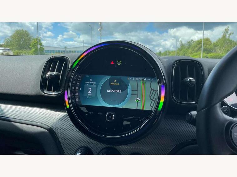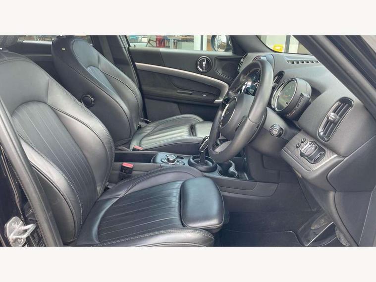 Active Guard incl speed limiting and lane departure functions with auto steering, and front collision warning with brake intervention, Automatic start/stop function with brake energy recuperation, Compatible mobile phone bluetooth with audio streaming, Cruise control with brake assist, Electro-mechanical speed dependant steering assistance, Instrument cluster, MINI Driving Modes - centre toggle switch to control driving setting (sport, mid and green), Mini E-call, On board computer, Rear parking distance control, 51 Litre fuel tank, Double Vanos system, Fully variable valve control, High precision injection, Performance Control, Sport automatic transmission with steering wheel paddles, FM tuner and DAB digital radio, 3rd brake light, Bonnet scoop, Chrome fuel filler cap, Day time driving lights, Dynamic brake lights, Electric windows, Heated rear window, Heated windscreen washer jets, LED fog lights, LED Headlights, Metal door sill strips with Cooper S imprint, MINI yours exterior badge in C-Pillar, driver and passenger side, Model logo, Model logo on Tailgate, Rain sensor with auto headlights, Rear fog lights, Rear side wing doors, Rear window wiper, Side scuttle panel with integrated indicator, Split rear doors, Sun/heat protection glass, White indicator lenses, 12V socket in centre console, 3 seat bench in 2nd row, 360L luggage compartment capacity, 4 lashing eyes in luggage compartment, 40:20:40 split folding rear seats, Anthracite headlining with grab handles and clothes hooks, Chrome interior highlights, Colour line - Carbon black, Cupholders, English handbook, Front headrests, Glove compartment, Height and length steering column adjustment, Interior lighting with 12 basic colours selectable via toggle switch in roof, Isofix rear child seat preparation, Leather gearshift lever and handbrake gaiters, LED reading lights, vanity mirror lights, front foot well light and spotlight on front seats, Manual air conditioning, MINI Yours fine walk nappa leather steering wheel with contrast stitching in silver and MINI Yours badge, MINI Yours floor mats, Multifunction steering wheel, Rear headrests, Single front passenger seat, Storage compartments in doors, Sunvisors with vanity mirrors, Excitement pack - Countryman, Navigation pack - Countryman, 2 tone horn, 3 point seatbelts on all seats, 6 Airbags - front, side, head and seat belt tensioners, Anti-lock braking system (ABS), DSC - Dynamic Stability Control, Electronic handbrake, Front and rear disc brakes, Hill start assist, Manual rear child locks, Tyre pressure monitoring system, Alarm system with tilt sensor, monitoring doors, bonnet interior and tailgate, Auto drive away locking, Deadlocking function, Electronic vehicle immobiliser, Locking wheel bolts, Start/stop toggle with keyless go, Tool kit,
