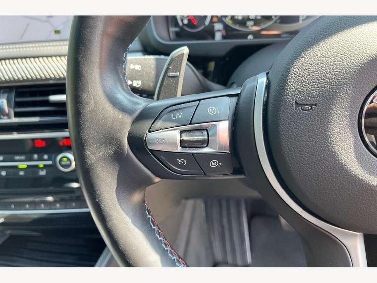20GB Hard drive, 6.5" colour display screen, BMW iDrive controller on centre console, BMW information plus, BMW online + Apps interface, BMW remote services, BMW Teleservices, Brake force display, Check control system, Cruise control with brake assist, Electric tailgate release, Enhanced bluetooth with wireless charging, Head up Display, Lights on warning, M Servotronic power steering, On board computer, Outside temperature gauge, Park distance control, Professional multimedia navigation system, Real time traffic information, Service interval indicator, Stop/start button, Voice control system, Wifi hotspot preparation, Adaptive drive, Adaptive Dynamic suspension, Adaptive M suspension, Self levelling rear air suspension, Auxiliary point for auxiliary devices, BMW professional twin tuner radio with single CD player and MP3 CD playback facility, DAB Digital radio, Adaptive LED Headlights, Auto dimming and folding door mirrors, Auto dimming rear view mirror, Auto upper tailgate release, Body colour bumpers, Body colour door handles, Body colour door mirrors, Chrome kidney grille with black vertical slats, Clear indicator lenses, Door mirror integrated indicators, Downlights in exterior door handles, Electric + heated aspheric door mirrors, Electric front/rear windows with anti-trap, Follow me home headlights, Four chrome exhaust pipes, Green tinted glass, Headlight washer jets, Heat insulated glass, Heated washer nozzles, High beam assistant, Rain sensor with auto light activation system, Rear spoiler, Two piece tailgate, 12V accessory power point in centre console, 12V socket in luggage compartment, 2 x 12V socket in rear centre console, 40:20:40 split folding rear seats, Ambient interior lighting, Anthracite Velour floor mats, Boot lashing points, Driver and passenger knee pads, Electric adjustable steering column, Front and rear cupholders, Front armrest with storage bin, Front sports seats, Front/rear courtesy lights with soft on/off dimming, Front/rear reading lights, Gearshift paddles on steering wheel, Heated front seats, Height adj rear head restraints, Illuminated glovebox with lock, Isofix child seat preparation, LED footwell lights, Luggage compartment cover, M leather multifunction steering wheel, M Sport multi-function front seats with electric lumbar support and driver+passenger memory, Reach + rake adjustable steering column, Storage bins on all doors, Sunvisors with illuminated vanity mirrors, Tilt/height adjustable front head restraints, Toolkit located in luggage compartment, Driving assistant pack - X6, Extended storage pack - X6, 3 rear 3 point seatbelts, ABS, ADB - Automatic Differential Brake, Automatic Stability Control (ASC), BMW emergency call, Child locks on rear doors, Cornering brake control (CBC), Crash Sensor - activates hazard/interior lighting + unlocks doors, Driver/Front Passenger airbags, DSC - Dynamic Stability Control, Dynamic brake control, Dynamic Traction Control - DTC, Electronic brake force distribution, Electronic parking brake, Front and rear head airbags, Front passenger airbag deactivation, Front passenger seat occupancy sensor, Front side airbags, Height adjustable front seatbelts, Hill descent control, Hill start assist, Pyrotechnically pre-tensioned front seatbelts, Tyre pressure monitor, Warning triangle and first aid kit, Locking wheel nuts, Remote central locking, Thatcham cat 1 remote alarm/immobiliser,