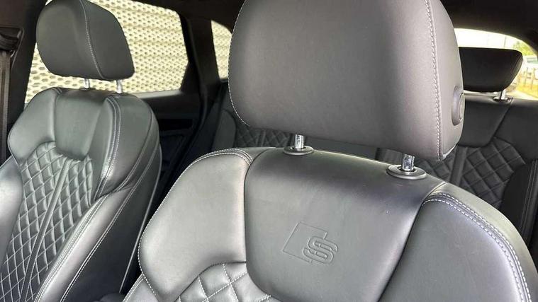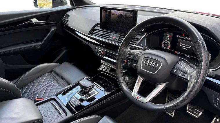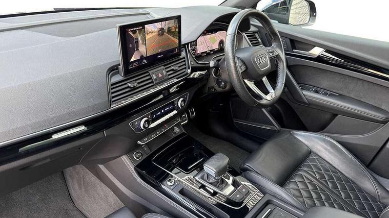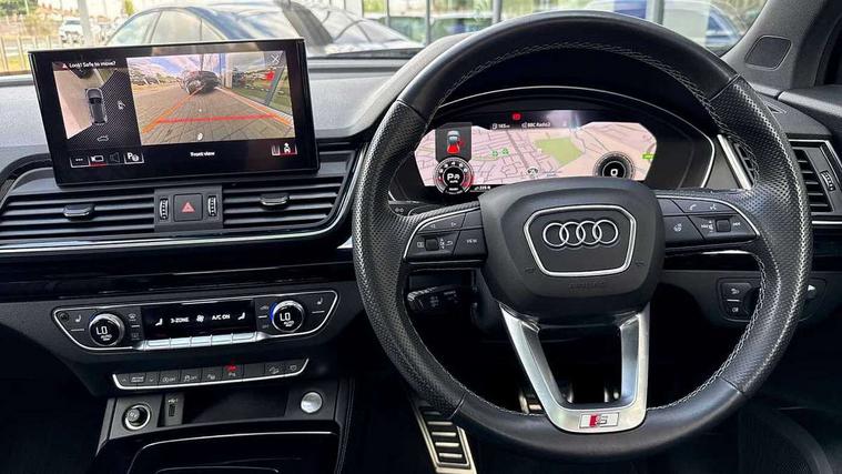 Advanced key with electric hands free boot opening system, Audi connect safety and service (e-call), Audi drive select, Audi phone box with wireless charging, Audi virtual cockpit plus with 12.3" screen and three different layout designs, Audi wireless smartphone interface, Automatic start-stop system with coasting functionality and efficiency programme, Electro - mechanical power assisted steering, Head up Display, MMI navigation plus with 10.1" touch screen, Mobile telephone preparation - bluetooth interface, Power tailgate, Service interval indicator, Voice control system with Audi hotword activation "Hey Audi", Adaptive air suspension, Quattro on demand, 2 x USB charging port with aux input socket, Bang + Olufsen sound system, DAB Digital radio, Acoustic windscreen, Audi beam with 'Vorsprung' logo, Auto dimming rear view mirror, Automatic headlight adjustment, Automatic headlights and windscreen wipers, Black roof rails, Body colour bumpers, Body colour underbody protection, Chrome plated exhaust trims, Door sills in Selenite silver, Electric adjustable/heated/folding door mirrors, Electric panoramic glass sunroof, Front air inlet surrounds in titanium black, Front and rear electric windows, Headlight washers, High gloss black B pillar trims and triangular rear door trim, Lower bumpers painted in contrast Manhattan grey, Matrix LED headlights with dynamic front and rear indicators, Rear chrome trim strip below lights, Rear privacy glass and rear side windows, Rear spoiler, Rear wiper, Roof bars, Running boards, 3 rear headrests, 3 spoke heated leather multi-function steering wheel, 4 way electric lumbar support for driver and front passenger, 40:20:40 split folding rear seat with rear centre armrest, Black cloth headlining, Contrast stitching on seats, steering wheel and gear lever gaiter, Deluxe 3 zone electronic climate control, Electric steering wheel adjustment, Electrically adjustable front seats with driver memory, Fine Nappa leather upholstery with diamond pattern contrast stitching + front sport seats with S embossed logo, Front centre armrest, Front/rear floor mats, Gear lever in black leather, Heated front and outer rear seats, Height adjustable front head restraints, Illuminated door sill trims with aluminium inlays, ISOFIX child seat mounting and top tether, Luggage compartment cover, Massage function for front seats, Rear seat bench plus, Removable luggage compartment floor, Stainless steel pedals, Sunvisors with vanity mirrors, Black styling package - Q5, City Assist pack - Q5, Extended interior upholstery pack - Q5, Extended LED Interior multi coloured Lighting Pack - Q5, Park Assistance Pack - Q5, Tour pack - Q5, 3 point seatbelts on all seats, 6 airbags - Driver, front passenger, curtain and side airbags, Electrically operated child locks on rear doors, Electromechanical parking brake, Electronic stabilisation control including ABS, ASR and EDL, Front passenger airbag deactivation, Hill descent control, Hill hold assist, Multi collision brake assist, Pop-up bonnet for pedestrian protection, Pre sense city, Seat belt force limiter, Seatbelt monitoring, Tyre pressure warning, Warning triangle and first aid kit, Anti theft alarm, Anti-theft wheel bolts, Keyless Go access/ignition system, Piano black finish inlay, Tool kit, Tyre repair kit,