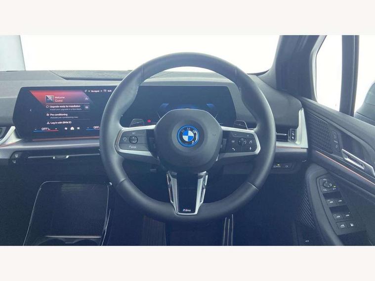 Active Guard, Attentiveness assist, Automatic powered tailgate, Automatic start/stop function, BMW Online services, BMW Operating system 9 with BMW Maps, real-time traffic information, in-car experiences, remote services and smartphone integration, BMW Teleservices, Brake pad wear indicator in front and rear, Condition based service, ConnectedDrive Services, Drive off assistant, Flat air vents on instrument panel in high gloss black, adjustable slats with elements in pearl chrome, iDrive controller, Instrument cluster with speedometer with miles per hour read out, tachometer and fuel gauge, Language version English, On board computer - average speed+fuel consumption, service interval, clock/date, odometer/trip meter, outside temperature display and ice warning, Parking assistant with active park distance control, reversing assistant, lateral parking aid and rear view camera, Servotronic variable electric power steering (EPS), Widescreen display, Wireless charging, Drive performance control with ECO PRO comfort + sport mode, eDrive exterior sound, Gear selector switch with toggle operation, M Adaptive suspension, Mode 3 charging cable, Performance Control, Petrol Particulate Filter, Steptronic transmission with double clutch and gear shift paddles, 2x USB Type C ports in front centre console for charging and data transfer, 2x USB Type C ports in rear centre console for charging, DAB Digital radio, Personal eSim, Welcome sound upon opening of the front driver or passenger door, Air inlet middle part on front apron in lines specific design with trim strip in satinised aluminium, Automatic headlights, Black rear bumper trim strip, BMW emblem, engine compartment lid and tailgate, Body colour roof mouldings, Body coloured door mirror caps, Contoured rear roof spoiler in vehicle colour with side aeroblades in black high-gloss, Driver side exterior mirror lighting with BMW logo projection, Dynamic brake lights, Electric adjustable heated door mirrors, Electric windows - front and rear, with open/close fingertip control, anti-trap facility and comfort closing, Folding door handles integrated flush with surface, Front and rear windscreen wipers with heated front washer nozzles, Front bumper cover with independent design in body colour with inserts in black high gloss, Front bumper design elements in satinised aluminium, Front door exit lights, Front door sill finishers aluminium inserts with M inscription, Front entry sills with aluminium inserts + BMW inscription, Front oramental grille with radiator grille bars in satinised aluminium, Heated rear window, Hidden exhaust pipe, High gloss shadow line, Home light, Key with M identification, LED Daytime running lights and parking lights with turn indicators, LED number plate light, LED third brake light in rear spoiler, M identification on sides, Manual headlight range control, Model inscription on right tailgate, Rain sensor, Rear bumper cover with independent design in body colour with inserts in black high gloss, Rear side wing doors, Shark fin antenna, Side sill covers with independent design in Body colour, Trailer stabilisation logic, Trims on front and rear bumper covers colour-coordinated with side window graphic, Visible VIN plate, Welcome lighting, Windscreen washer nozzle for rear view camera, 12V power socket in luggage compartment and front centre console, 12V socket in right side trim panel, 2 bag hooks in luggage compartment, 2 front reading lights, 2 open cup holders in front centre console, 2 x USB Type C ports for charging in front centre console + 2 x USB Type C ports for charging in rear centre console, 3 seat bench in 2nd row, 40:20:40 split folding rear seats with backrest, Ambient lighting front and rear, Automatic two zone climate control air conditioning, Bottle trays in all doors, Child seat ISOFIX attachment for two outer rear seats and front passenger seat with anchorage points, Driver and front passenger sports seats, Embellishers on steering wheel spokes in pearl chrome, Four grab handles integrated in roof lining, Front and rear door pockets, Front and rear footwell lighting, Front and rear side armrest integrated into door trim, Front centre console storage compartment, Front head restraints, Glovebox with light, Heated front seats, Height adjustable 3 rear head restraints, Illuminated wireless charging tray, Interior door handle recess light on all doors, Luggage compartment lighting, M Anthracite headlining, M specific floor mats, M sport leather steering wheel, Manual adjustment of seat height, fore/aft position, seat depth, backrest tilt and head restraint height, Map pockets, Mechanical rear seats with fore/aft adjustment, Middle centre console storage compartment, Multi-function controls for steering wheel, One piece parcel shelf opens together with tailgate and removable, Rear cloth hooks, Single front passenger seat, Stainless steel pedals, Steering wheel column manual adjustment, Storage compartment lighting in centre console and storage tray in centre stack, Storage compartment net in left side trim panel, Storage compartment with folding cover under centre console armrest cushion, Sunvisors with illuminated vanity mirrors, 3 point seatbelts on all seats, front pyrotechnic belt tensioners, stopper and belt force limiters, rear coded belt buckles, Acoustic protection for pedestrians, Airbag - Front driver and passenger, front and rear head, front side, curtain head protection, manual deactivation of front passenger airbag possible, Anti lock braking system (ABS) with brake assist, Automatic hold function, BMW emergency call, Brake drying, Braking readiness, Child proof locking system in rear door, Cornering brake control, Crash Sensor - activates hazard/interior lighting + unlocks doors, DSC - Dynamic Stability Control, Dynamic brake control, Dynamic Traction Control - DTC, Electromechanical parking brake, Energy recovery system, Front disc brakes, Integrated braking system, PC iBrake PostCrash approach contro