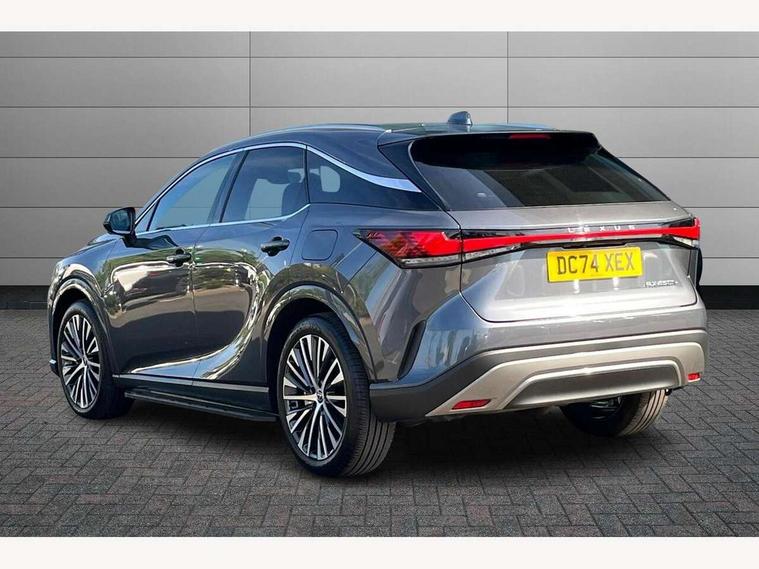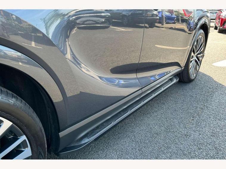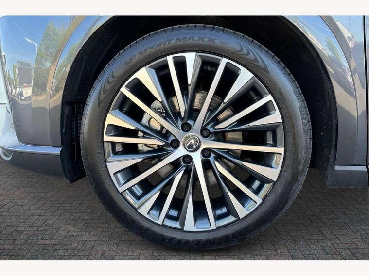 360 degree panoramic view monitor, Bluetooth mobile phone connectivity, BSM - Blind spot monitoring, Drive mode selector, Driver monitoring system, E-call, Head up Display, Intelligent clearance sonar, Lexus link connected services including over the air updates, MM21 Lexus link pro - 14" HD touchscreen with embedded and cloud based navigation, voice assistant, connected services, over the air and always online, Push button starter, Rear cross traffic alert, Speed sensitive electric power assisted steering, Ultrasonic parking sensors, Wireless Apple CarPlay and wired Android Auto, Wireless Smartphone charger, 3 pin to Type 2 10A charging cable, 6.6 kW onboard charger, E-Four Automatic transmission, Type 2 AC charging, Type 2 mode 3 32A charging cable, Vehicle Stability Control (VSC), 12 speakers audio, 5 USB ports (3 front USB C and 2 rear USB C), DAB Digital radio, 3 projector bi-beam LED headlight with auto high beam, Auto dimming rear view mirror, Auto headlights, Front and rear one touch power windows with voice command, Front and rear silver window frame mouldings, Glove and towel set, Headlight washers, Heated, auto-folding door mirrors, auto dimming with rerverse tilt, turn indicators and panoramic view sensors, L-shaped rear light bar, LED brake lights and rear lights with emergency brake signal, LED cornering headlights, LED daytime running lights, LED front and rear fog lights, LED Indicators, Power back door with kick sensor, Privacy UV glass, rear doors and tailgate, Rain sensor windscreen wipers, Rear side wing doors, Rear wash/wipe, Roof rails, Variable front intermittent wipers, 12V accessory port centre console and luggage compartment, 2 cup holders in centre console, 2 way electric lumbar support for driver and front passenger, 2 x Sunvisors with vanity mirror and lamp, 3 rear headrests, 3 seat bench in 2nd row, 40:20:40 split folding rear seats, 64 colour LED ambient interior illumination with 14 pre-set themed colour tones, 8 way electrically adjustable front seats, Charge cable bag, Driver seat memory function, Easy access driver seat, Easy access steering wheel, Front aluminium scuff plates, Front headrests, Front tray in front of centre console, Glovebox, Heated and ventilated front seats, Heated steering wheel, Leather steering wheel, Lever type shft control, Manually adjustable rear seats, Power adjustable steering wheel, Rear resin scuff plates, Single front passenger seat, Smooth leather upholstery, Textile carpet mats, Three zone climate control air conditioning system, Two way opening centre armrest with storage, 2 x Isofix child rear seat restraints, 3 point ELR front and rear seatbelts with pretensioners, ABS, Curtain shield airbags (front and rear), Driver and front passenger 2 stage airbag, Driver/front passenger side airbags, Drivers knee airbag, E-Latch with safe exit assist, EBD + Brake Assist, Electronic parking brake, Electronically controlled braking, Extended lexus safety system+ 3 - lane change assist, front cross traffic assist, Front and rear left/right force limiters and tension reducers, Front and rear left/right seatbelt reminders, Front centre airbag, Hill assist control, Lexus safety system+ 3 - dynamic radar cruise control, pre collision system day and night, lane tracing assist, road sign, Manual child lock in rear doors, Passenger airbag cut-off device, Traction control, Tyre pressure warning, 2 x remote key fobs, Customisable auto door lock, Locking wheel nuts, Motion sensor key, Smart keyless entry, Thatcham category 1 alarm + immobiliser, VIN etching, Black Inlay, 21" Alloy wheels,